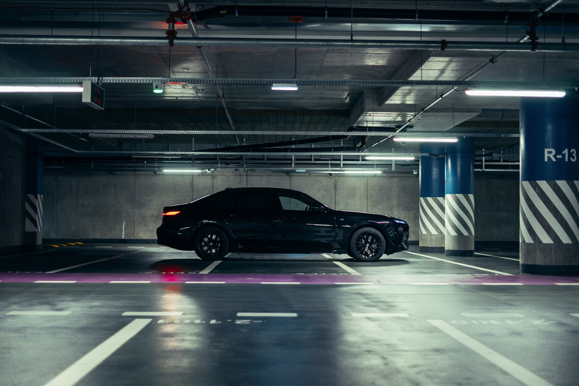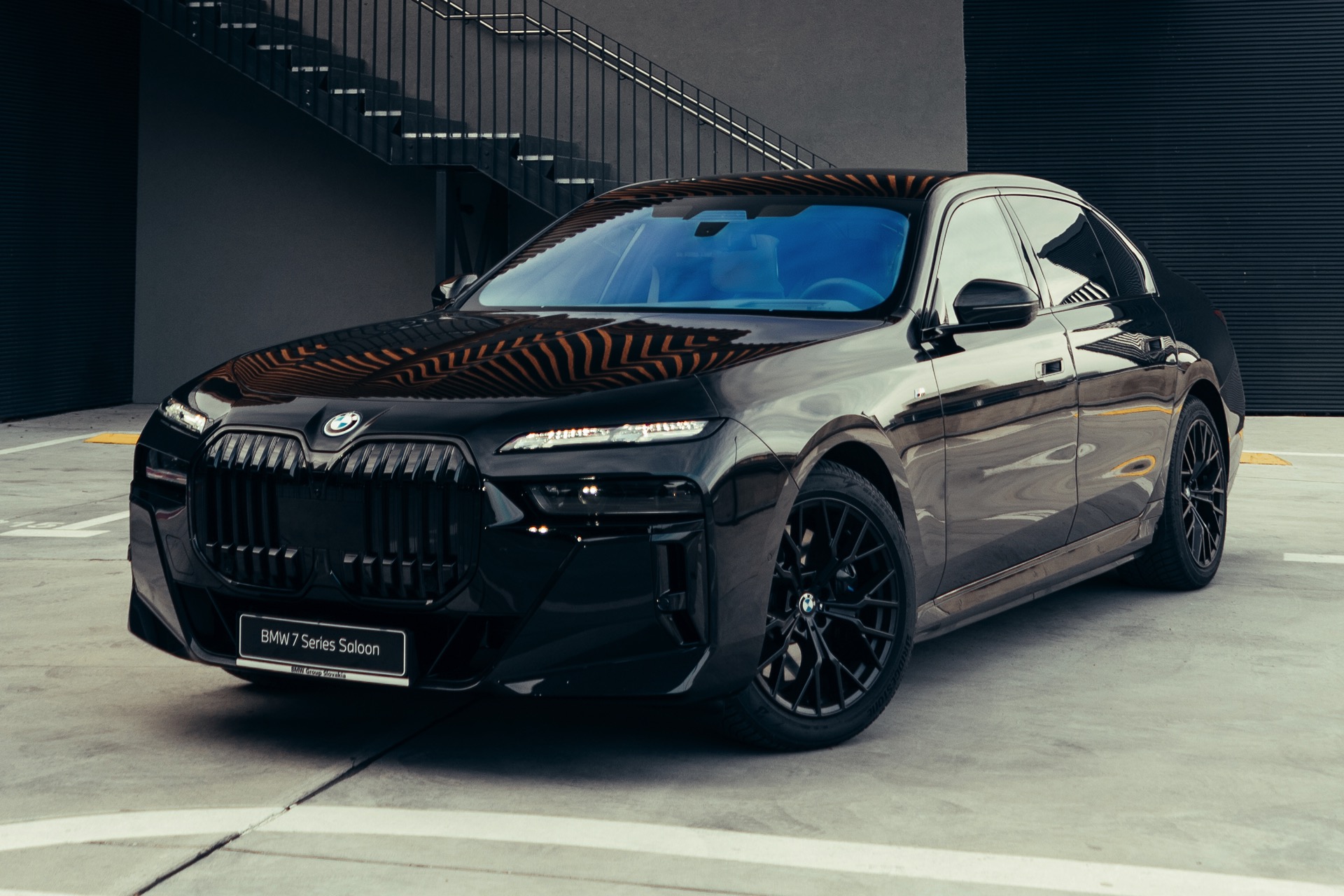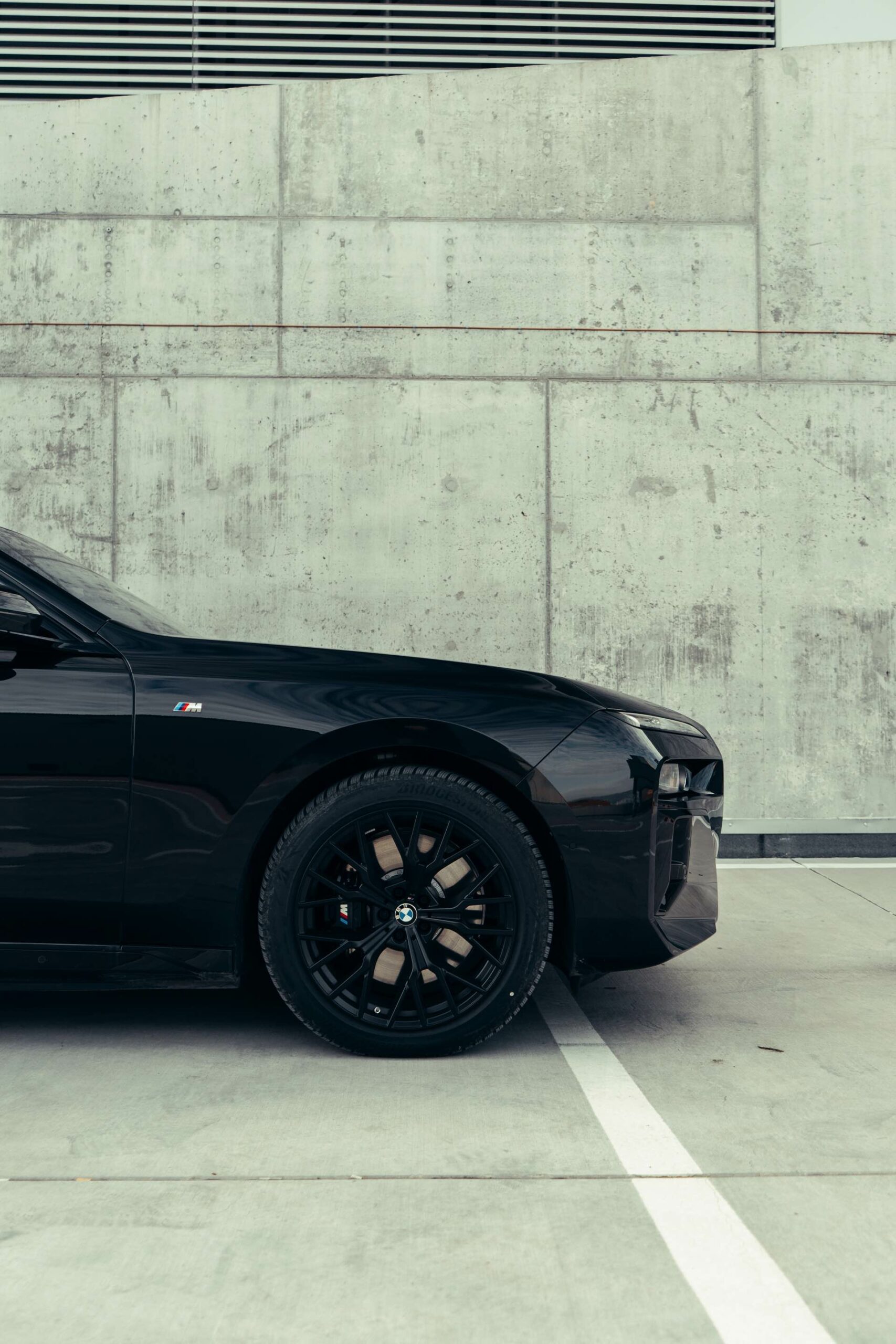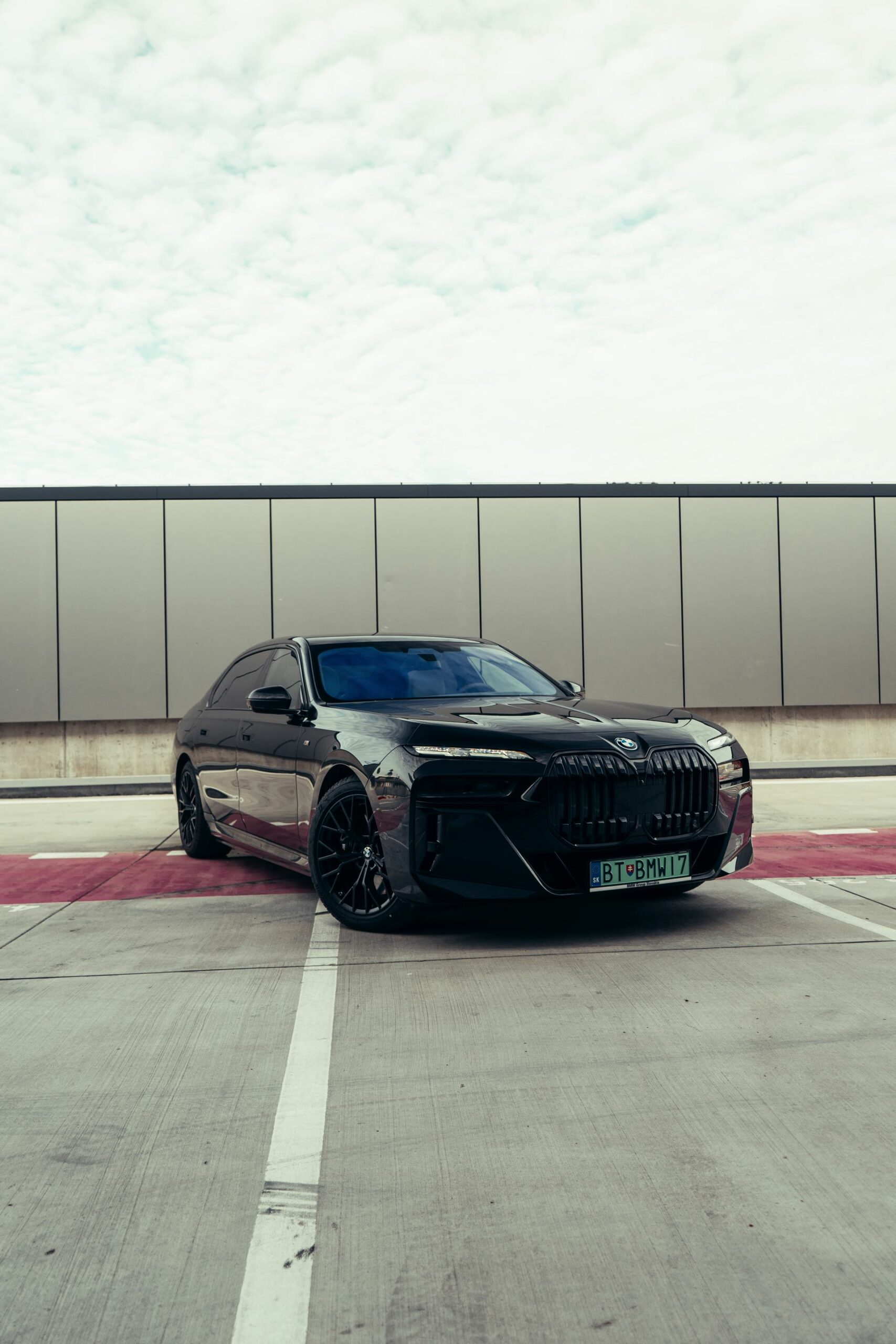 Mit der dunkelsten denkbaren Konfiguration glänzt der neue BMW i7 (G70) auf einer aktuellen Foto-Serie aus Bratislava: Der Elektro-7er trägt nicht nur eine Lackierung in Saphirschwarz Metallic, er verfügt auch über das M Sport Pro-Paket samt Shadow Line mit erweiterten Umfängen, weshalb die mächtige Niere und einige andere Exterieur-Details in Hochglanz-Schwarz ausgeführt sind. Ebenfalls bestellt wurden komplett schwarze Felgen und die ab der B-Säule abgedunkelten Scheiben der Sonnenschutzverglasung, sodass der gezeigte i7 direkt einem Hollywood-Film entstammen könnte.