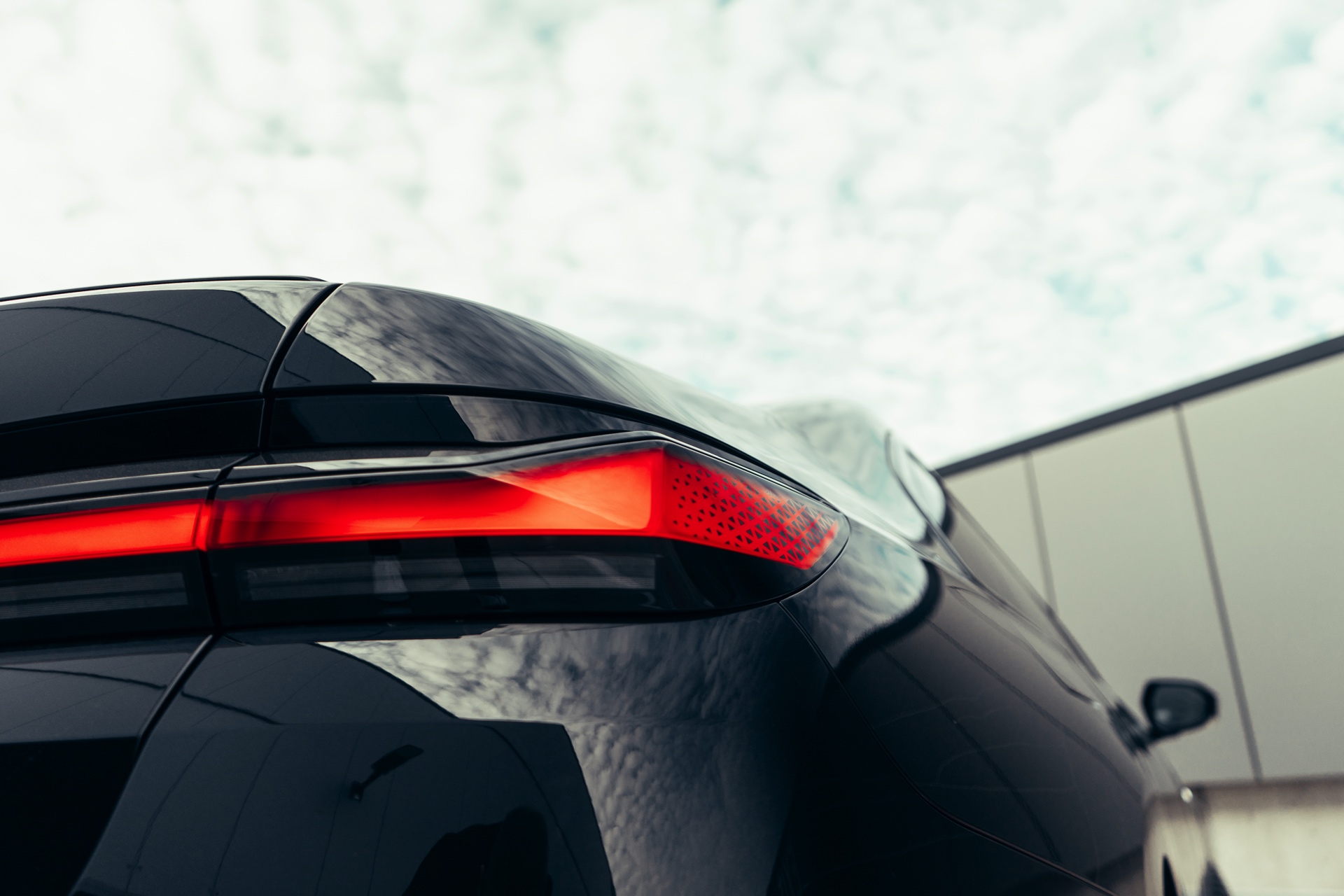 Besonders markant zur Geltung kommt dank der dunklen Konfiguration auch die Lichttechnik der neuen 7er-Reihe: An der Front sehen wir auf den meisten Fotos nur das vom oberen Teil der Split-Headlights realisierte Tagfahrlicht, während die darunter platzierten Hauptscheinwerfer mit anderen dunklen Flächen verschmelzen und so beinahe unsichtbar in den Hintergrund rücken. Am Heck rückt das schmale rote Leuchtband der Heckleuchten in den Mittelpunkt, das neben den aufrecht stehenden Reflektoren der M-Heckschürze für die einzigen farbigen Akzente verantwortlich ist und die Breite der Luxuslimousine zusätzlich betont: "