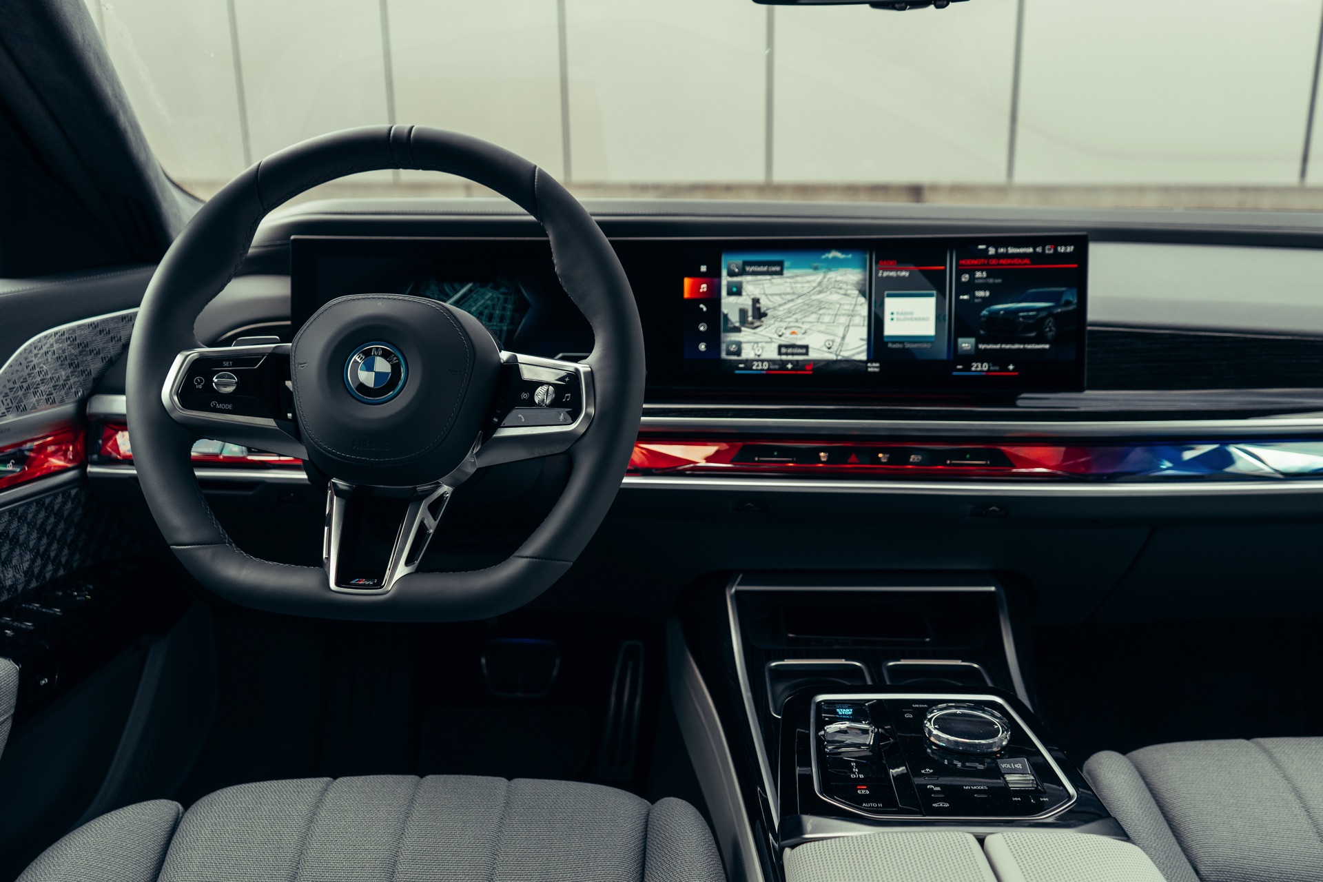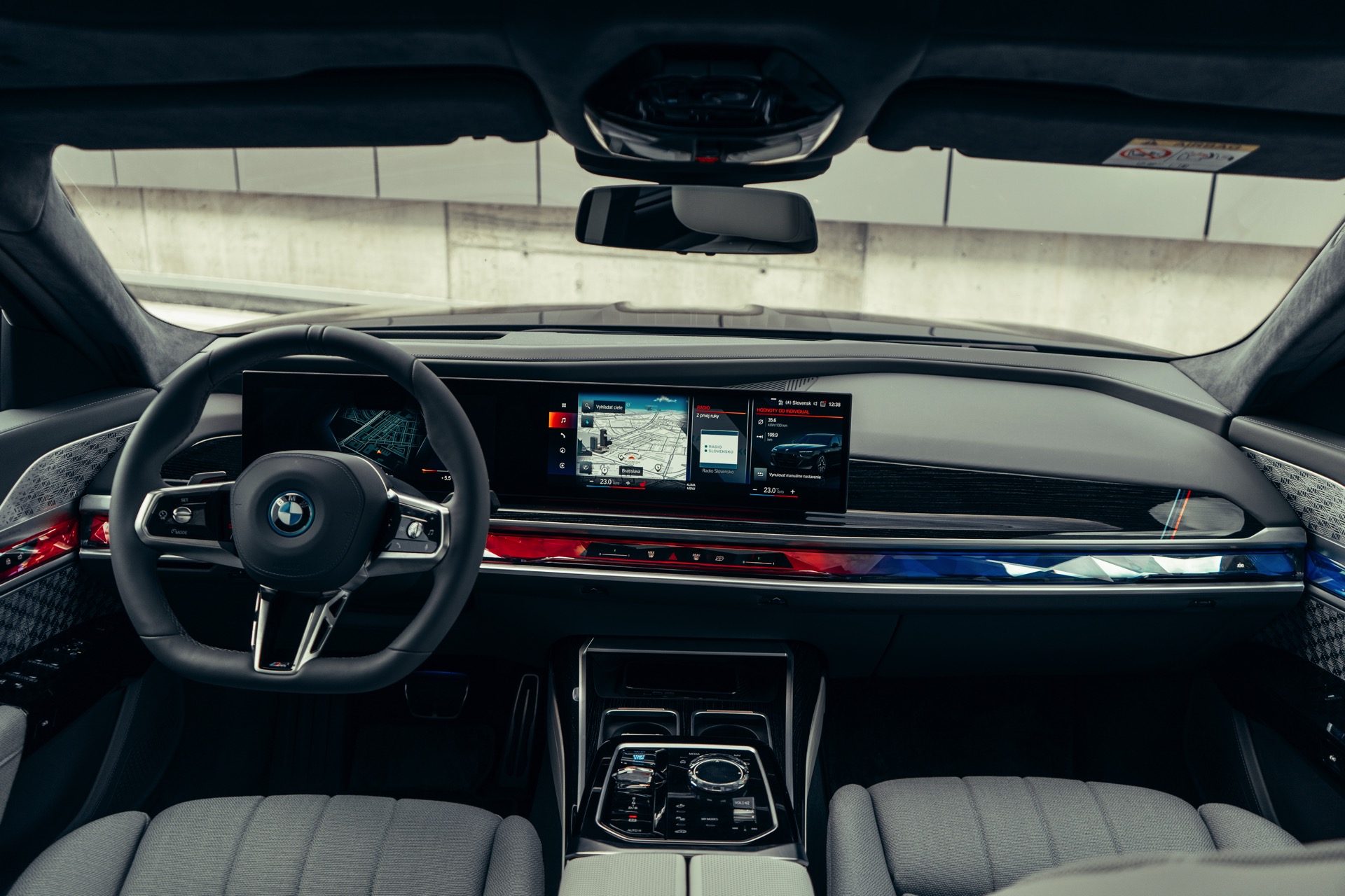 Im Fond sehen wir ein weiteres Mal den imposanten Theatre Screen und die in die Türen integrierten Touchscreen-Displays, die den Passagieren die Steuerung des 31-Zoll-Touchscreens erleichtern. Wie überzeugend sich der neue BMW i7 fährt, beschreiben wir in unserem ausführlichen Fahrbericht.
