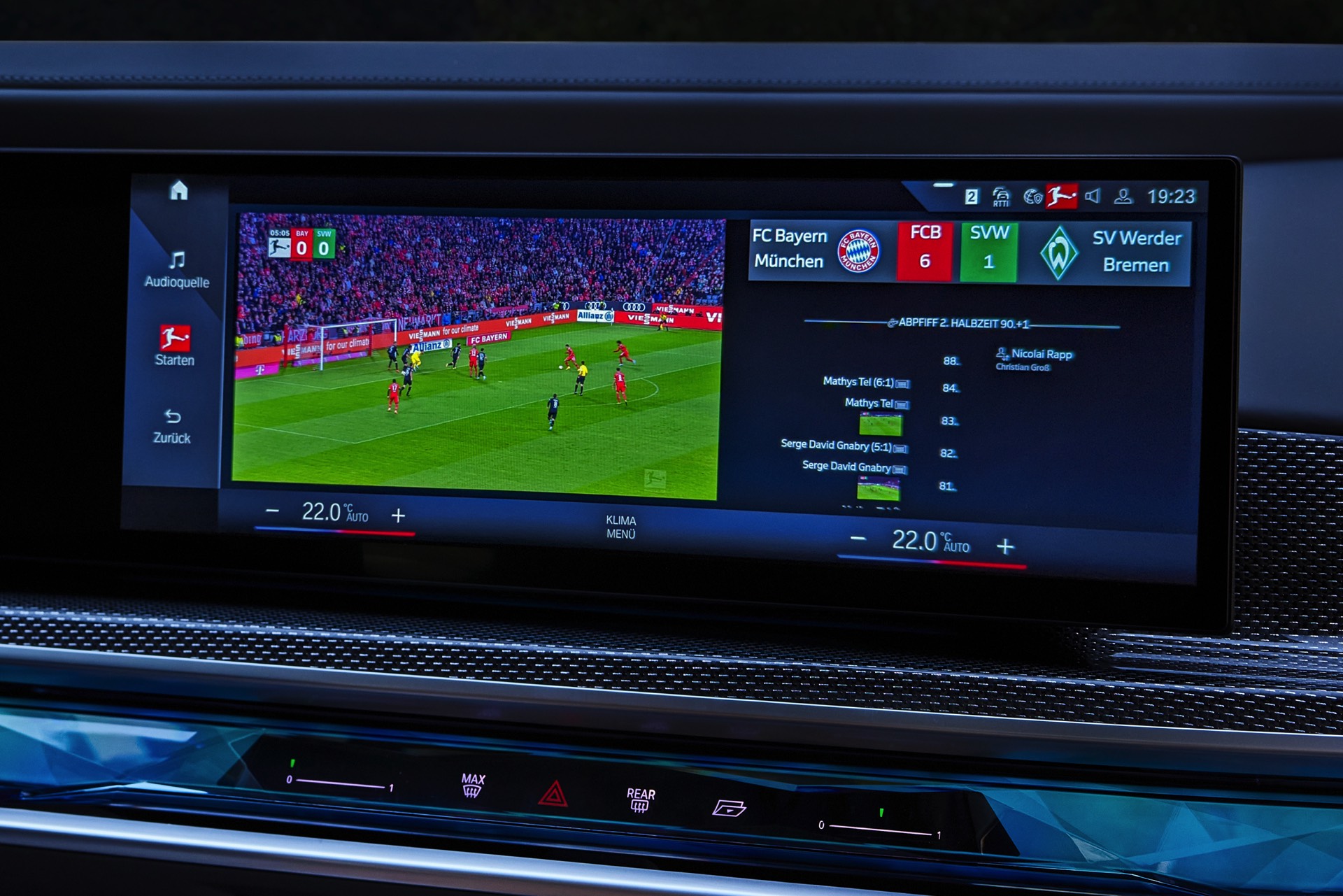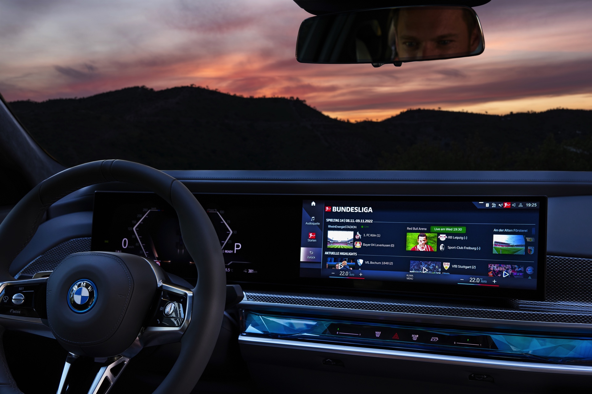 Bundesliga-Fans haben ab sofort jedes Wochenende einen Grund mehr, gerne am Steuer eines neuen BMW 7er (G70) sitzen zu wollen: Schon ab dem 16. Spieltag, der am kommenden Wochenende vom 20. bis 22. Januar 2023 ausgetragen wird, landet die 1. Fußball Bundesliga auf dem großen Curved Display des iDrive-Systems. Alle bereits ausgelieferten 7er und i7 erhalten hierfür per Over-the-Air-Update eine Bundesliga In-Car-App, mit deren Hilfe sowohl ausgewählte Inhalte wie Highlight-Clips als auch Live-Übertragungen kompletter Spiele möglich sind.