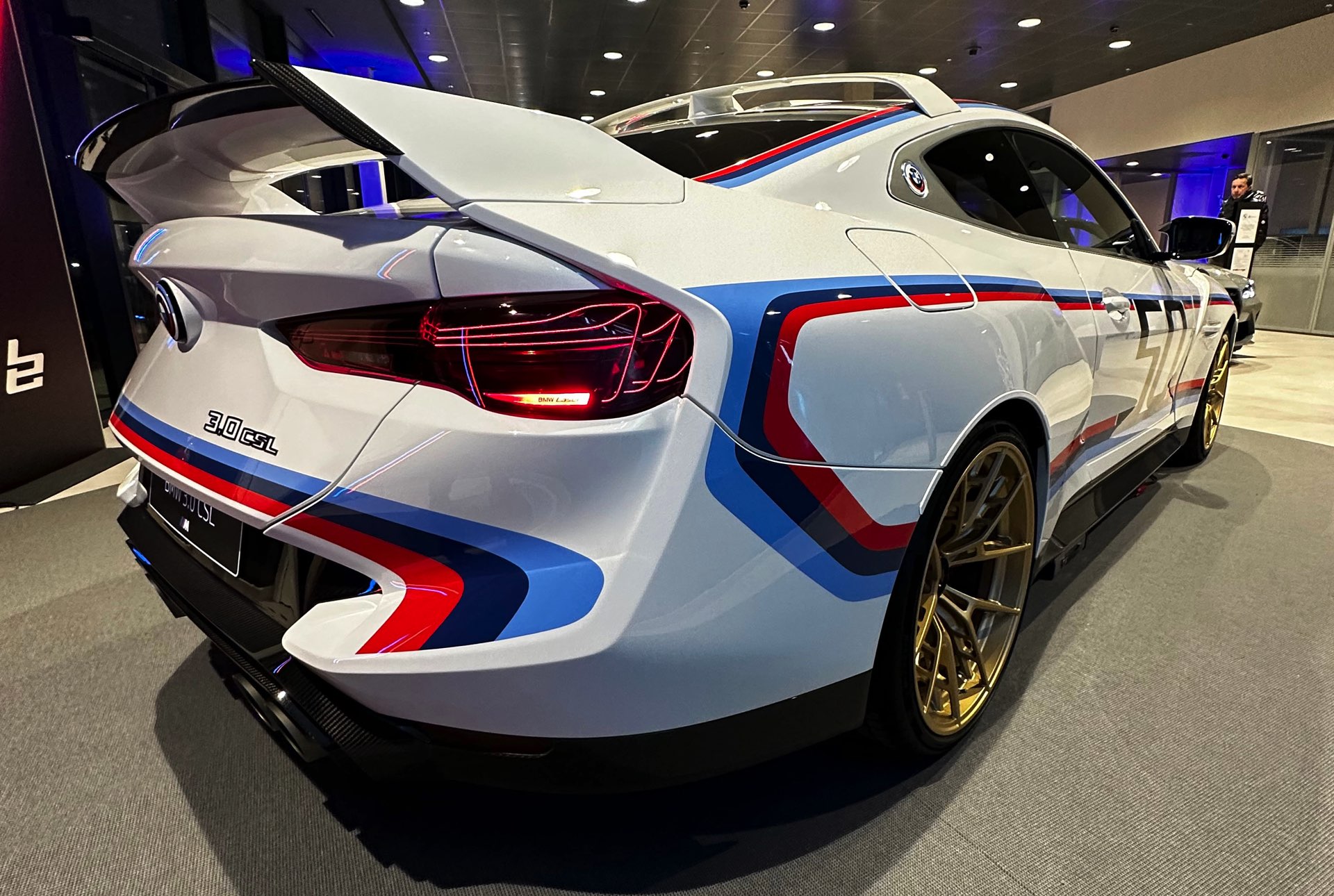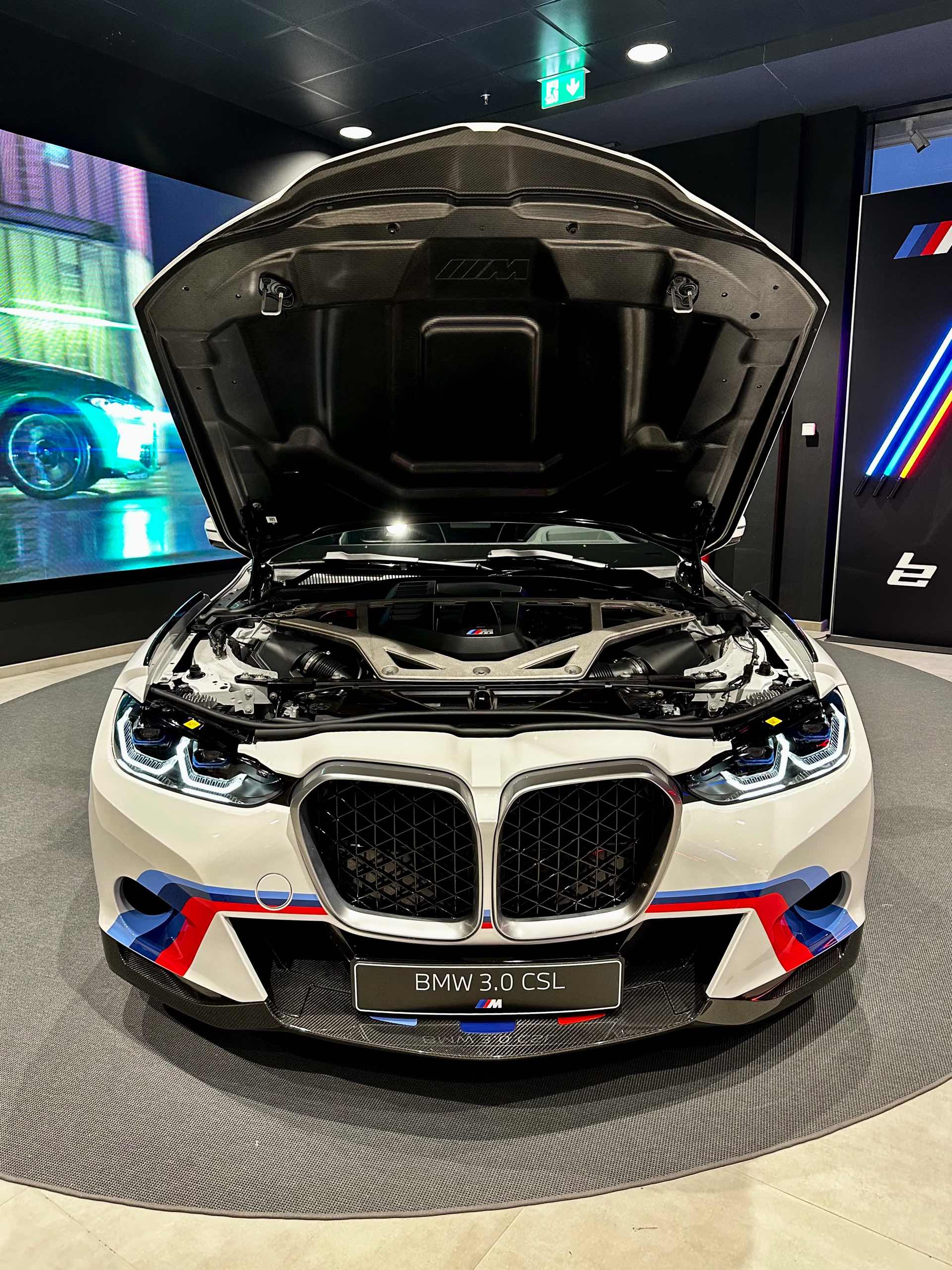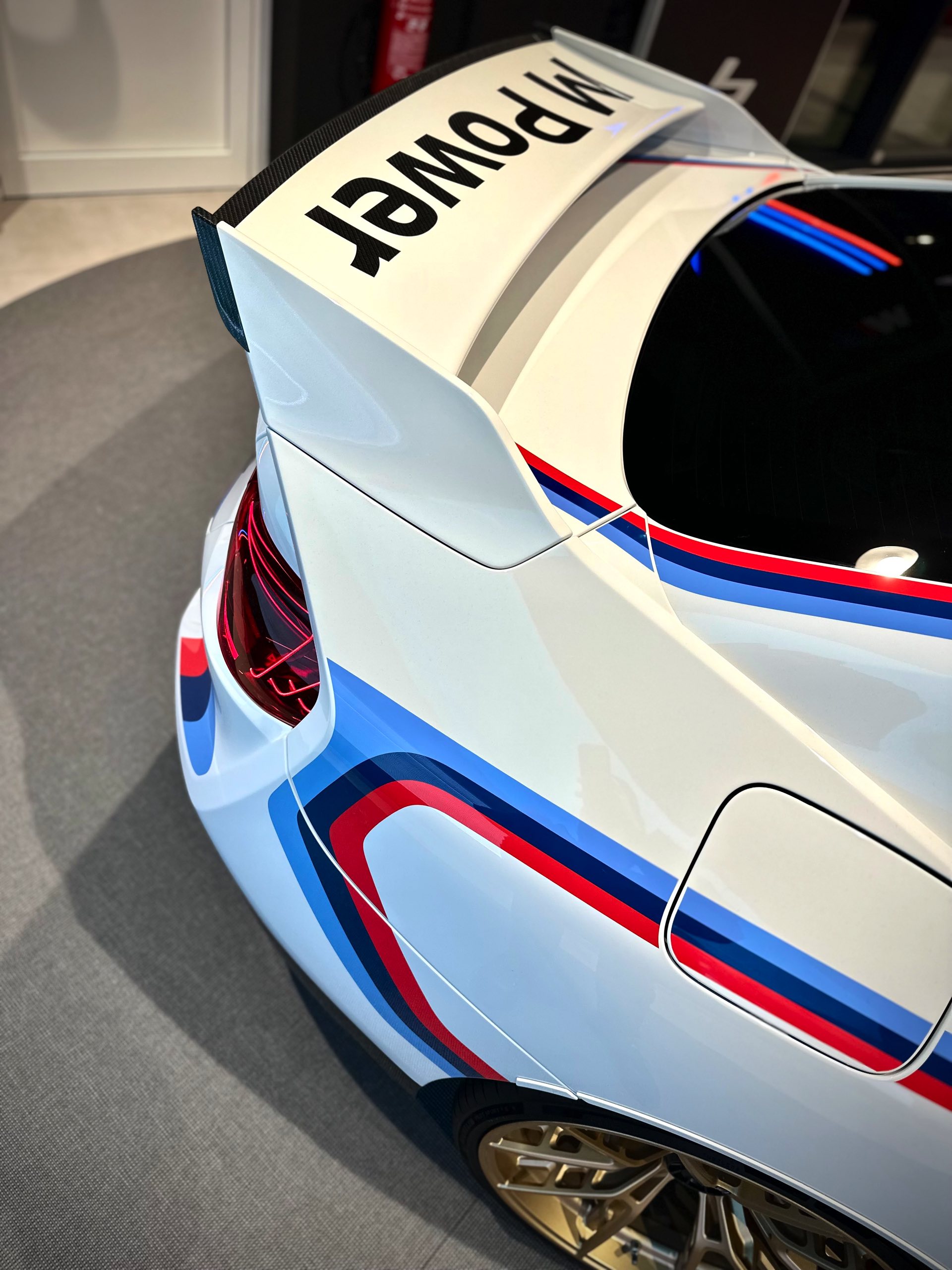 Der hochexklusive BMW 3.0 CSL war nach einem kurzen Auftritt in der BMW Welt München nun auch bei einem Händler für das Luxemburg Autofestival 2023 zu sehen, wo ihn unser Leser Luxembourg Cars lover entdeckt und gleich detailliert abgelichtet hat. Seine Fotos zeigen Exterieur und Interieur des BMW 3.0 CSL aus nächster Nähe und liefern uns so neue Eindrücke von der aufwändigen Lackierung, vor allem aber auch von der eigenständigen Karosserie die sich aus jeder Perspektive klar vom regulären M4 Coupé (G82) unterscheidet: Egal ob Scheinwerfer, Niere, Motorhaube oder Kotflügel und Heckleuchten, anders als bei praktisch jedem anderen Sondermodell wurden den Designern rund um Domagoj Dukec offenbar so gut wie keine Grenzen für die maximale Individualisierung des Fahrzeugs gesetzt.