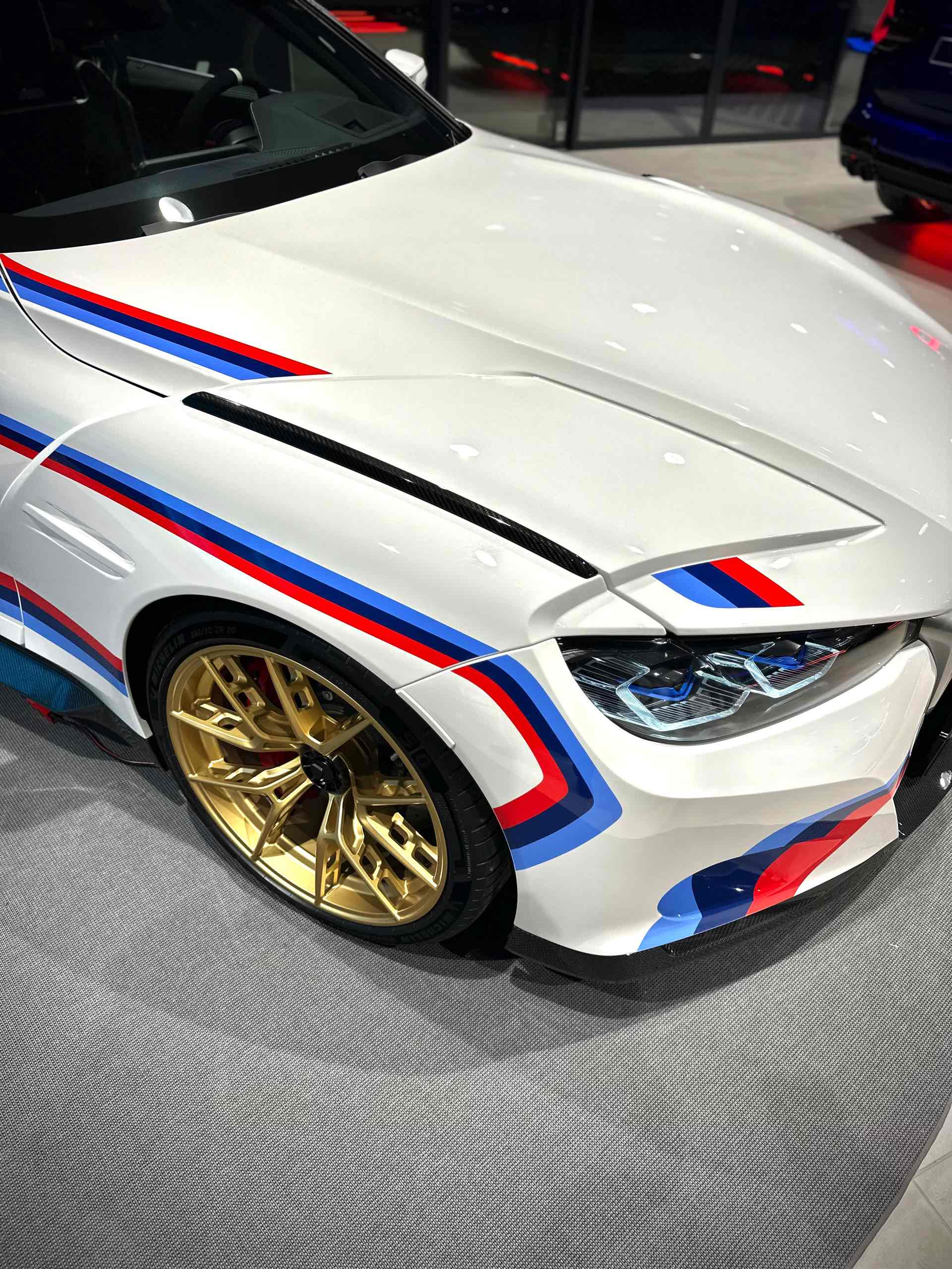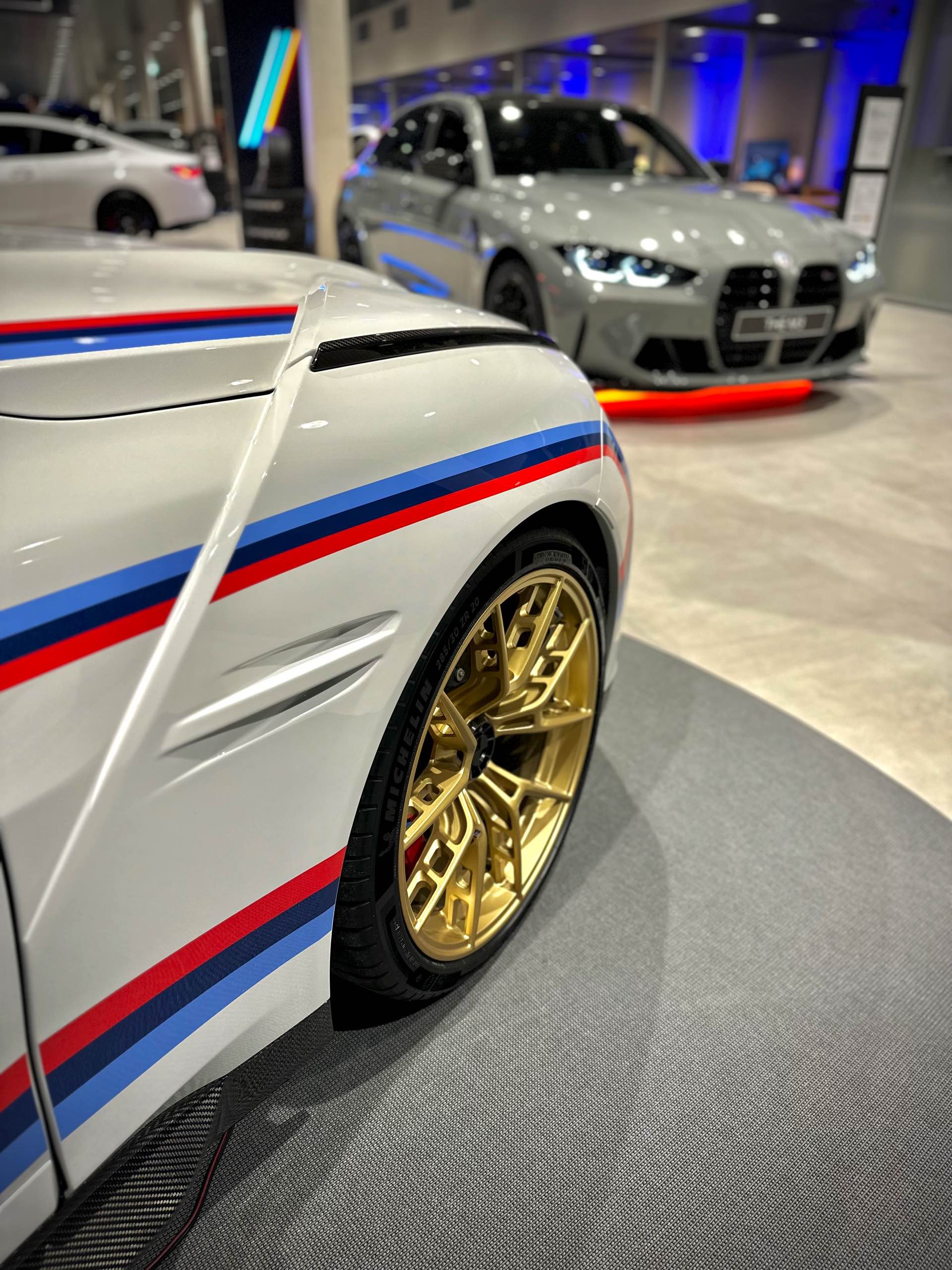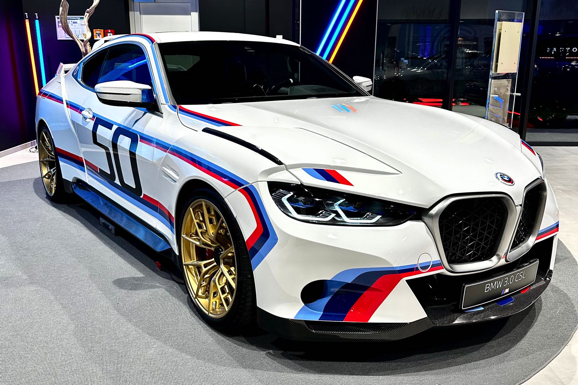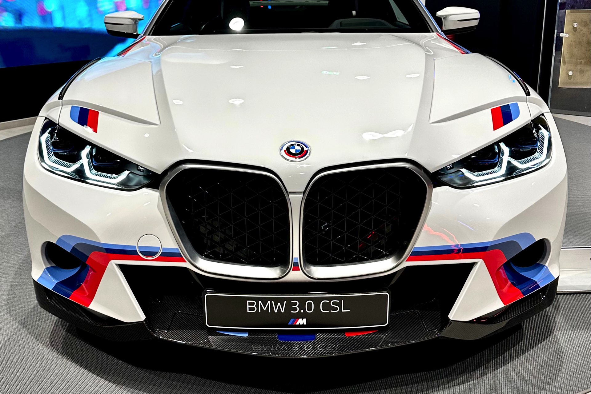 Der hochexklusive BMW 3.0 CSL war nach einem kurzen Auftritt in der BMW Welt München nun auch bei einem Händler für das Luxemburg Autofestival 2023 zu sehen, wo ihn unser Leser Luxembourg Cars lover entdeckt und gleich detailliert abgelichtet hat. Seine Fotos zeigen Exterieur und Interieur des BMW 3.0 CSL aus nächster Nähe und liefern uns so neue Eindrücke von der aufwändigen Lackierung, vor allem aber auch von der eigenständigen Karosserie die sich aus jeder Perspektive klar vom regulären M4 Coupé (G82) unterscheidet: Egal ob Scheinwerfer, Niere, Motorhaube oder Kotflügel und Heckleuchten, anders als bei praktisch jedem anderen Sondermodell wurden den Designern rund um Domagoj Dukec offenbar so gut wie keine Grenzen für die maximale Individualisierung des Fahrzeugs gesetzt.
