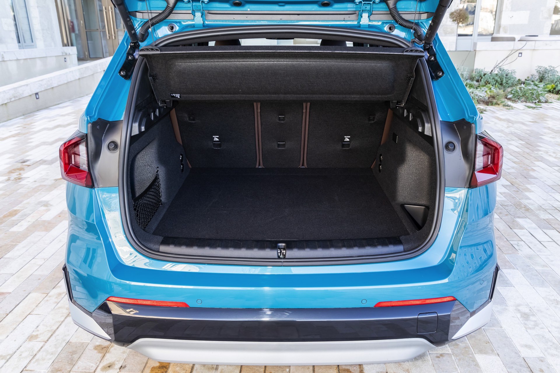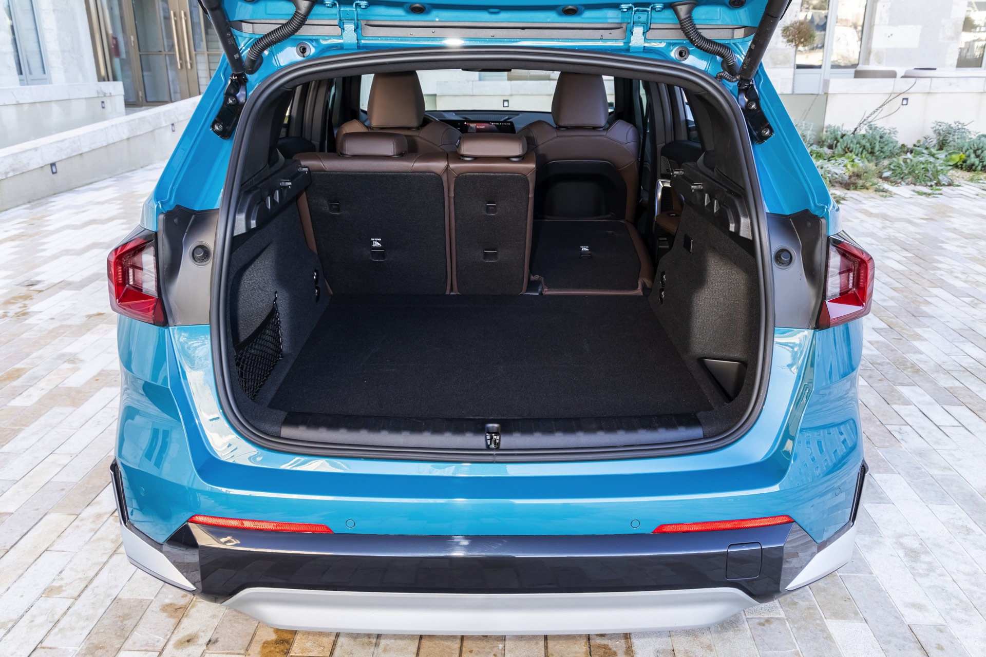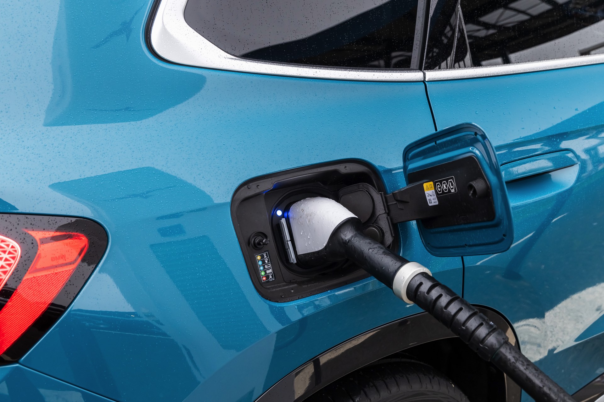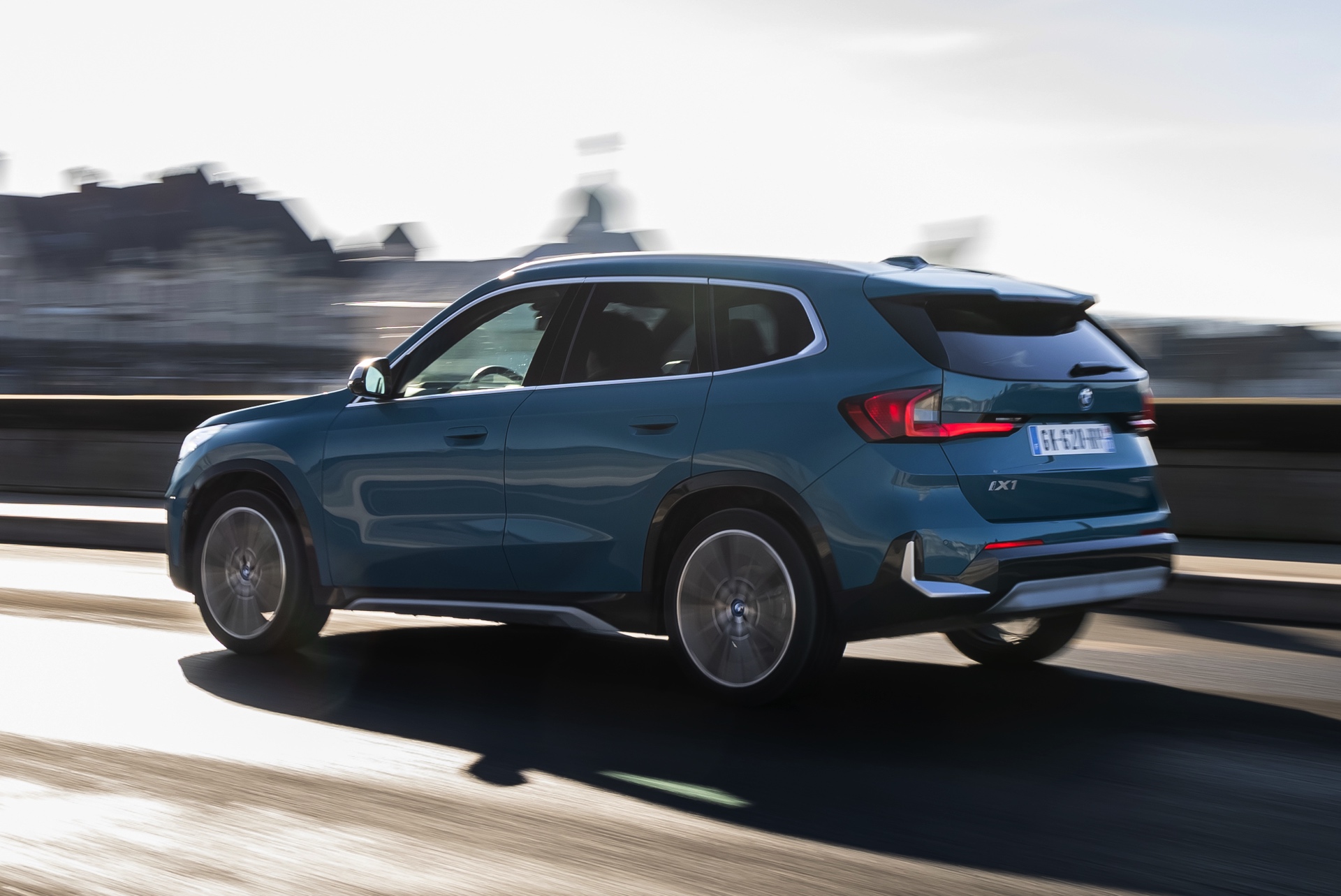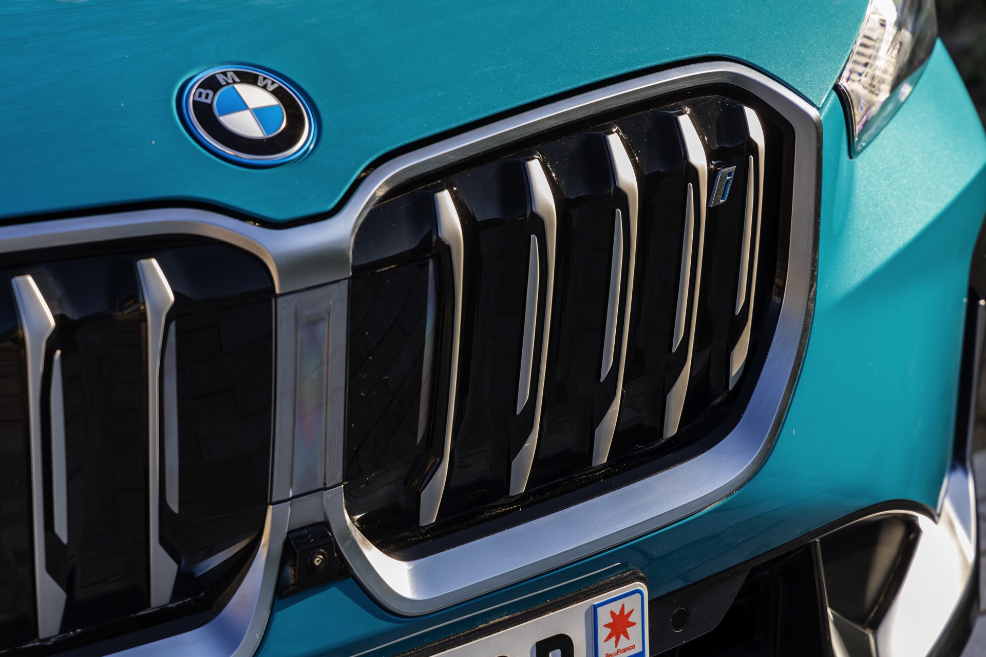 In Verbindung mit der neuen Lackierung in Blue Bay Lagoon ergibt sich ein ausgesprochen stimmiger Auftritt, der die Vielfalt der möglichen iX1-Konfigurationen unterstreicht. In den Radhäusern sehen wir die Leichtmetallräder Vielspeiche 869i, die im 20-Zoll-Format die größten ab Werk erhältlichen Felgen für X1 und iX1 sind. Wie bei anderen aktuellen BMW-Modellen ist auch der gezeigte iX1 optisch kaum von den X1-Varianten mit Verbrennungsmotor zu unterscheiden, da letztere ebenfalls auf sichtbare Endrohre verzichten. Der Look des iX1 lässt sich daher 1 zu 1 auf einen X1 mit konventionellem Antrieb übertragen.