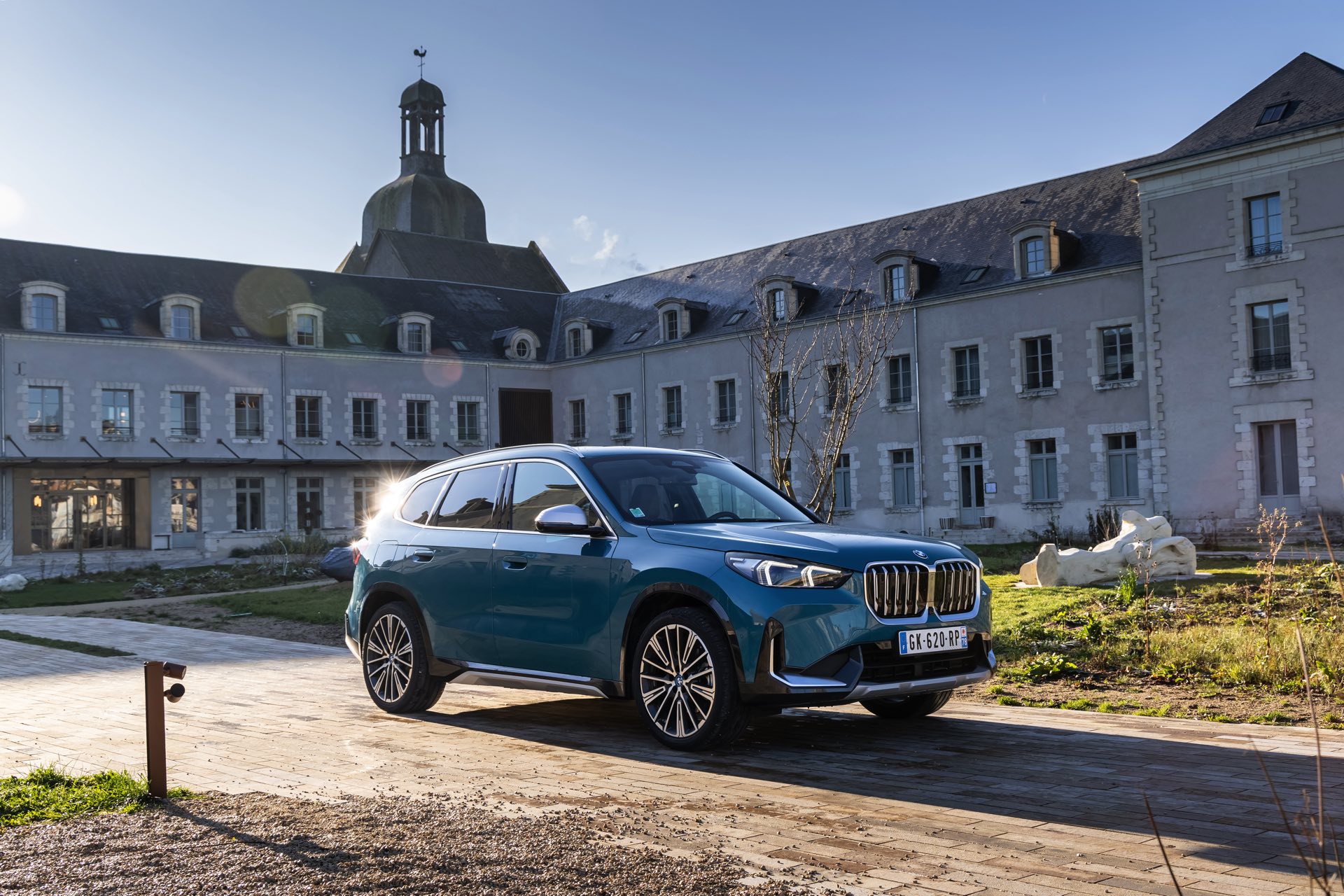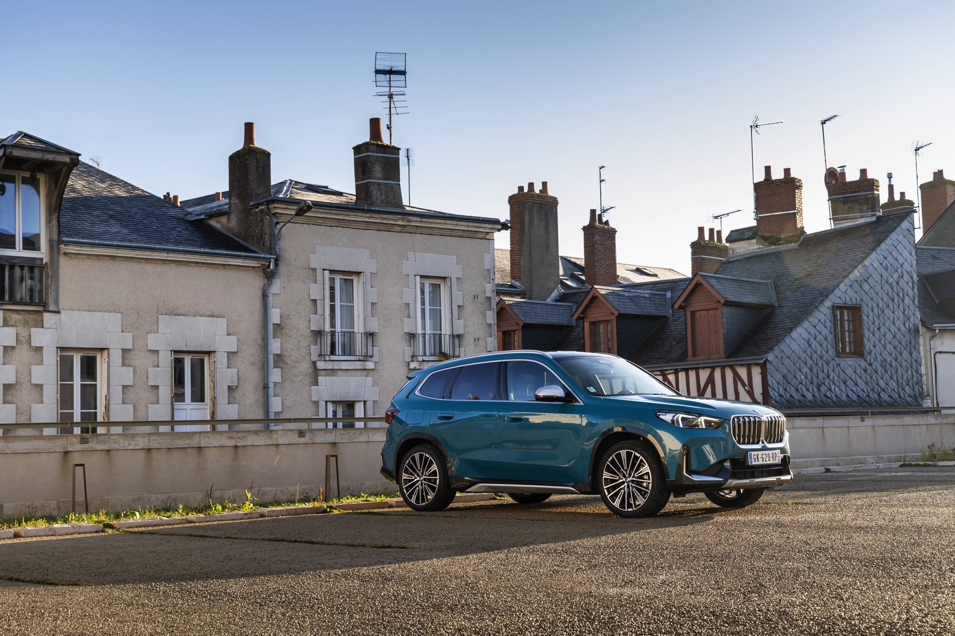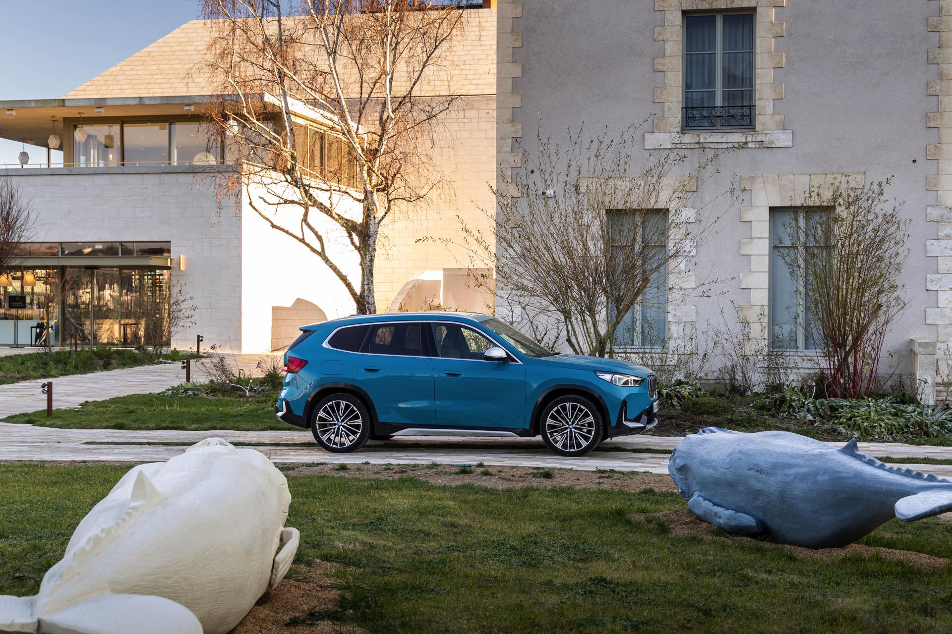 Blue Bay Lagoon zählt zu den jüngsten Ergänzungen der BMW-Farbenpalette und ist derzeit exklusiv für den BMW X1 (U11) und seinen rein elektrischen Ableger iX1 erhältlich. Aussagekräftige Fotos zur Wirkung der neuen Farbe waren bisher Mangelware, aber nun liefert BMW Frankreich eine ausführliche Foto-Serie zum BMW iX1 xDrive30 mit Lackierung in Blue Bay Lagoon. Der gezeigte Elektro-X1 trägt außerdem die optionale xLine, die den SUV-Charakter mit einem angedeuteten Unterfahrschutz an Front und Heck zusätzlich betont. Die Zierelemente sind genau wie die Nieren-Einfassung in Perlglanz Chrom gehalten, während die Nieren-Streben und die Dachreling in satiniertem Aluminium und die Außenspiegel-Kappen in Glacier Silber glänzen.