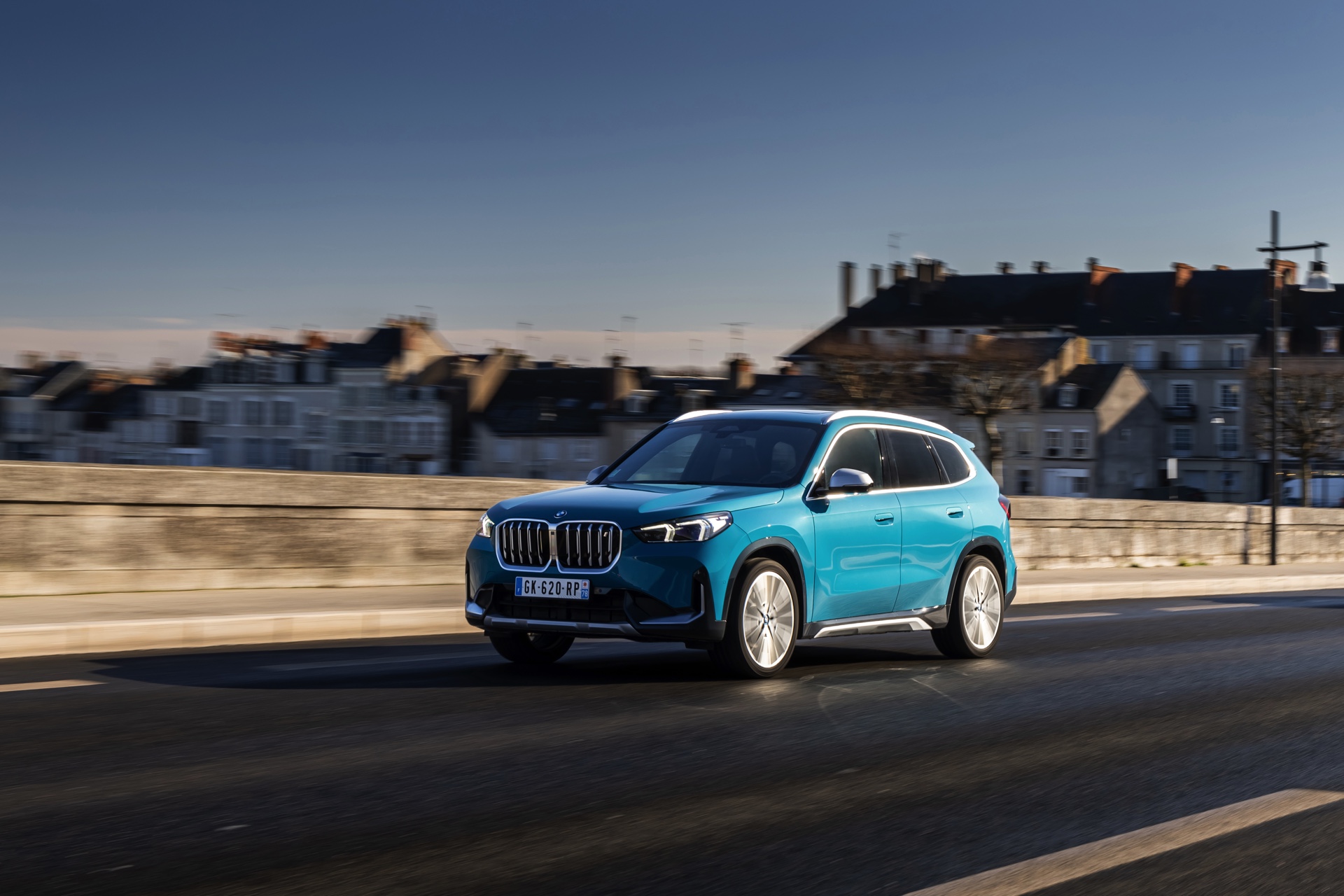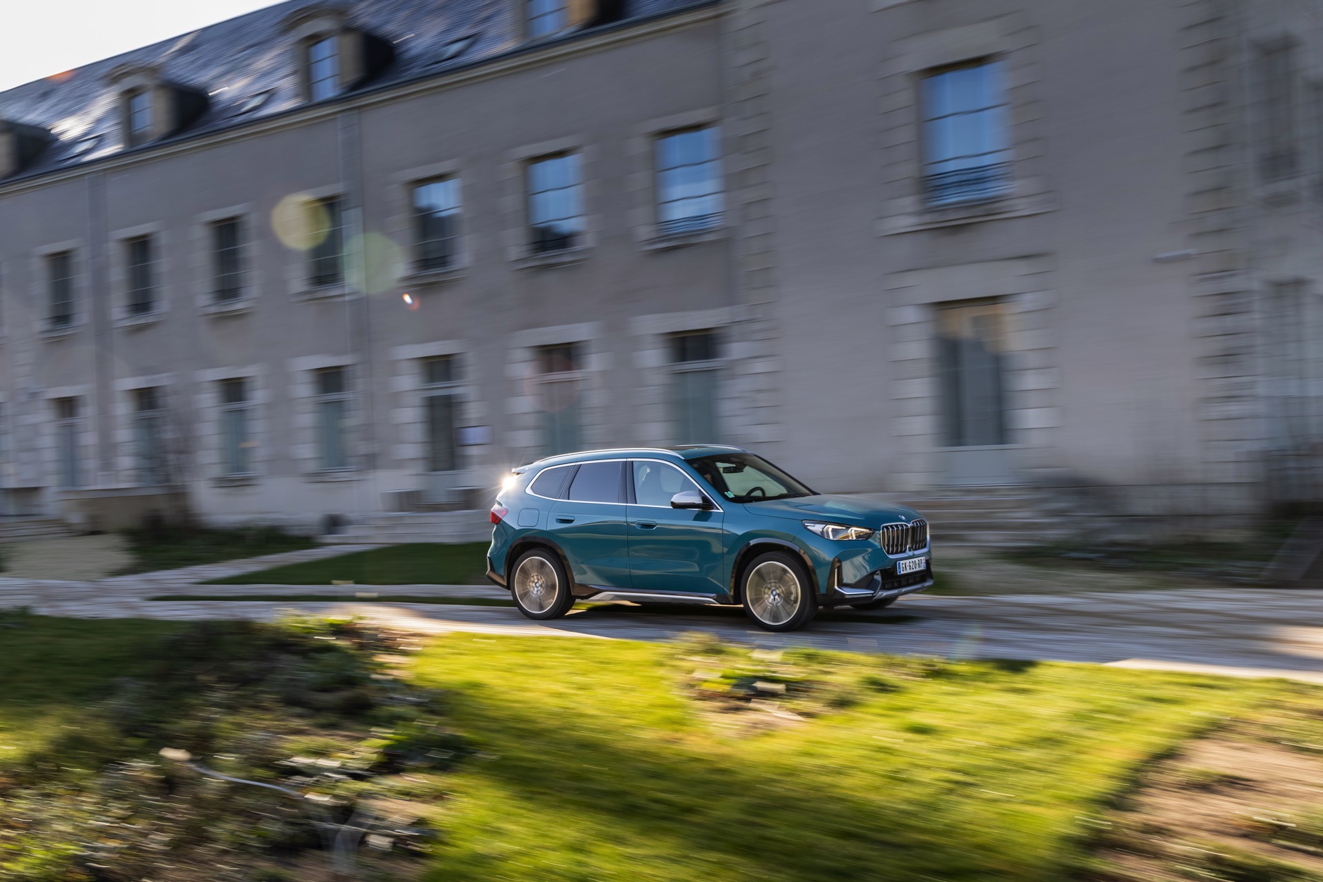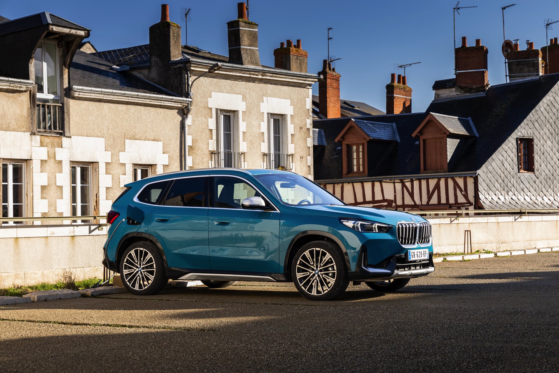 Blue Bay Lagoon zählt zu den jüngsten Ergänzungen der BMW-Farbenpalette und ist derzeit exklusiv für den BMW X1 (U11) und seinen rein elektrischen Ableger iX1 erhältlich. Aussagekräftige Fotos zur Wirkung der neuen Farbe waren bisher Mangelware, aber nun liefert BMW Frankreich eine ausführliche Foto-Serie zum BMW iX1 xDrive30 mit Lackierung in Blue Bay Lagoon. Der gezeigte Elektro-X1 trägt außerdem die optionale xLine, die den SUV-Charakter mit einem angedeuteten Unterfahrschutz an Front und Heck zusätzlich betont. Die Zierelemente sind genau wie die Nieren-Einfassung in Perlglanz Chrom gehalten, während die Nieren-Streben und die Dachreling in satiniertem Aluminium und die Außenspiegel-Kappen in Glacier Silber glänzen.