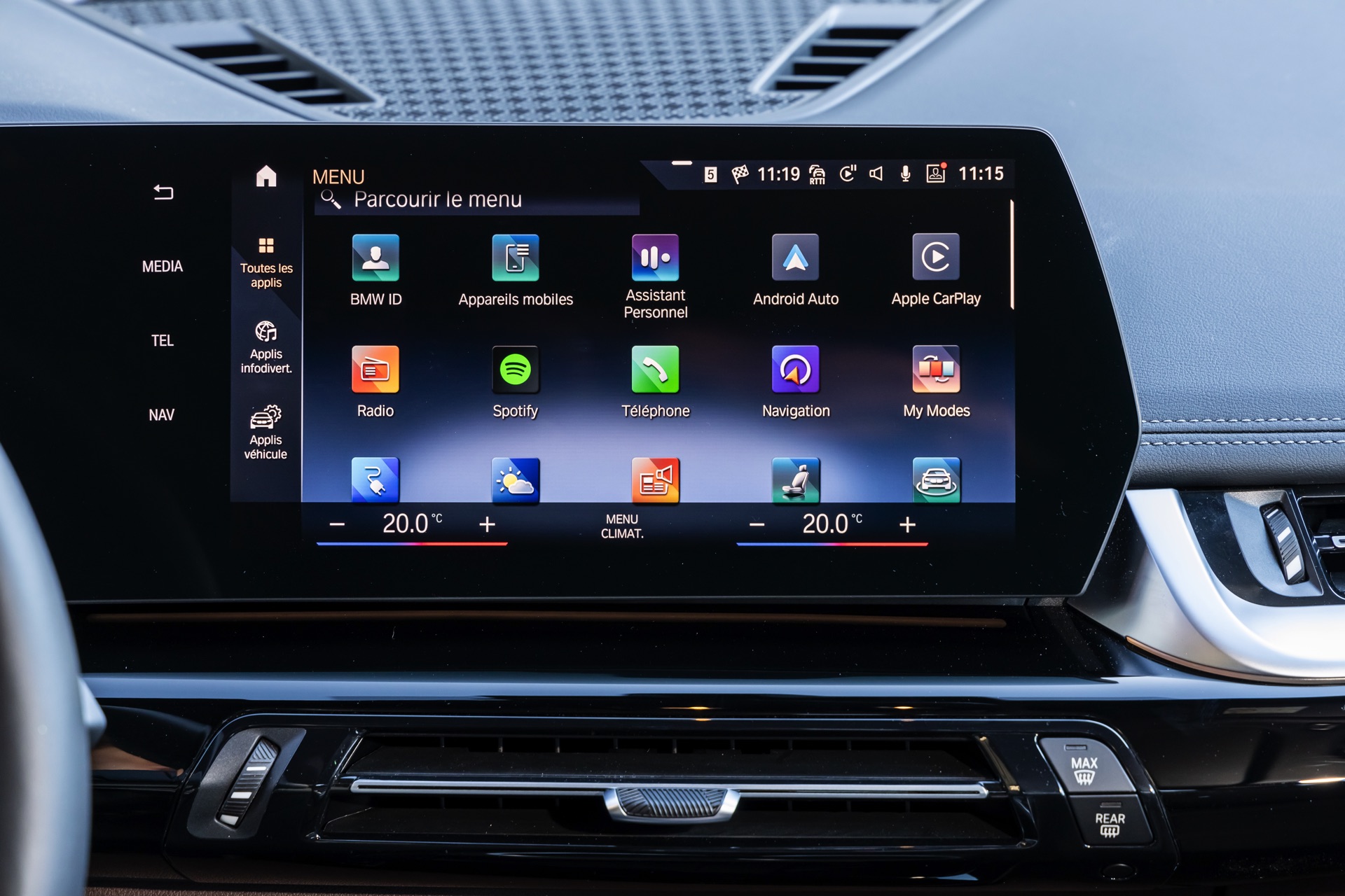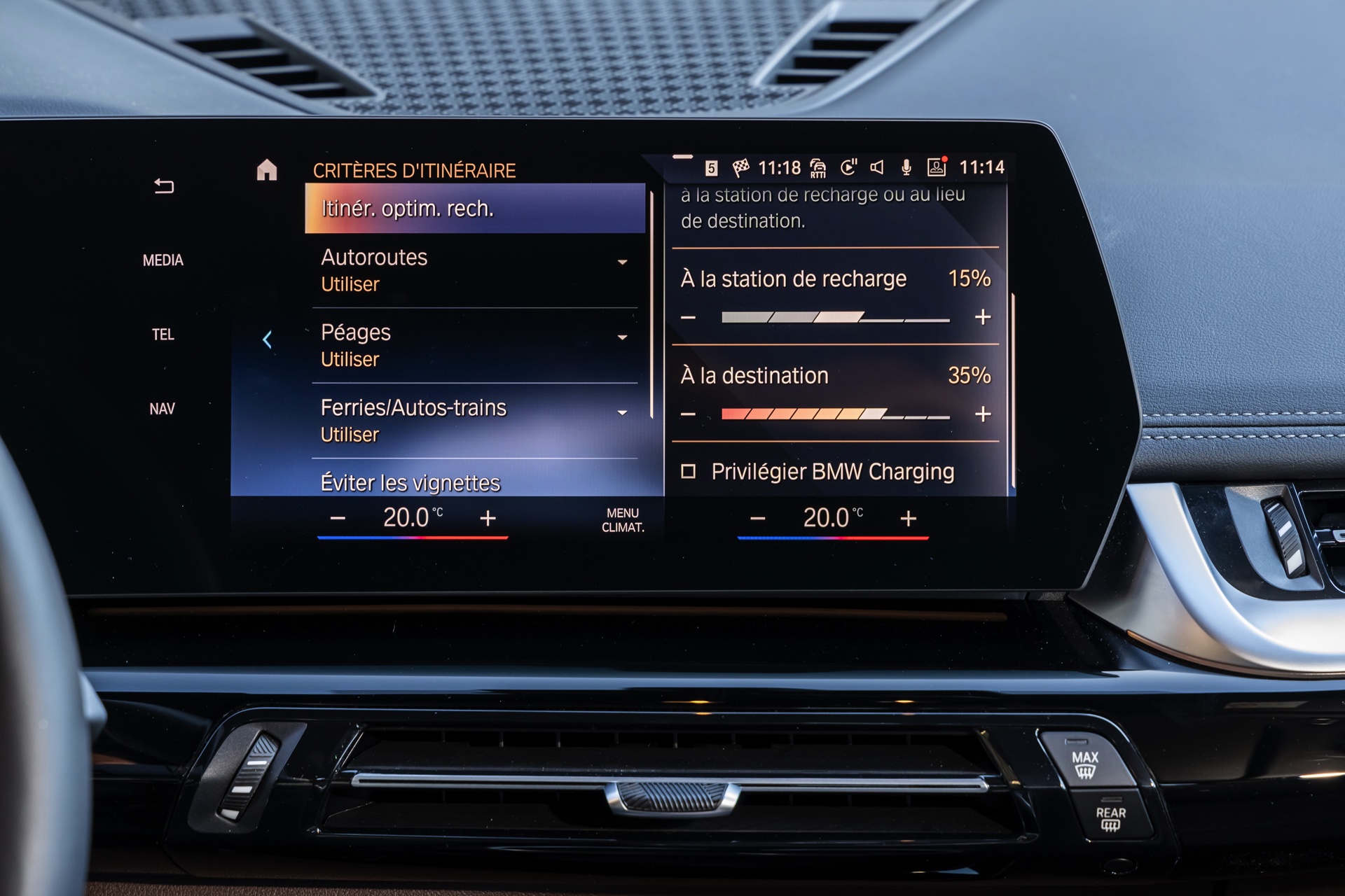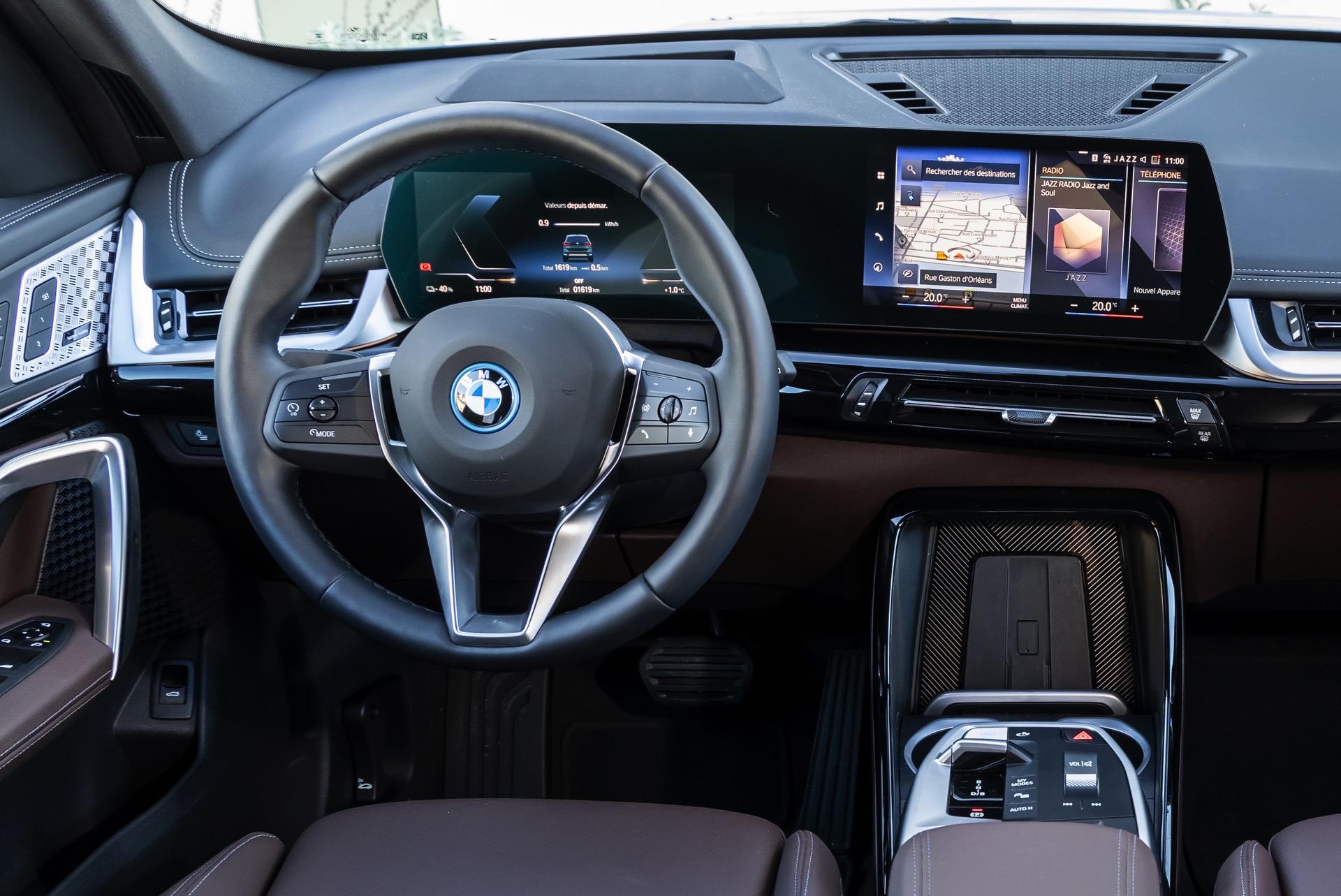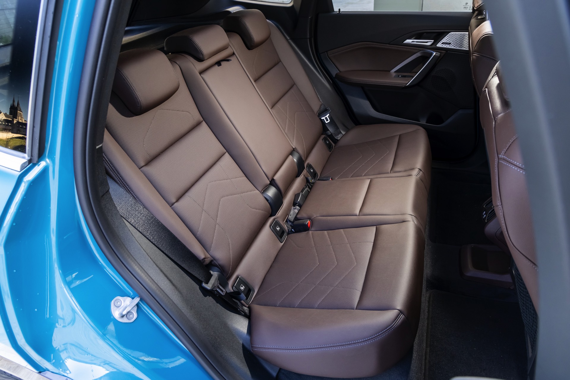 Auf den Innenraum-Fotos sehen wir die perforierte Sensatec-Ausstattung im Farbton Mokka, abgesehen davon dominieren natürlich das Curved-Display und die frei schwebende Mittelkonsole das Bild. Wie alle anderen neuen BMW X1 (U11) verzichtet auch der iX1 auf einen klassischen Automatik-Wählhebel, stattdessen kommt lediglich eine dezente Wippe zum Wählen der Fahrstufe zum Einsatz. Deutlich mehr Umgewöhnung fordert zweifellos der “fehlende” iDrive-Controller, den langjährige BMW-Fahrer an Bord des neuen X1 immer wieder vergeblich suchen: Die Bedienung vieler Funktionen, für die bisher nur eine Bewegung am Controller erforderlich war, muss nun neu erlernt werden.
