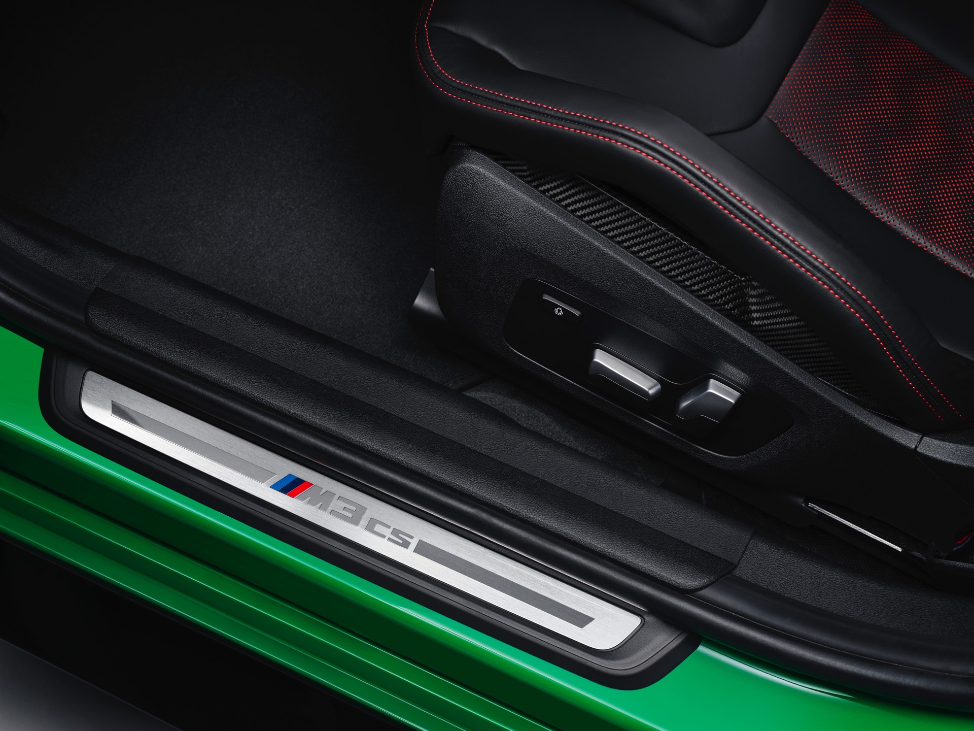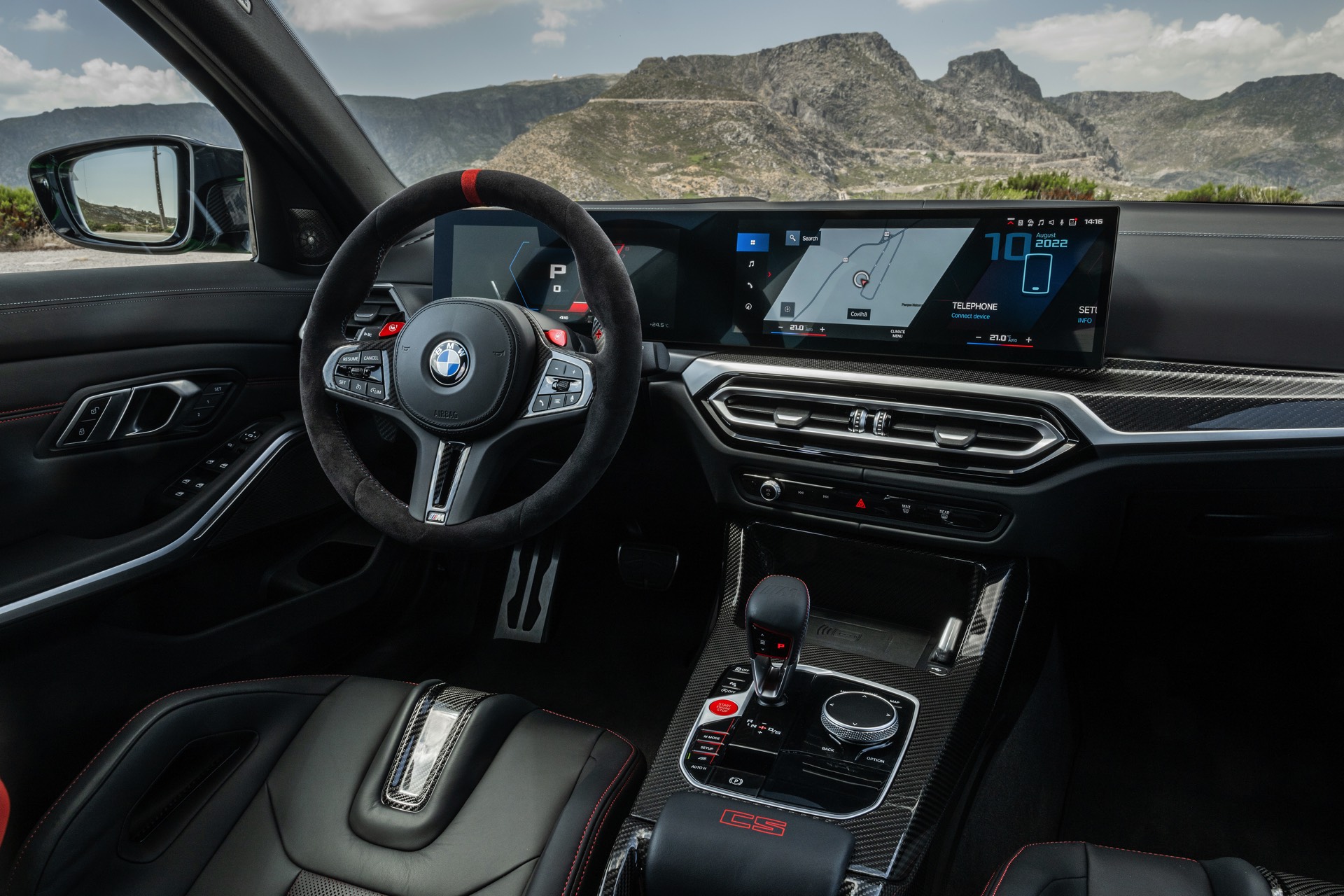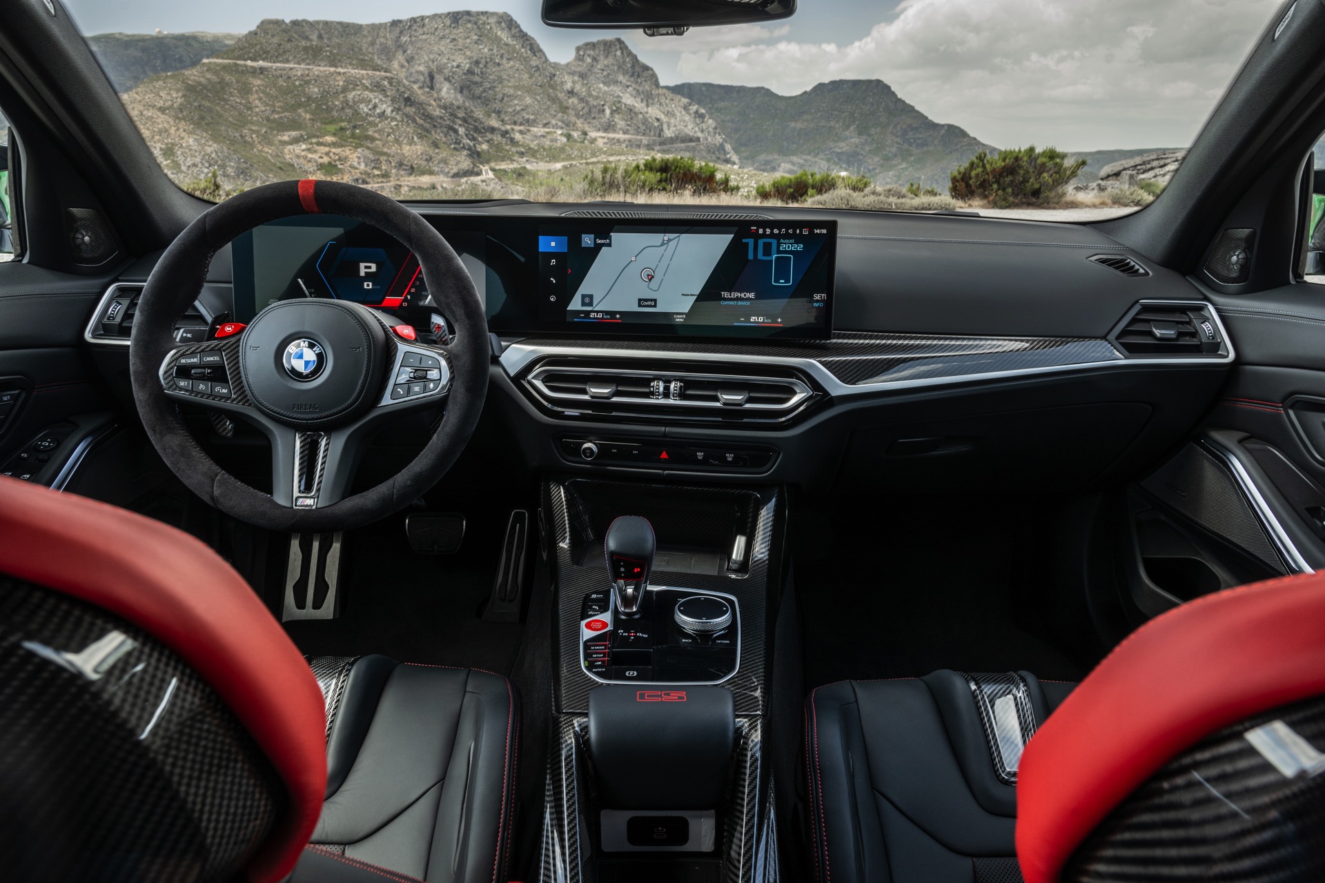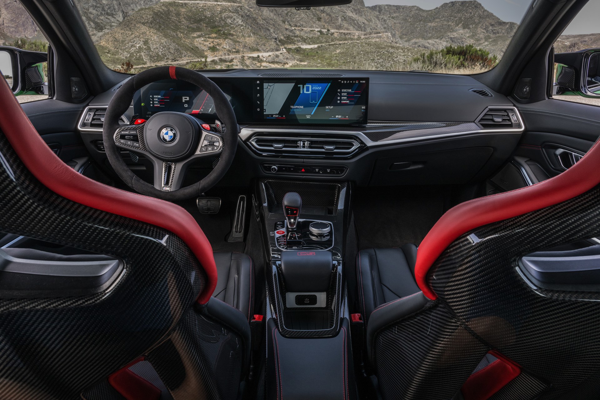 Dass der BMW M3 CS 20 Kilogramm weniger auf die Waage bringt als ein regulärer M3 mit M xDrive, verdankt er primär dem serienmäßigen Einsatz zahlreicher Carbon-Komponenten: Motorhaube, Frontsplitter und Diffusor-Einsatz bestehen ebenso aus kohlefaserverstärktem Kunststoff wie die aus dem M4 CSL bekannte Mittelkonsole, dazu kommen Carbon-Schalensitze und -Interieurleisten sowie eine im Vergleich zur Serie vier Kilogramm leichtere Titan-Abgasanlage. Weiteres Gewicht lässt sich optional einsparen, wenn sich der Käufer für die M Carbon-Keramik-Bremsanlage entscheidet.