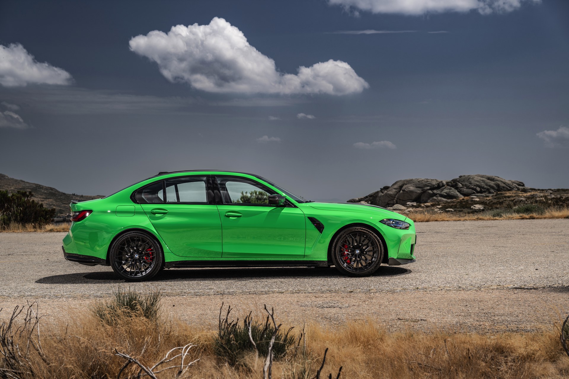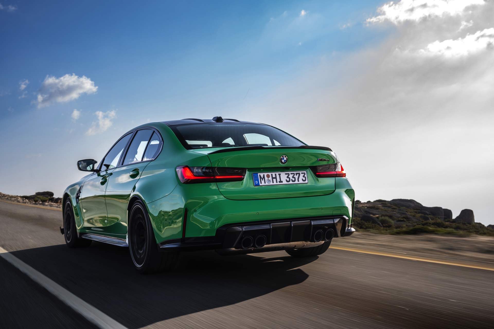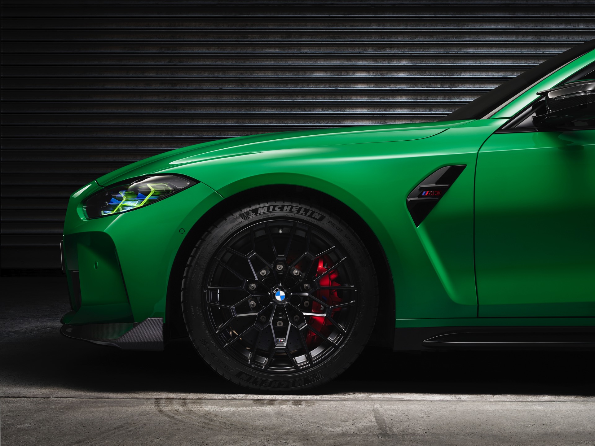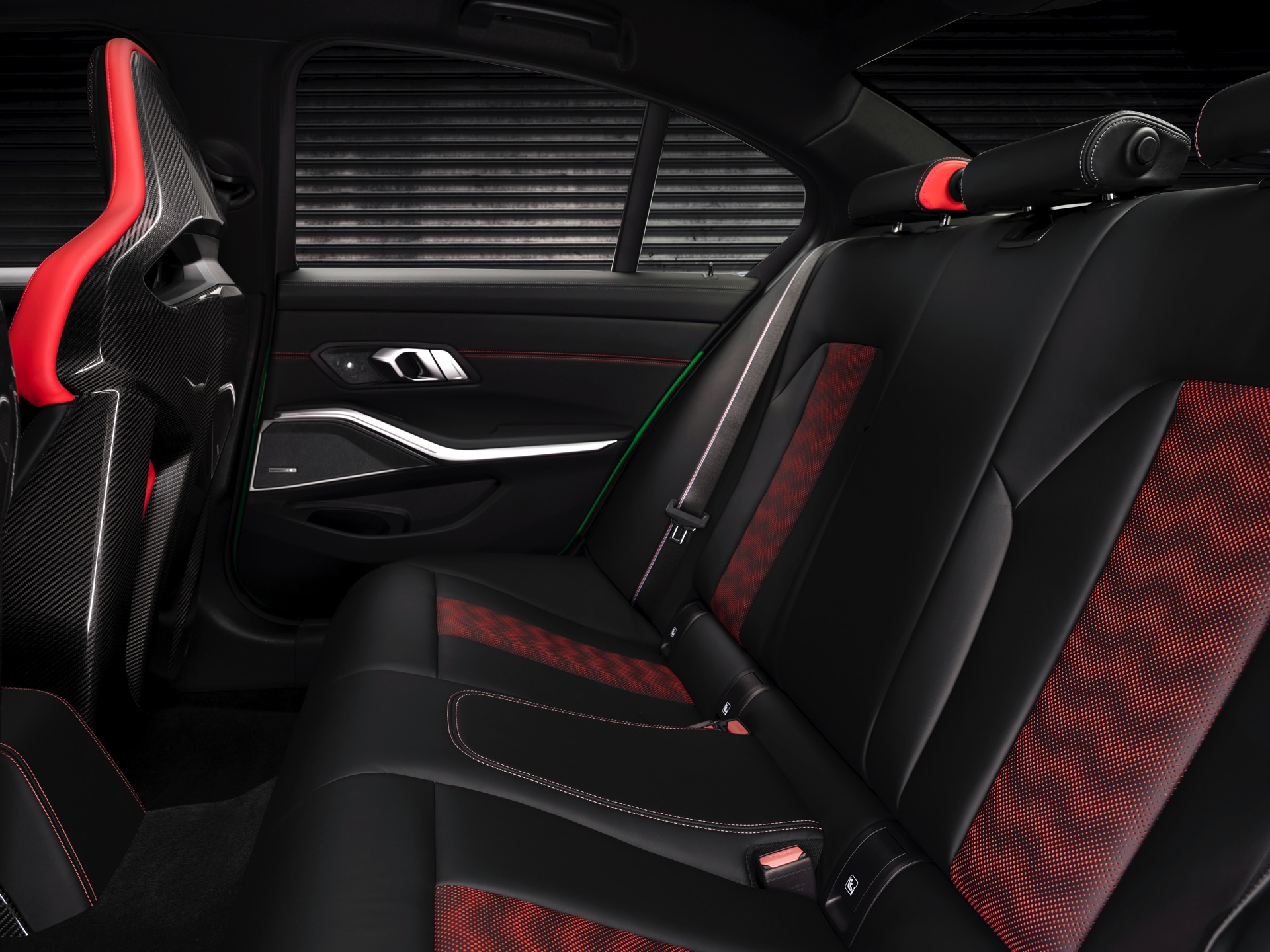 Dass der BMW M3 CS 20 Kilogramm weniger auf die Waage bringt als ein regulärer M3 mit M xDrive, verdankt er primär dem serienmäßigen Einsatz zahlreicher Carbon-Komponenten: Motorhaube, Frontsplitter und Diffusor-Einsatz bestehen ebenso aus kohlefaserverstärktem Kunststoff wie die aus dem M4 CSL bekannte Mittelkonsole, dazu kommen Carbon-Schalensitze und -Interieurleisten sowie eine im Vergleich zur Serie vier Kilogramm leichtere Titan-Abgasanlage. Weiteres Gewicht lässt sich optional einsparen, wenn sich der Käufer für die M Carbon-Keramik-Bremsanlage entscheidet.