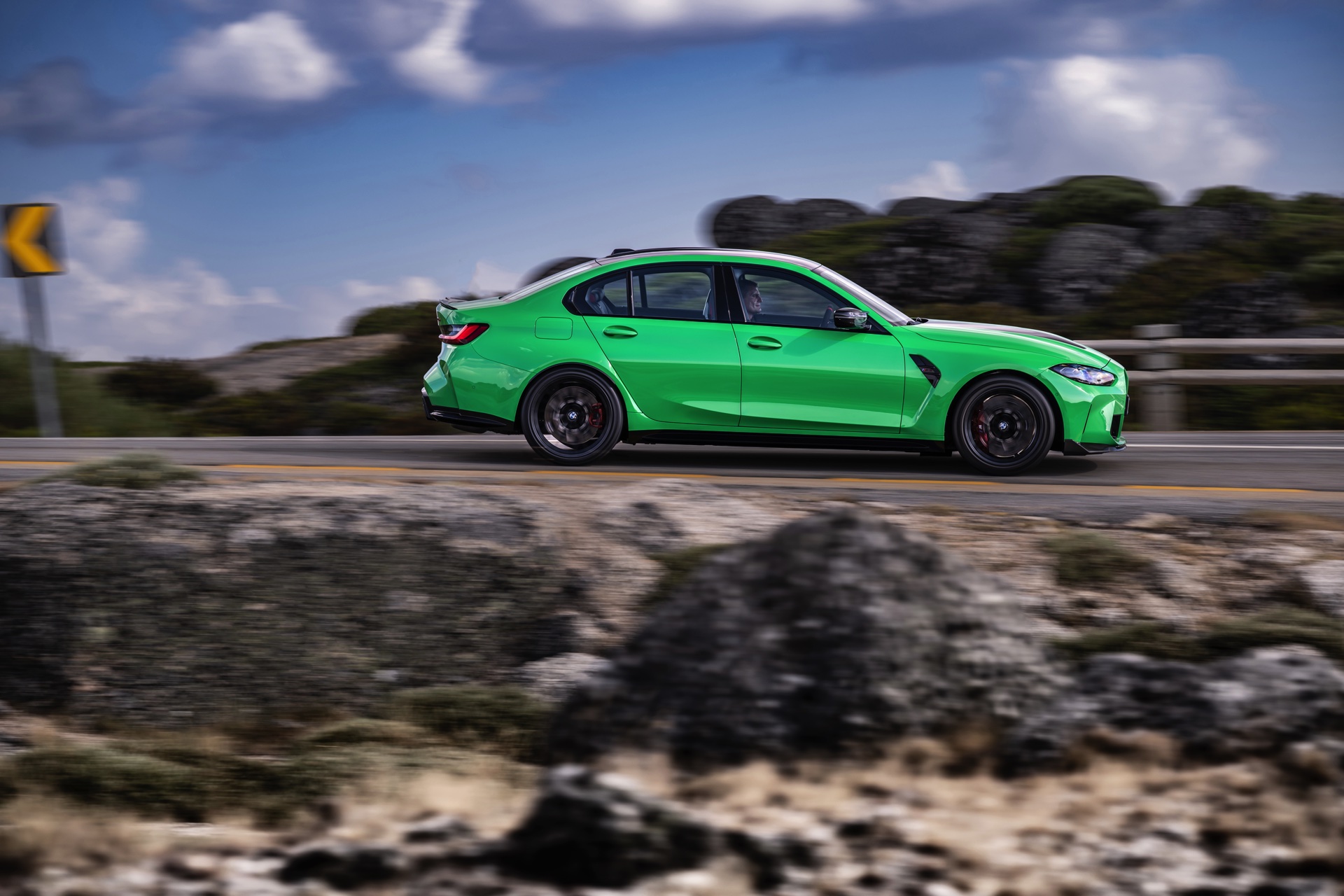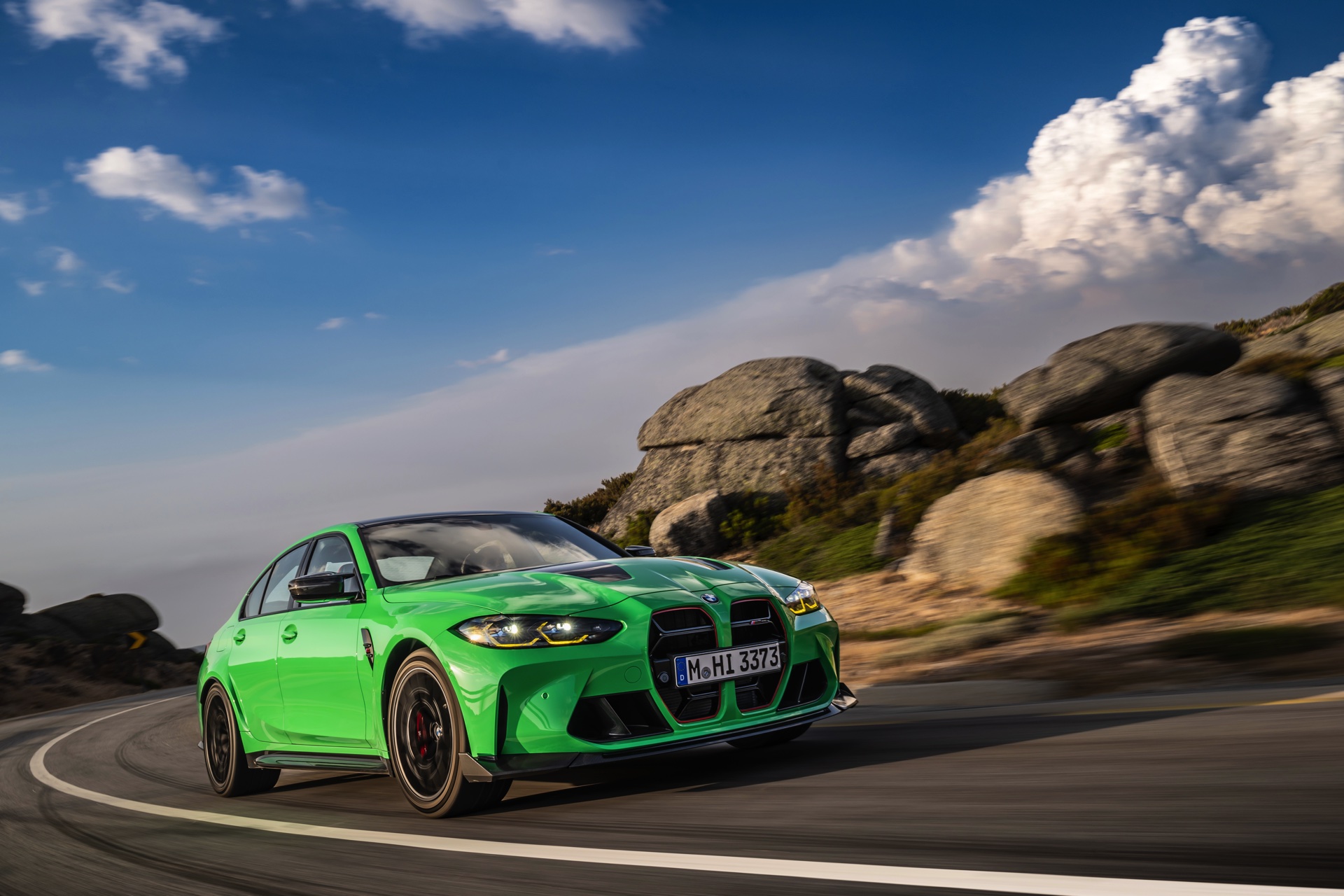 Neben vier Türen und einer vollwertigen Rückbank für drei weitere Mitfahrer erhält der BMW M3 CS 2023 deshalb auch den Allradantrieb M xDrive, der ihm neben Traktionsvorteilen auf trockenem Asphalt natürlich auch eine bei keinem seiner Vorgänger in diesem Maß vorhandene Ganzjahrestauglichkeit beschert. Abseits derart nüchterner Argumente ist aber klar, dass der Antrieb aller vier Räder in diesem Fall vor allem den Fahrleistungen dienlich sein soll: Die 550 PS des Biturbo-Reihensechszylinders S58 lassen sich so einfach noch souveräner in Vortrieb umwandeln, egal ob bei der vollen Beschleunigung aus dem Stand oder beim fulminanten Herausbeschleunigen aus engen Kurven. "