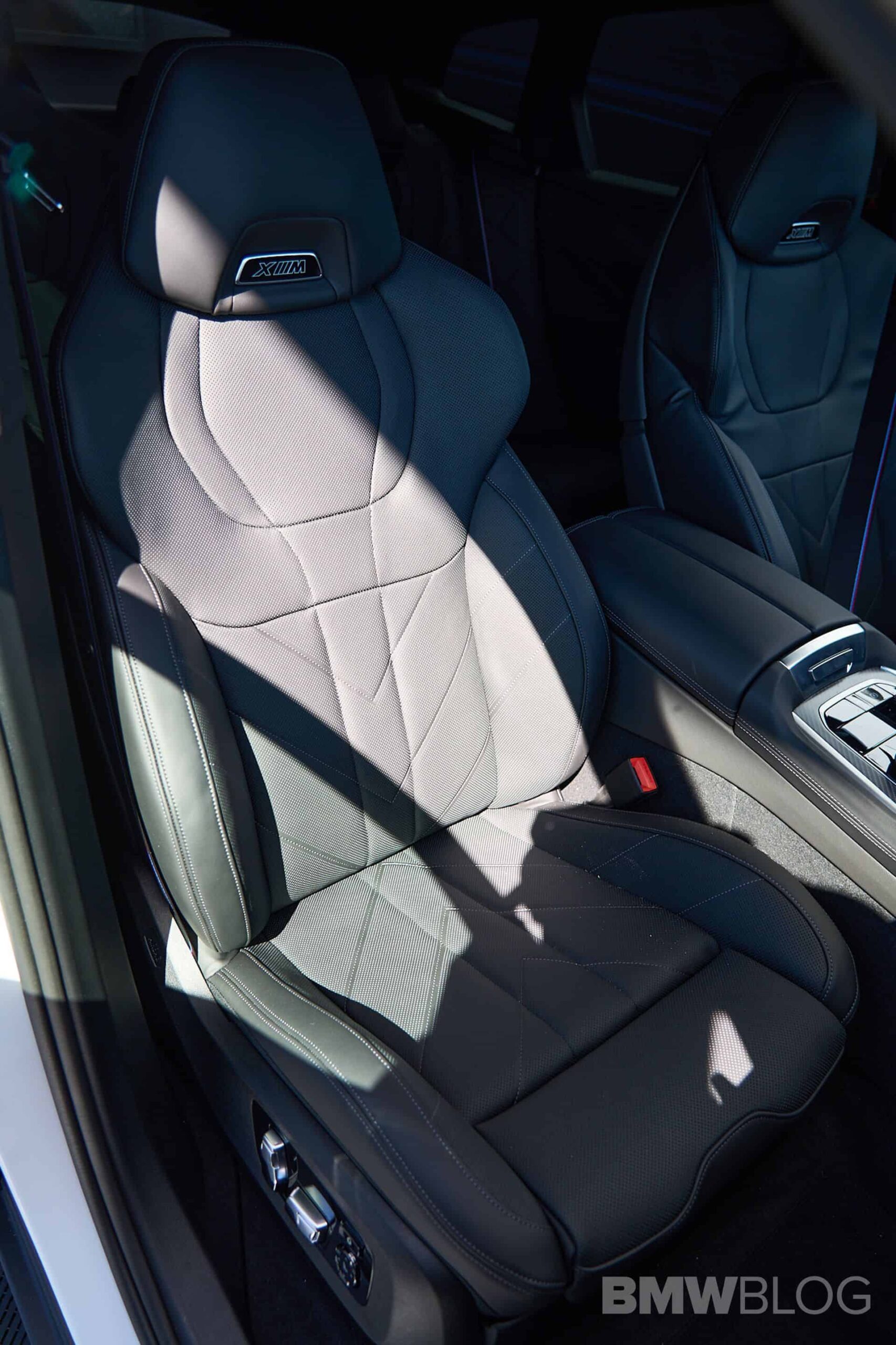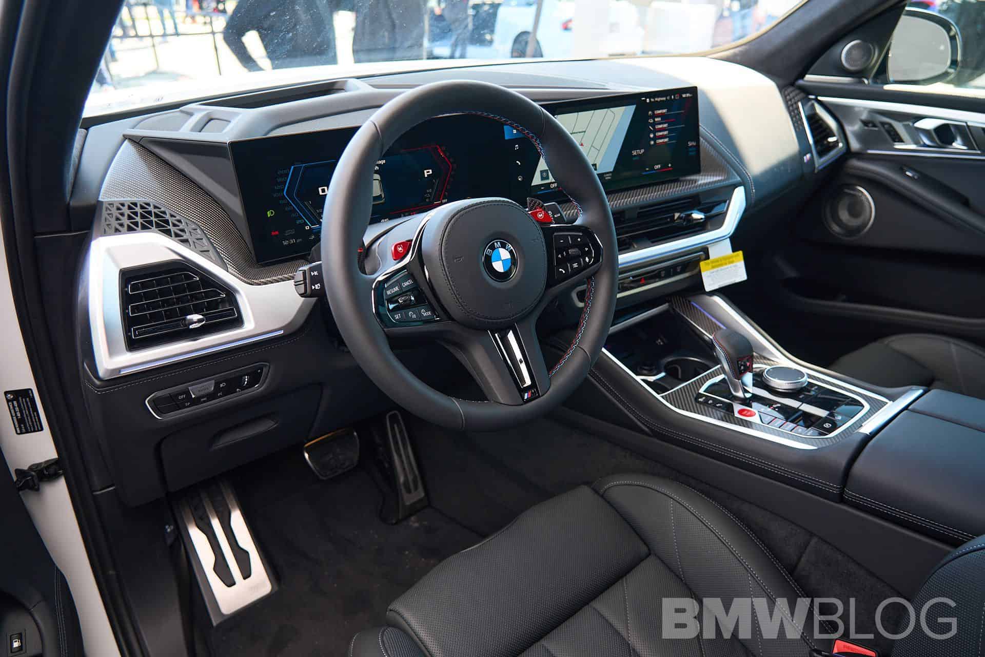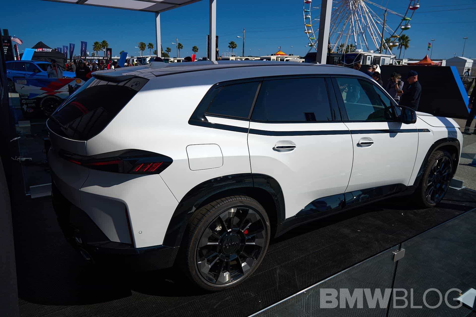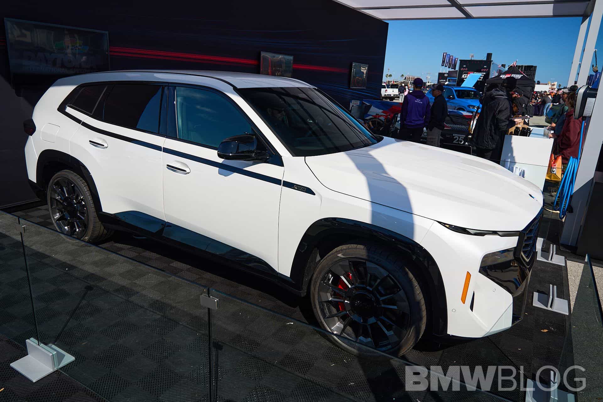 Auch der in Spartanburg gebaute BMW XM dürfte in vielen Fällen auf dem US-Markt landen, obwohl er mit seinem expressiven Design natürlich auch selbstbewusste Kunden in Asien, dem Nahen Osten und Europa ins Visier nimmt. In Daytona verzichtet das Power-SUV dank erweiterter Shadow Line auf die üblichen goldenen Akzente, stattdessen sorgt Hochglanz-Schwarz für den größtmöglichen Kontrast zur weißen Metallic-Lackierung. Passend dazu trägt der bei BMWblog.com gezeigte XM die beinahe schwarz wirkende Sonnenschutzverglasung ab der B-Säule und die 23 Zoll großen Leichtmetallräder Sternspeiche 923 M Bicolor mit teilweise schwarz lackierten Flächen.