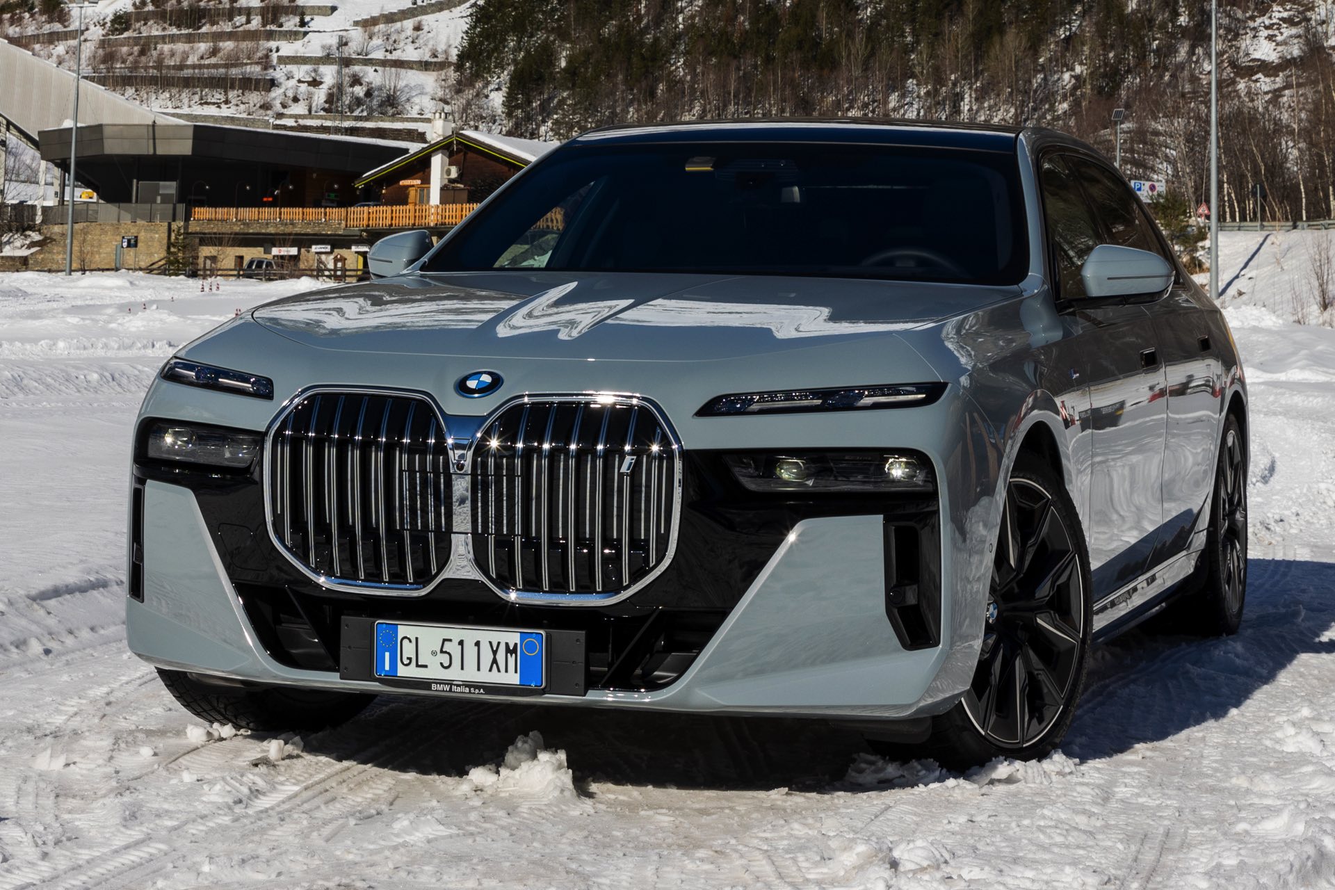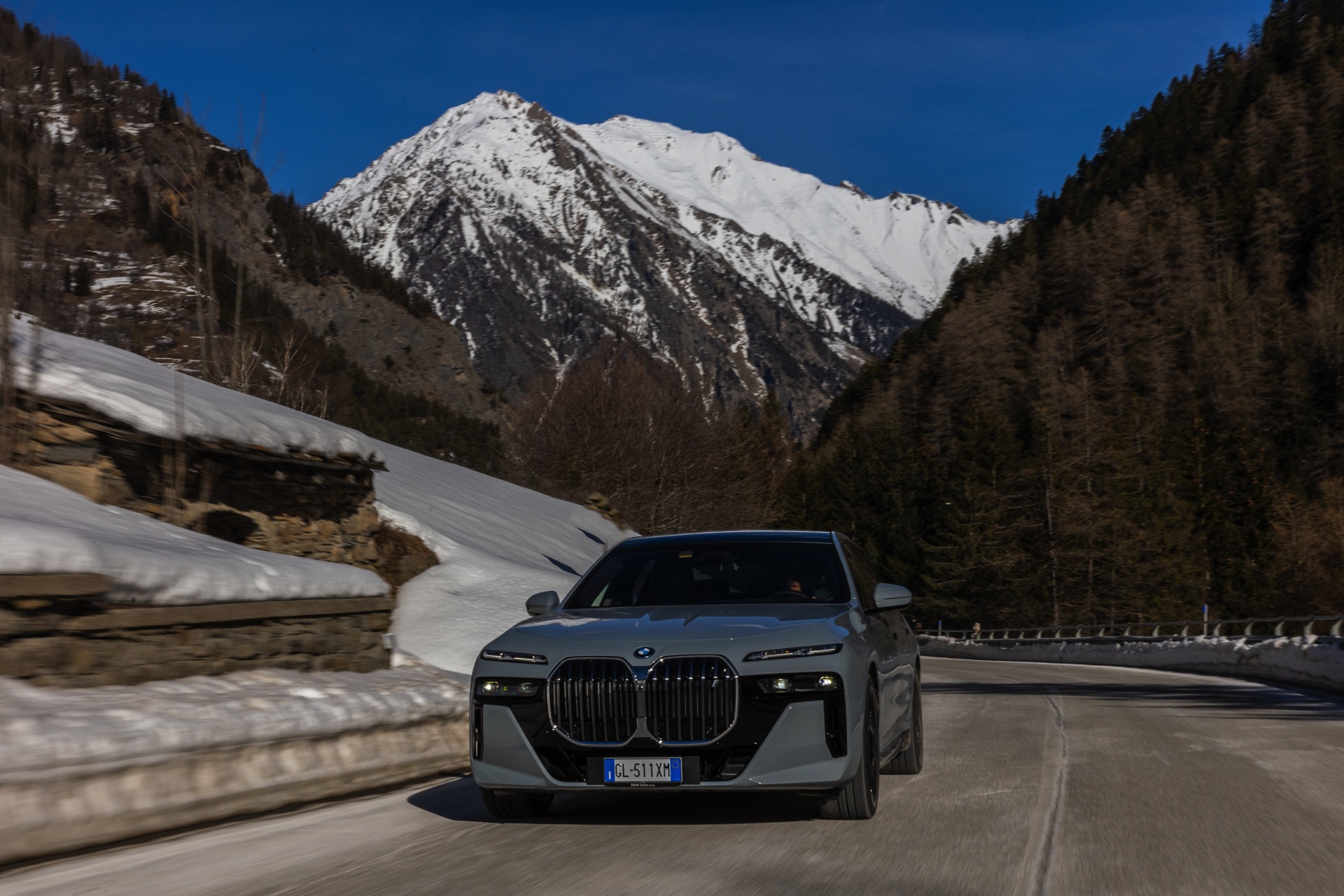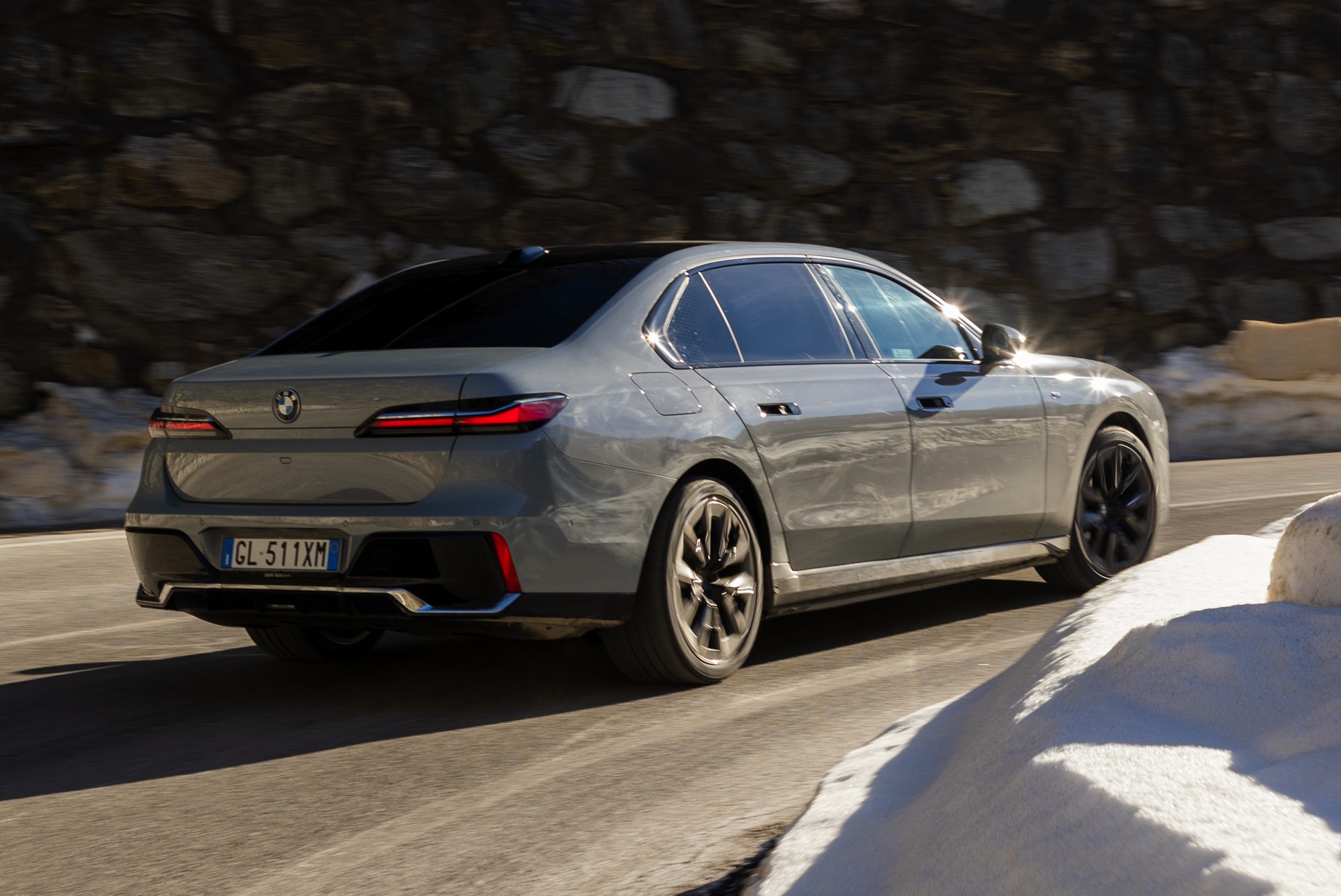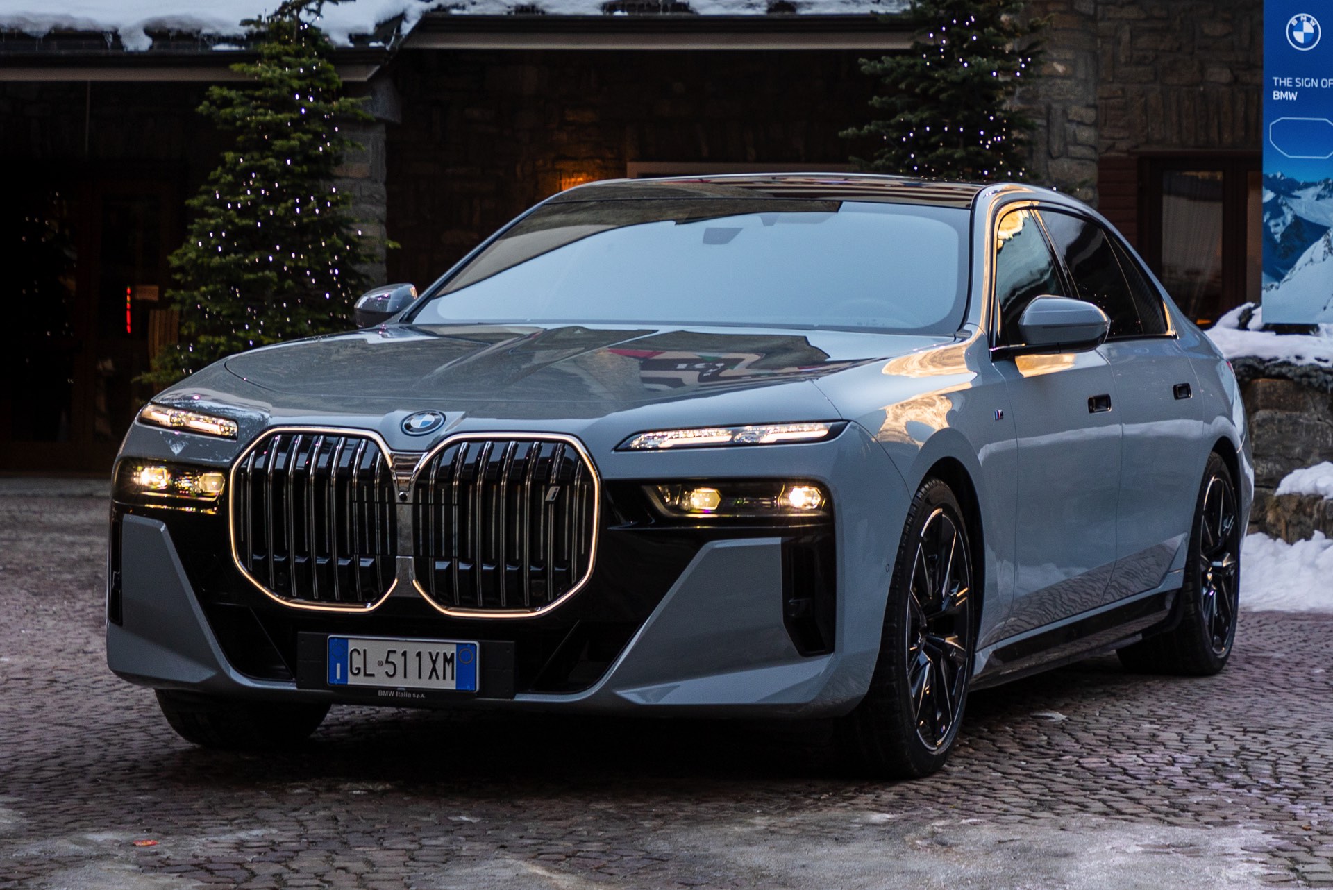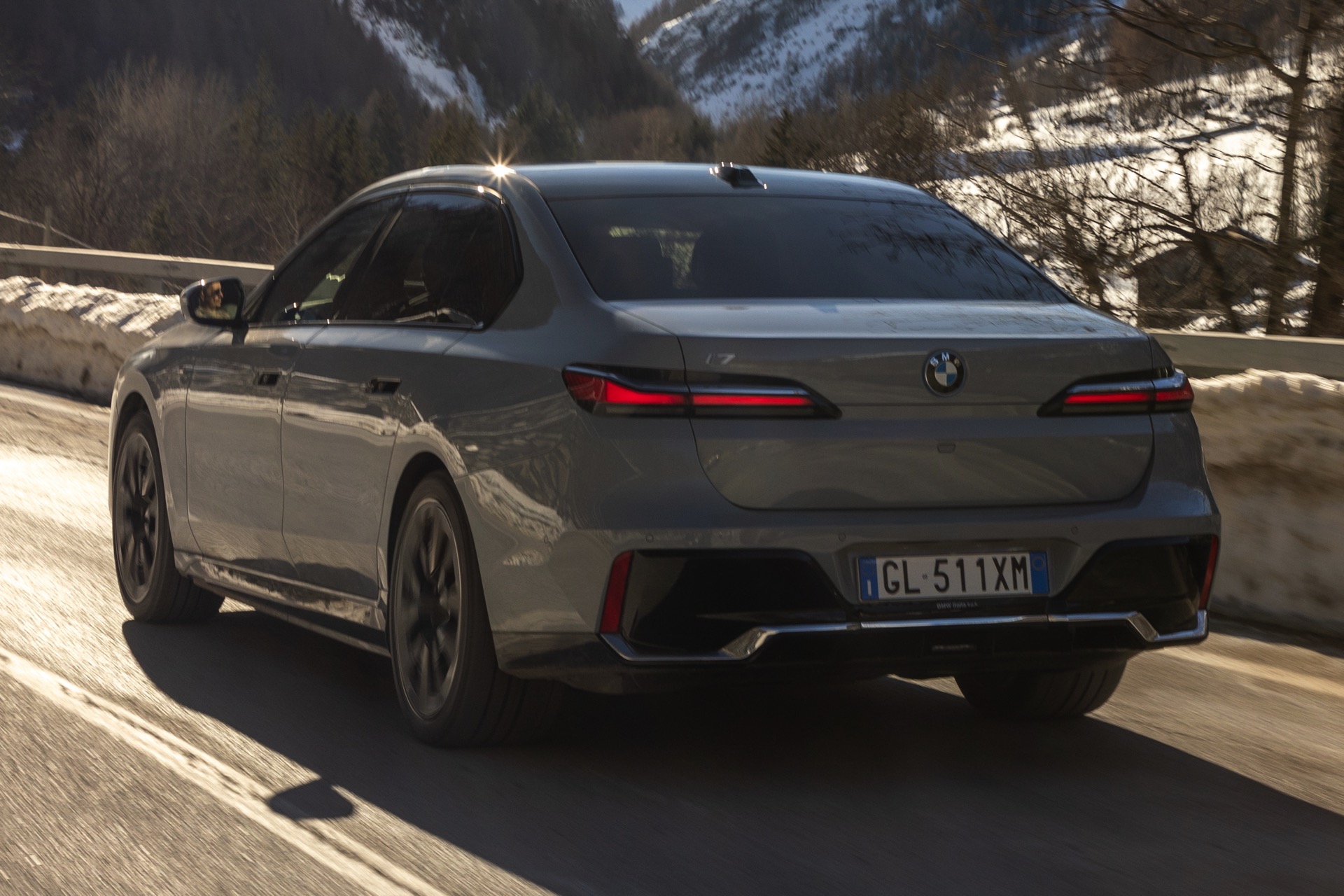 Graue Lackierungen wie Brooklyn Grau Metallic erfreuen sich seit Jahren wachsender Beliebtheit und sind längst auch in der Luxusklasse angekommen. Aktuelle Fotos aus Italien zeigen uns den neuen BMW i7 (G70) mit M Sport-Paket und der markanten Lackierung, die sämtliche Formen der Karosserie betont. In den Radhäusern der 5,39 Meter langen Limousine sehen wir die 21 Zoll großen Aerodynamikräder 909 M Multicolor Jetblack 3D-Glanzschliff, die eine gelungene Optik mit erstaunlich geringem Luftwiderstand kombinieren.