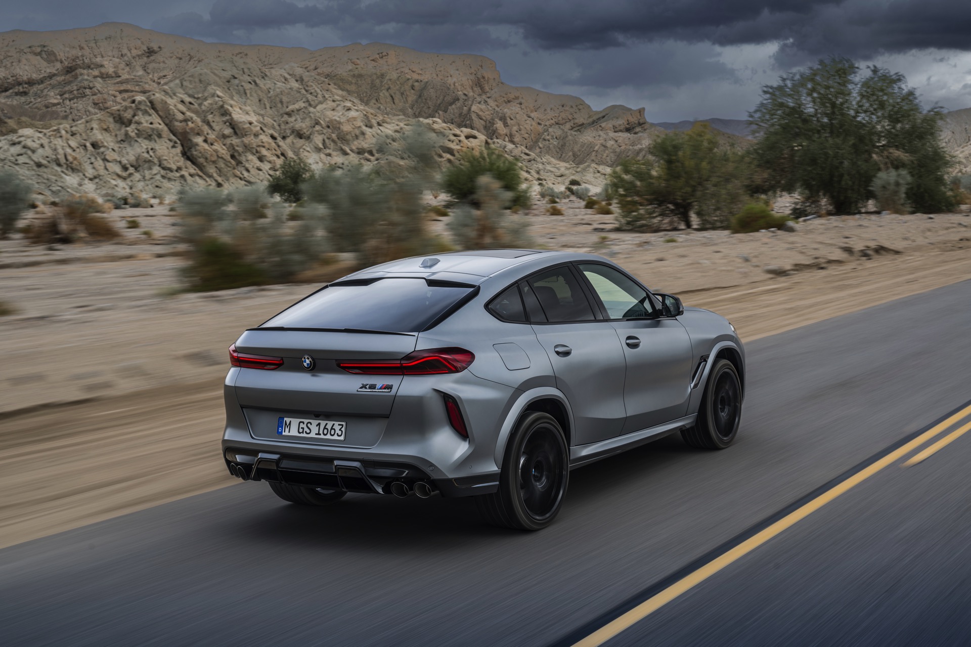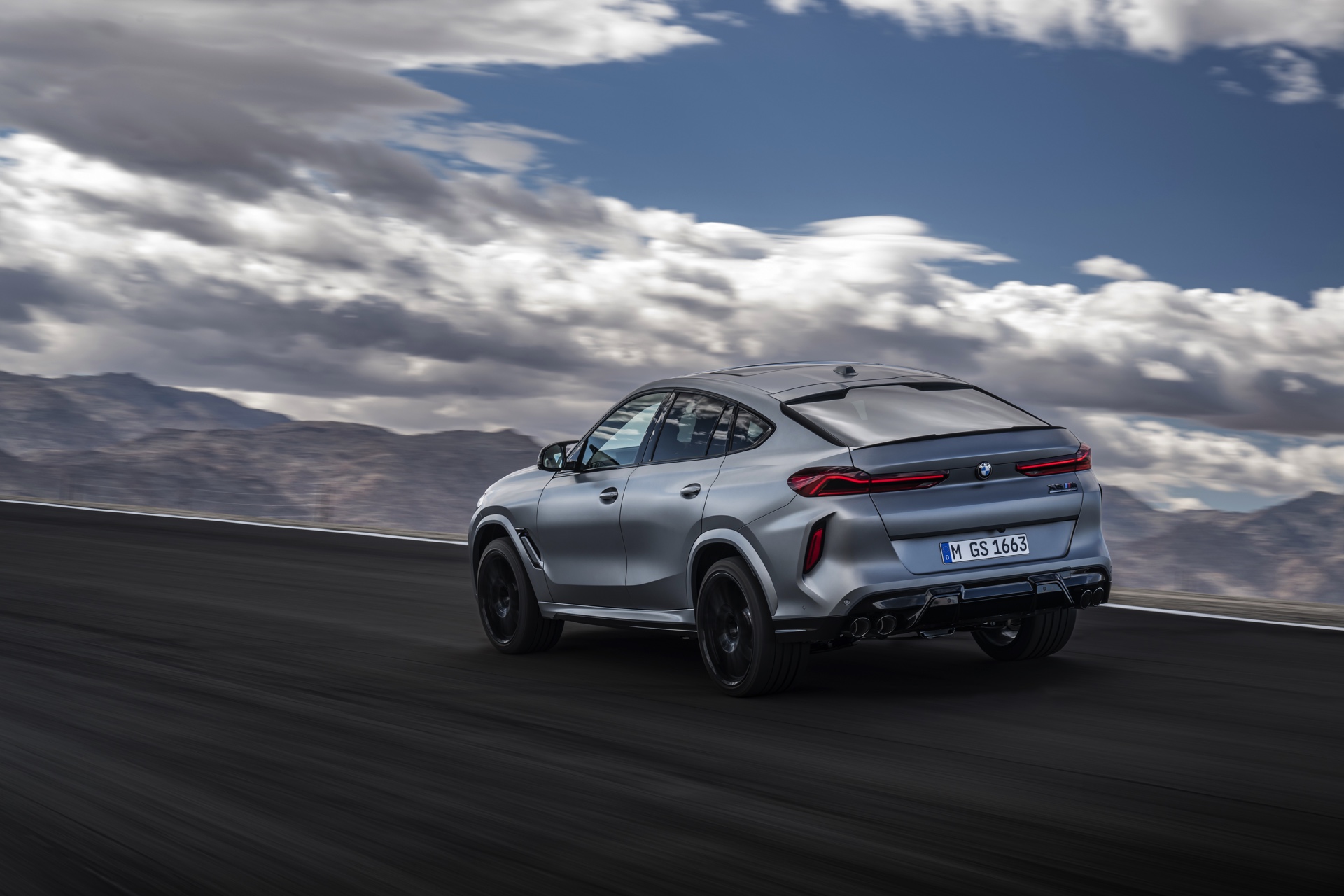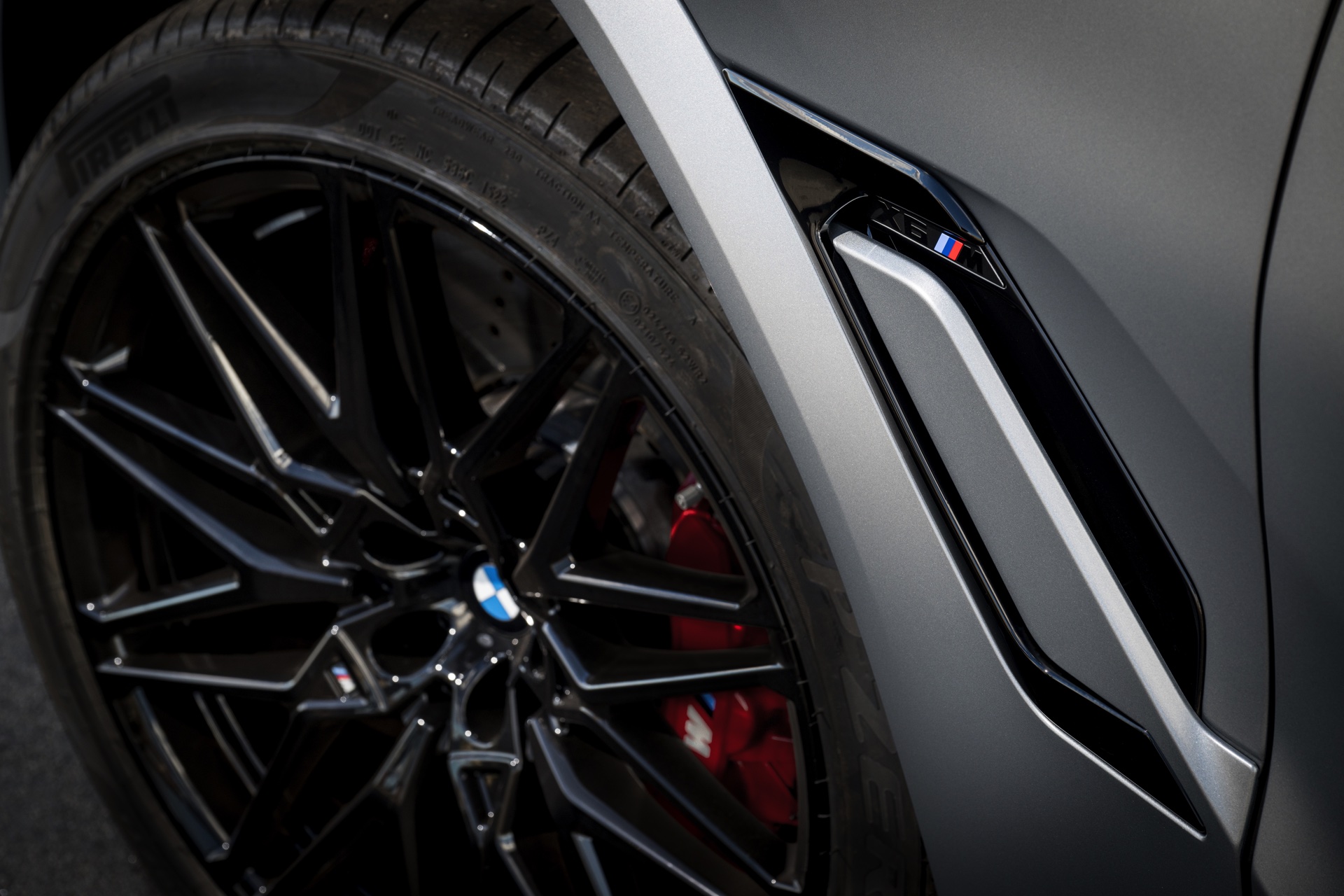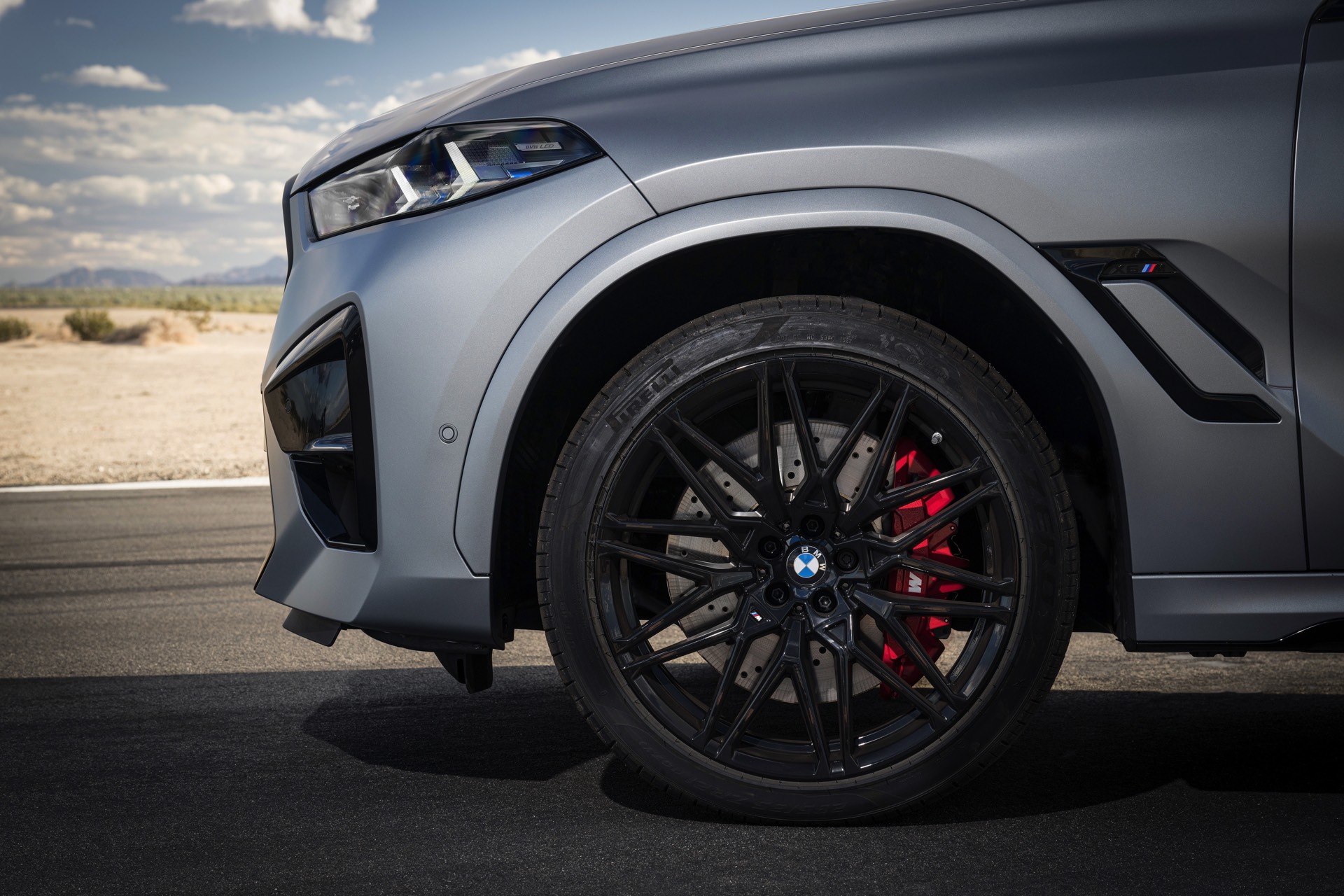 Neben den deutlichen Veränderungen an der Front sind es nur wenige Details, die das BMW X6 M Facelift 2023 vom bisherigen Modell unterscheiden: Die Farbpalette wurde um Frozen Pure Grey, Brooklyn Grey und Isle of Man Green erweitert und in den Radhäusern sind nun serienmäßig 21-Zoller vorn und sogar 22 Zoll große Felgen hinten verbaut. Auf Wunsch werden Außenspiegel und Heckspoiler-Lippe in Carbon ausgeführt, aber für einen wirklich veränderten Look sorgen diese Kleinigkeiten sicher nicht.