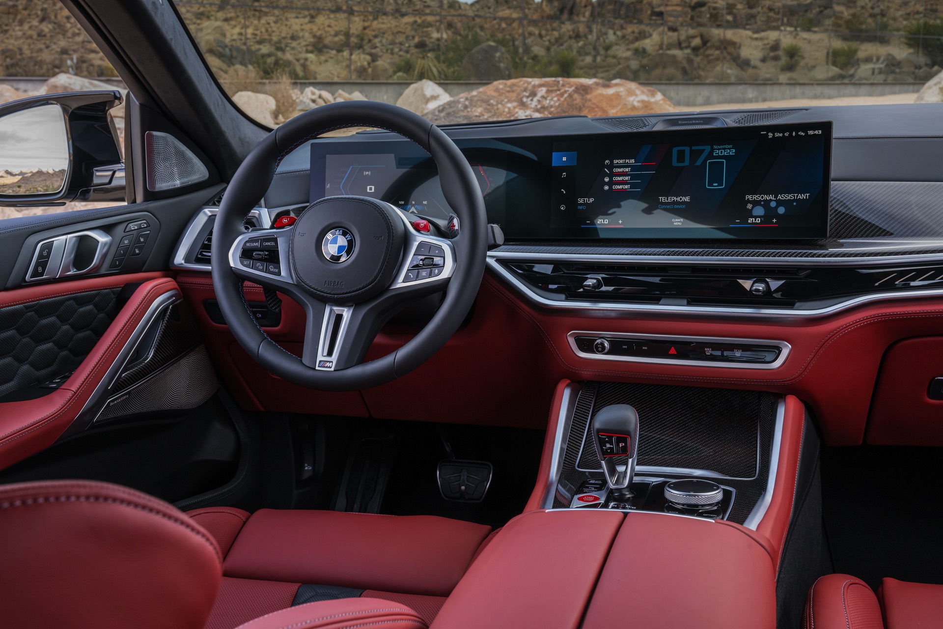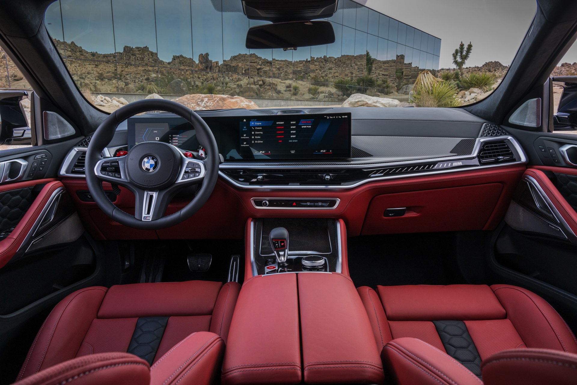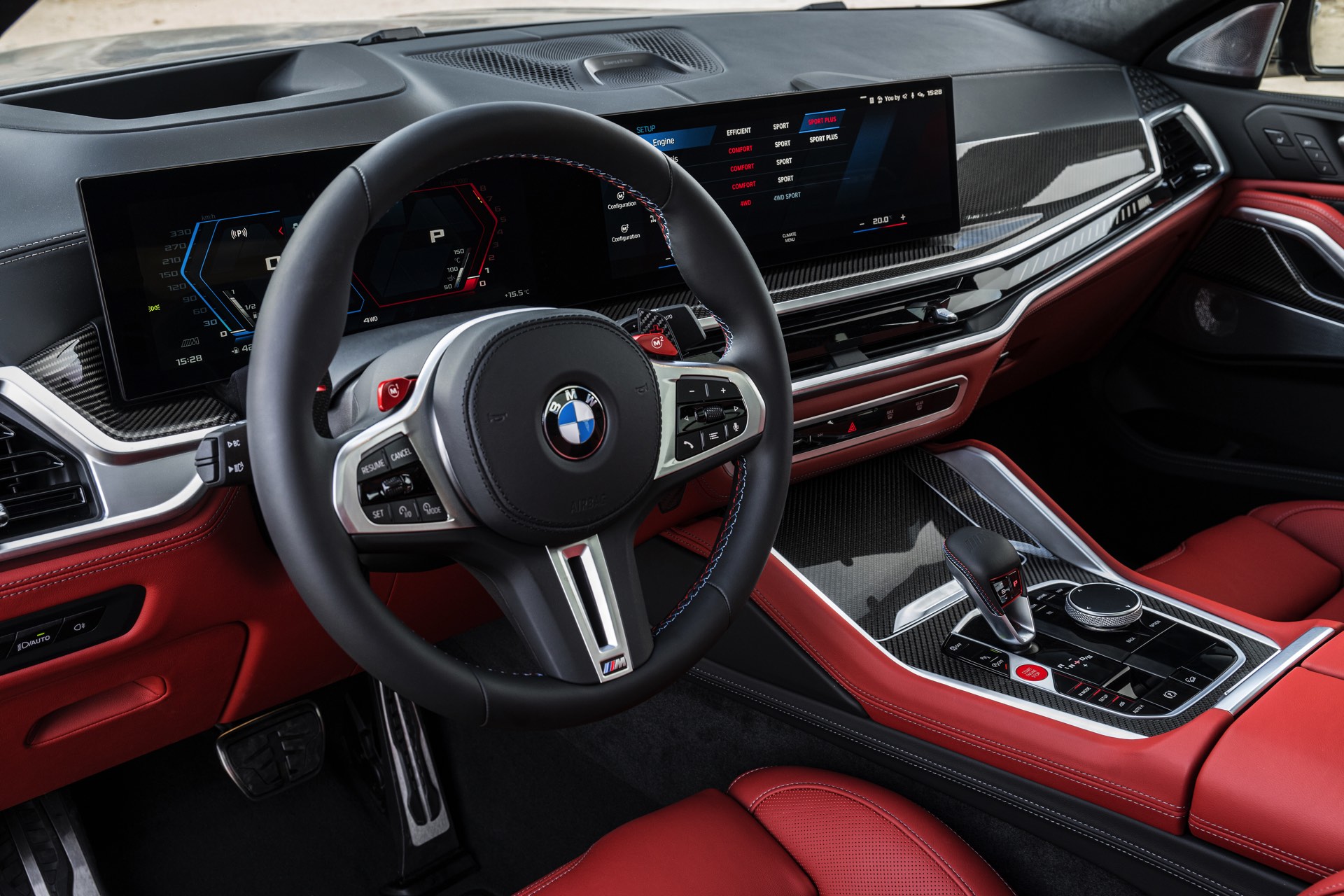 Wesentlich größer fallen da schon die Änderungen im Innenraum aus: Auch der X6 M (F96 LCI) kommt nun mit Curved Display und durchleuchteter Interieur-Leiste vor dem Beifahrer. Über das M-spezifische iDrive 8 lassen sich noch mehr Funktionen steuern als bisher, darunter die Auswahl der M-Modes Road, Sport und Track sowie die Wahl von einer der zwei Kennlinien für das integrierte Bremssystem. Eine weitere Verbesserung ist die dank ARB zehnfach schnellere Regelung des Radschlupfs beim Beschleunigen, auch wenn der Power-X6 dank M xDrive schon bisher keine Traktionsprobleme kannte.