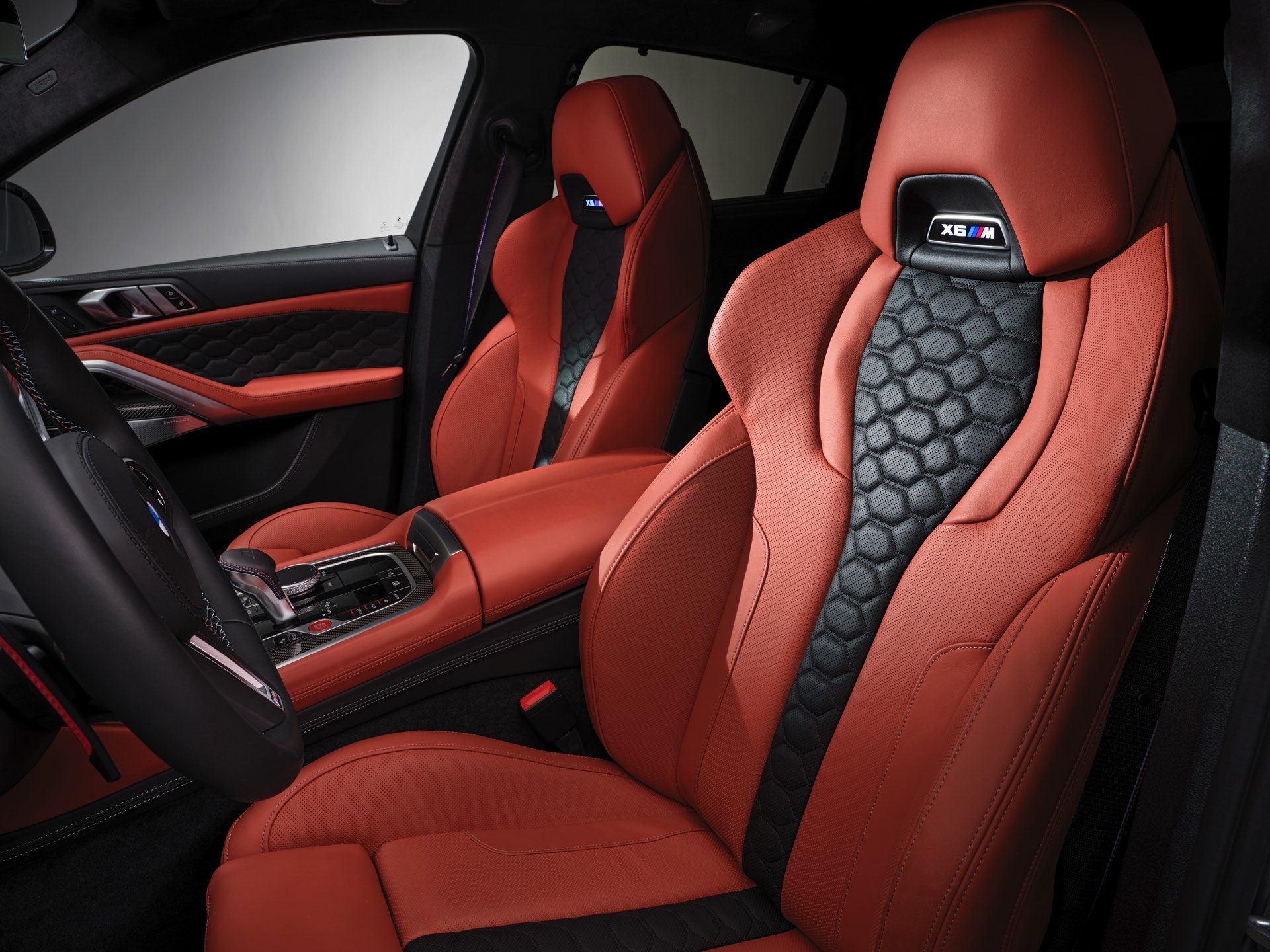 Dank der Querstreben innerhalb der Niere hebt sich der BMW X6 M noch stärker von den schwächeren Varianten ab und macht Kennern auf den ersten Blick klar, dass hier ein High Performance-M unterwegs ist. Hinter der mächtigen Frontschürze arbeitet ab dem Facelift der von einem 48-Volt-Bordnetz unterstützte V8-Biturbo S68, der das SUV-Coupé mit der Kraft von 625 PS und 750 Newtonmetern Drehmoment in 3,9 Sekunden von 0 auf 100 beschleunigt. Keine 10 Sekunden später fällt laut Werksangabe die 200er-Marke (13,6 s) und mit dem optionalen M Driver’s Package wird der Beschleunigung erst bei 290 km/h ein künstlicher Riegel vorgeschoben. "