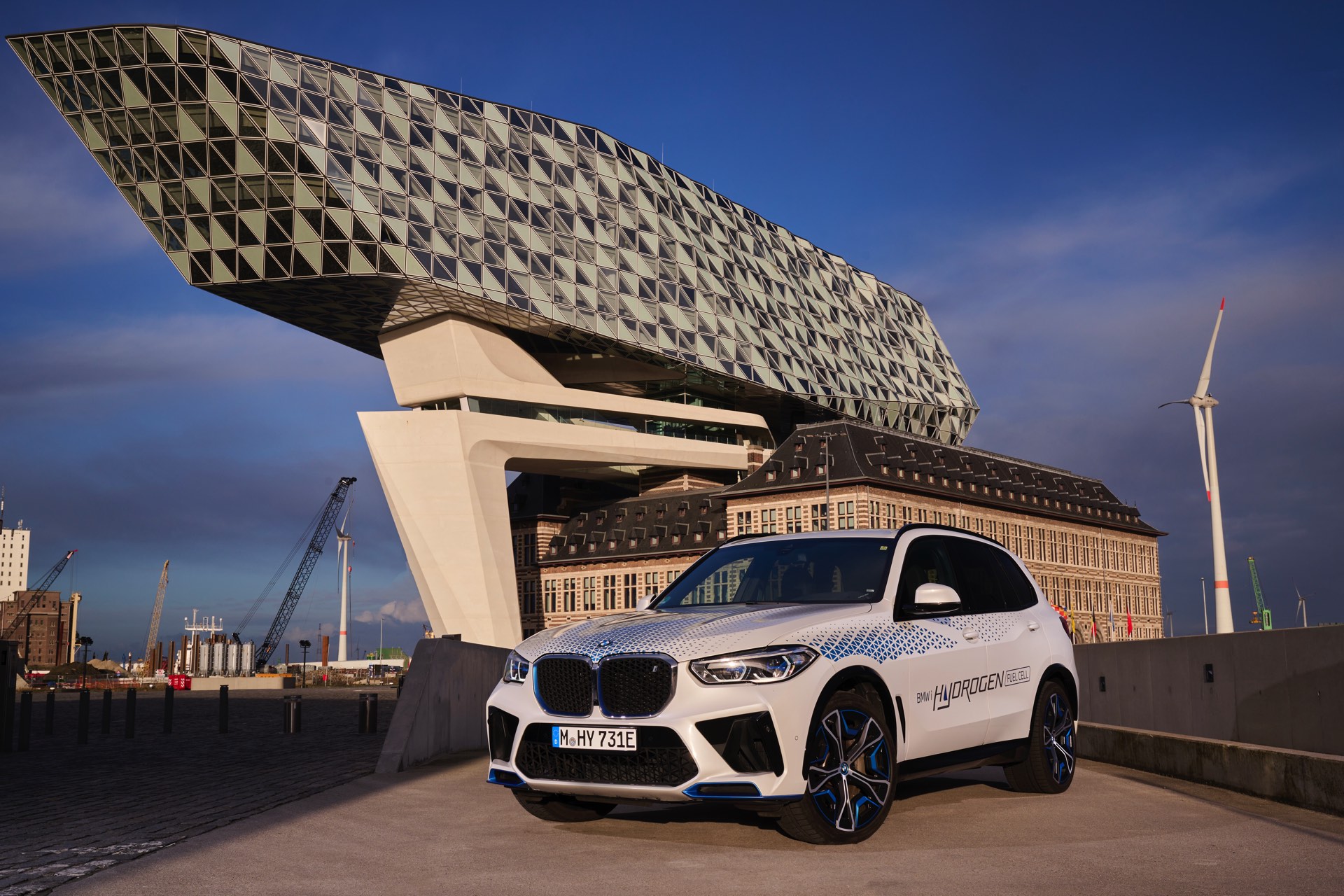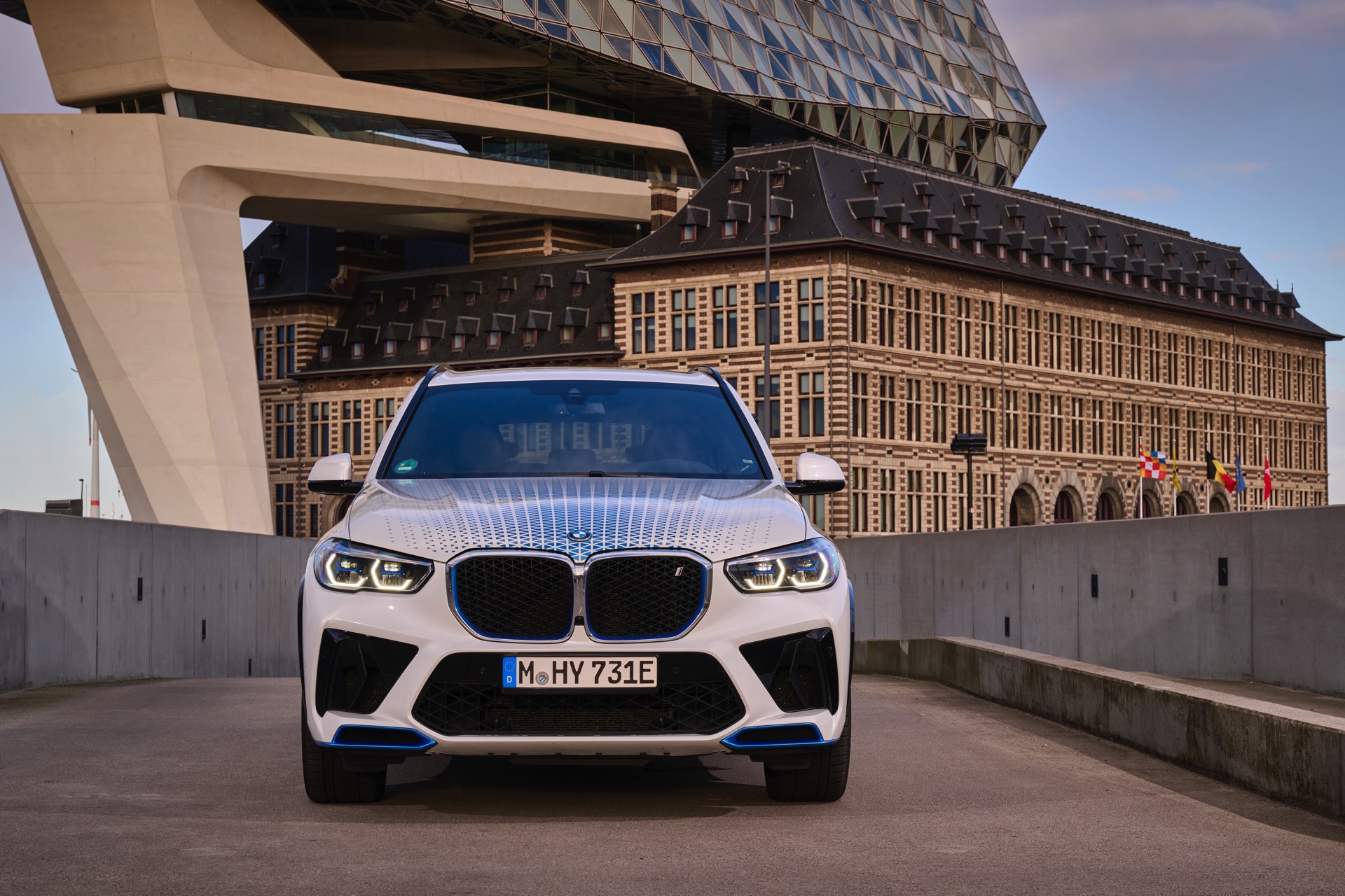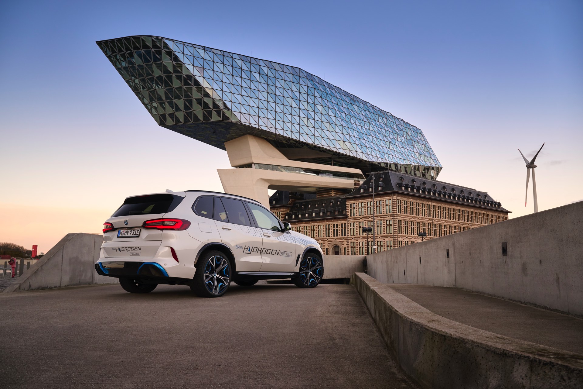 Alle Exemplare der BMW iX5 Kleinserie werden im Pilotwerk des Münchner Forschungs- und Innovationszentrum FIZ montiert. Dass hierbei die Technik und nicht das Marketing im Mittelpunkt stehen, zeigt schon der Verzicht auf die optischen Maßnahmen des BMW X5 Facelift (G05 LCI). Aktuelle Fotos zeigen Teile der neuen Wasserstoff-Flotte bei der praxisnahen Alltags-Erprobung in Antwerpen: