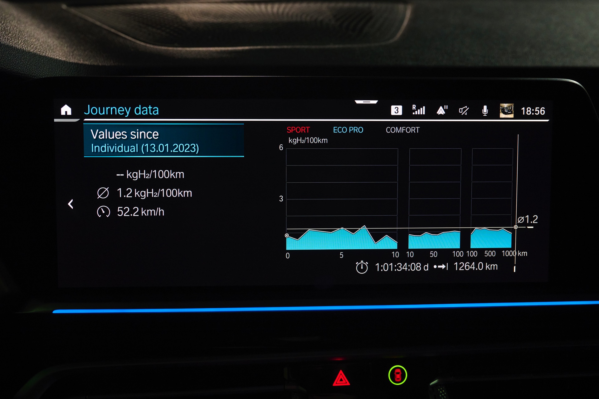 Dank seiner 401 PS beschleunigt der iX5 in unter 6 Sekunden von 0 auf 100 und erreicht eine Höchstgeschwindigkeit von über 180 km/h. Da die zwei 700-bar-Tanks aus Carbon jeweils drei Kilogramm Wasserstoff fassen, ergibt sich in Verbindung mit dem Normverbrauch von 1,19 Kilogramm je 100 Kilometer eine WLTP-Reichweite von 504 Kilometern.