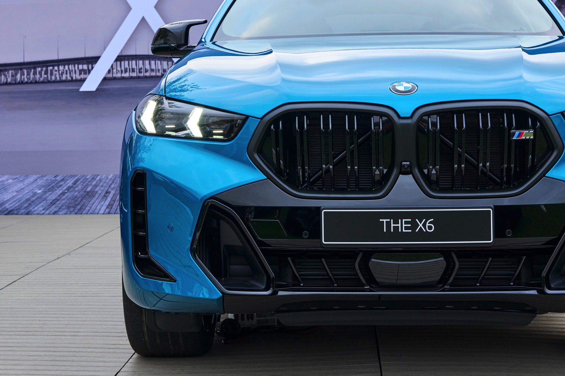 Zum neuen Look tragen auch die streng geometrischen Formen der Frontschürze bei, wobei der untere Lufteinlass durch eine schwarz lackierte Fläche optisch mit den Nieren verbunden wird. Wie schon auf den ersten Fotos steht auch an der amerikanischen Ostküste das M Performance Modell im Fokus: Der neue BMW X6 M60i trägt nicht nur einen neuen Schriftzug am Heck, er kommt auch stets mit mattschwarzer Nieren-Einfassung. Die M-Doppelstreben und das M-Badge sind zwar klare Hinweise auf die M-Gene, der noch ein gutes Stück höher positionierte X6 M Competition (F96 LCI) kann sich dank einer ebenfalls neuen Niere mit horizontalen Streben aber dennoch klar vom M60i abgrenzen.