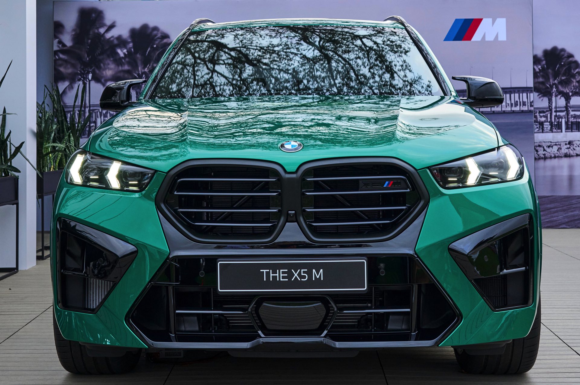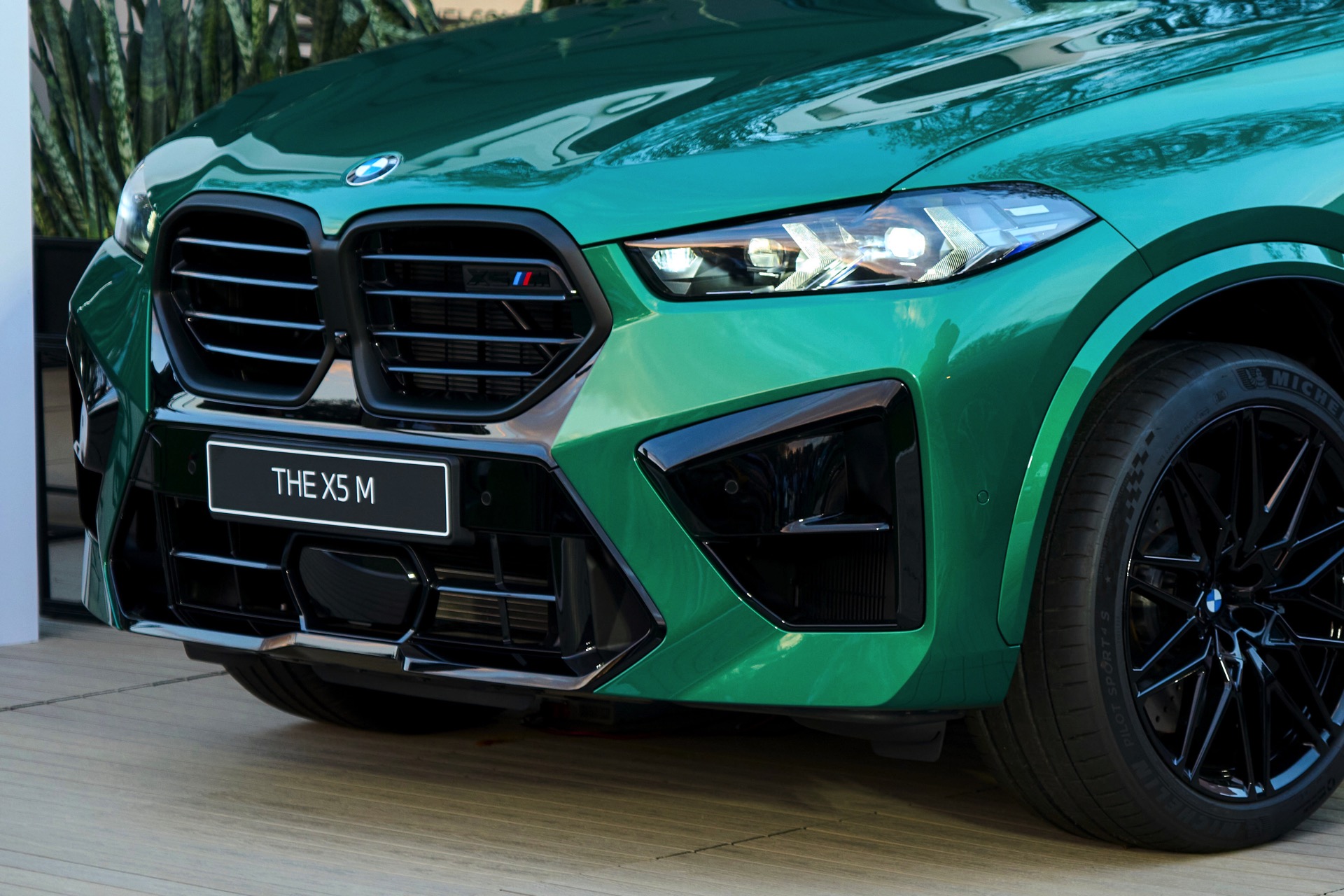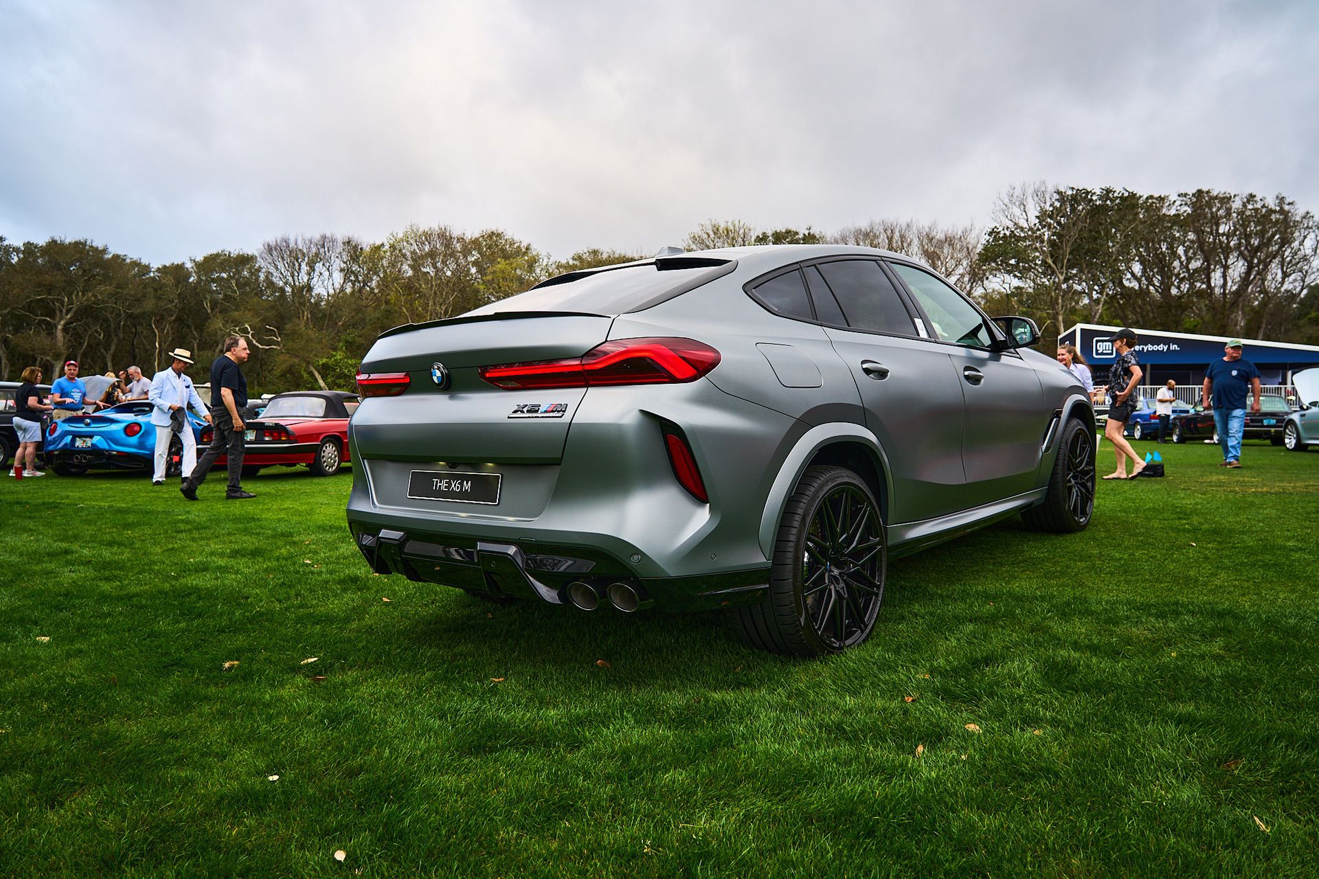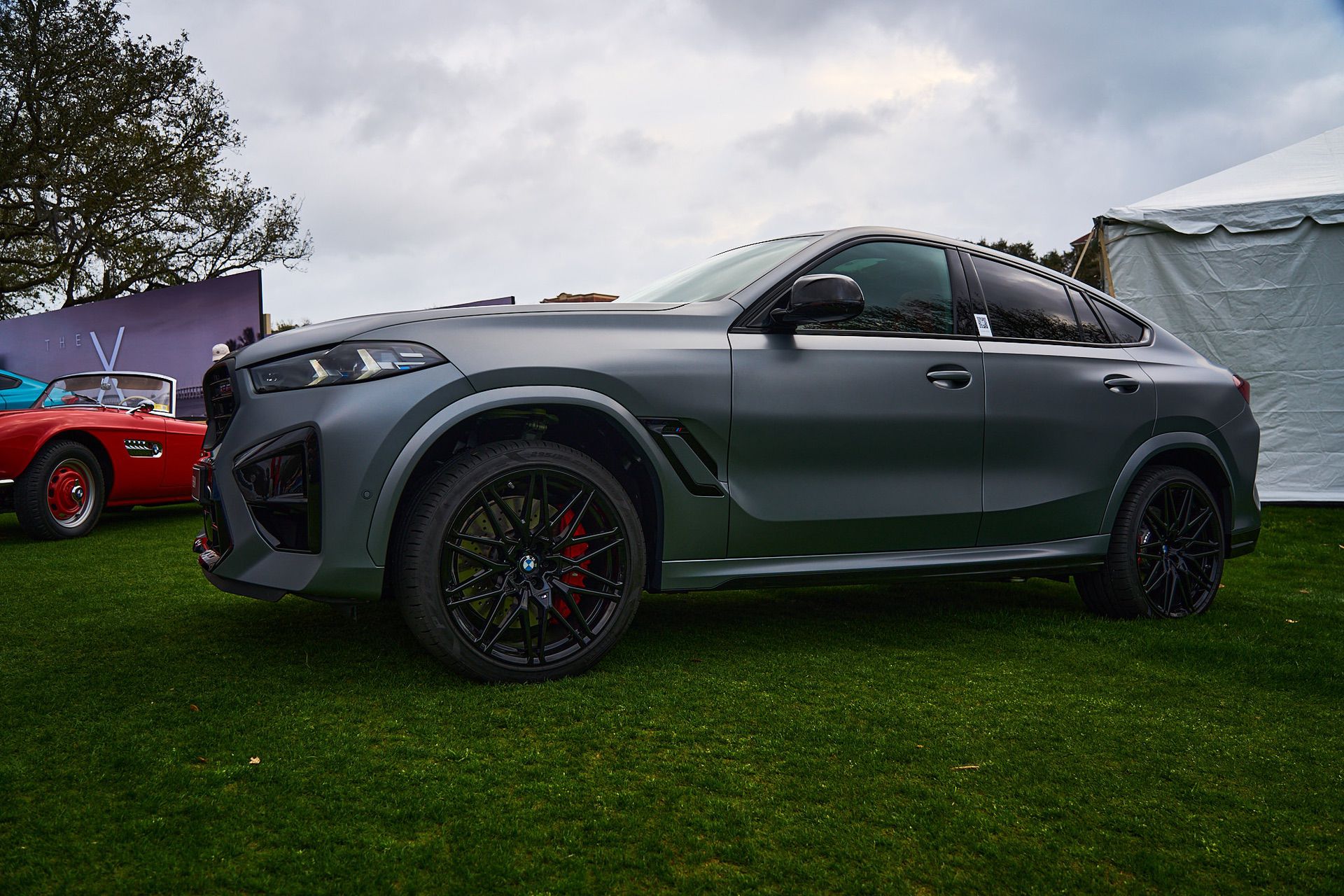 Die aktuellen Live-Fotos von BMW USA und BMWblog.com zeigen die mächtigen Front-Partien aus nächster Nähe und lassen keinen Zweifel daran aufkommen, wie viel Überholprestige von ihnen ausgeht. Gerade in Verbindung mit den stattlichen Abmessungen der Edel-SUV ergibt sich ein brachialer Look, der nicht nur im Rückspiegel Eindruck macht. Wie schon auf den ersten Fotos war der BMW X5 M auch beim Amelia Concours in Isle of Man Grün lackiert, während der X6 M in Frozen Pure Grey gezeigt wurde. "