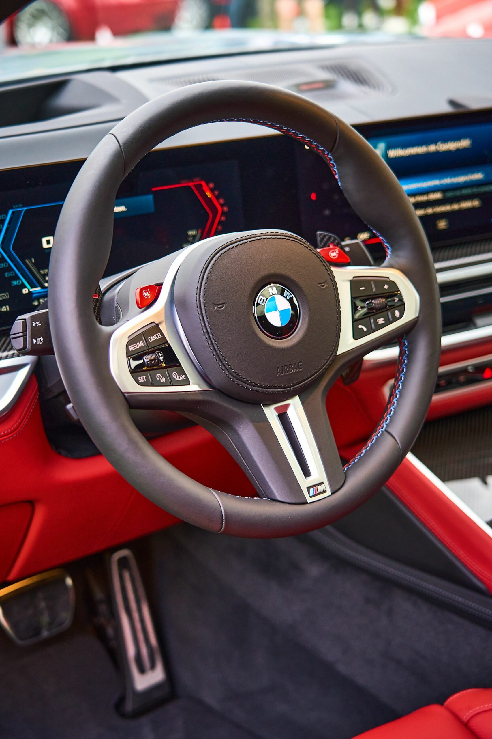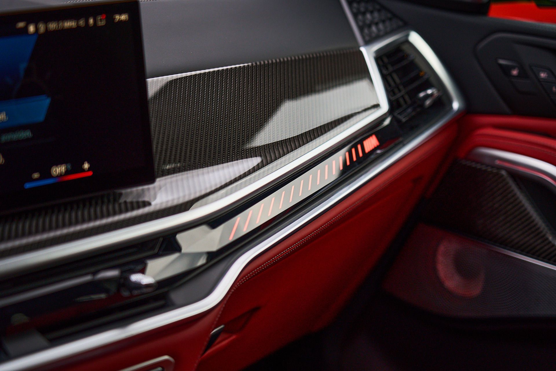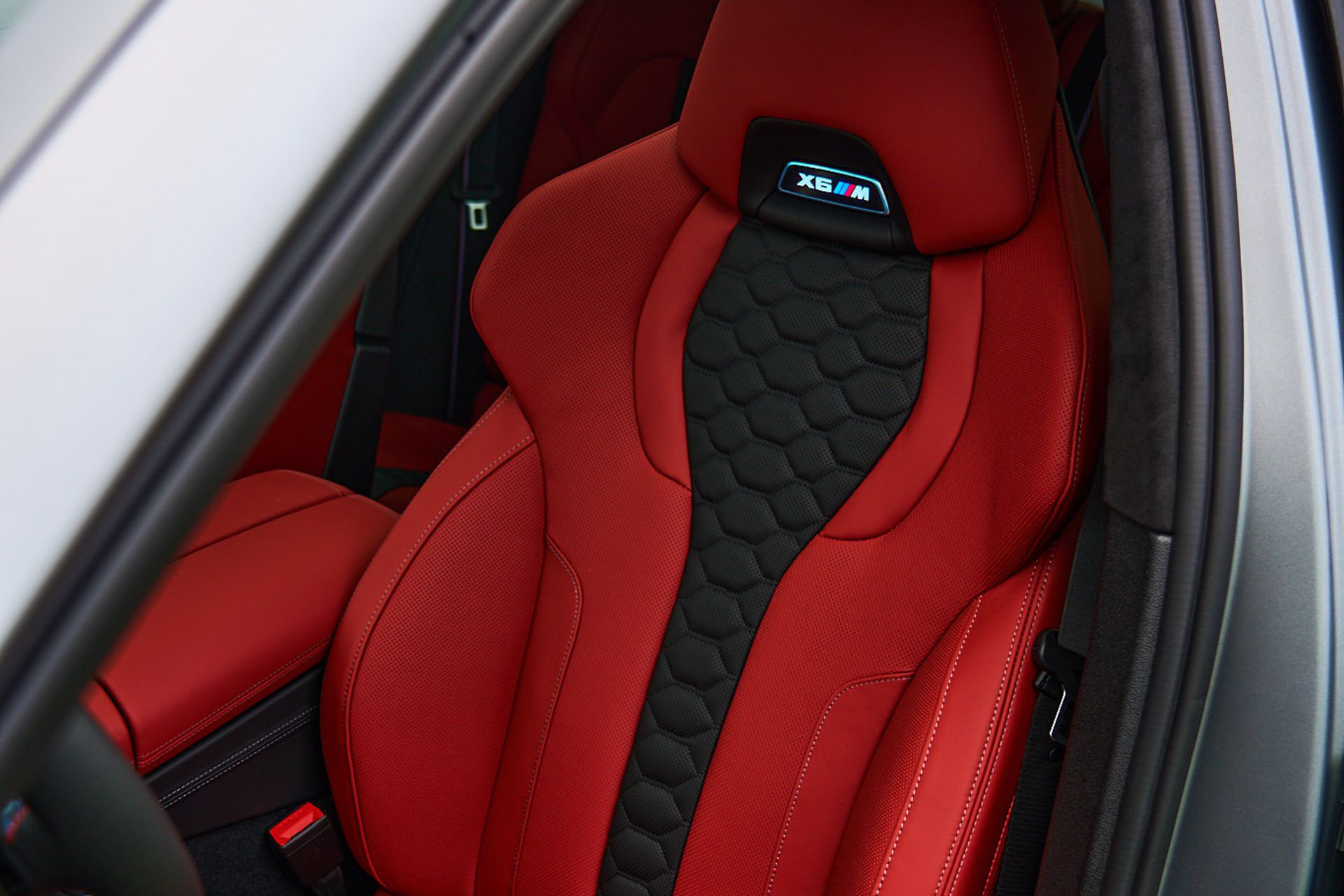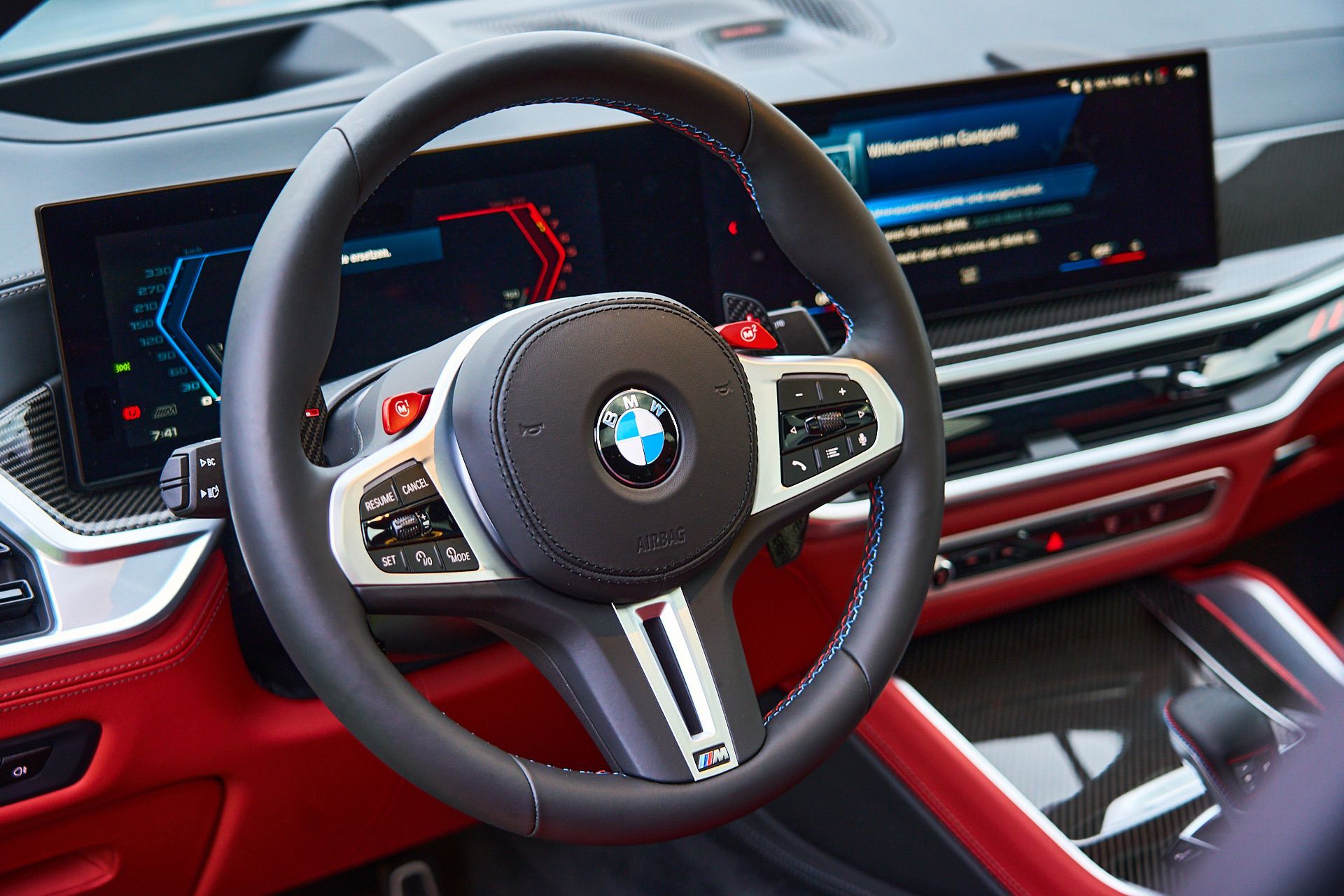 Im Innenraum tragen alle X5 und X6 ab der Modellpflege ein großes Curved Display, auf dem iDrive 8 zu einem noch moderneren Look beiträgt. Wer mutig ist und das Interieur wie auf den Live-Fotos vom X6 M in Sakhir Orange bestellt, wird mit einem extrem auffälligen Cockpit belohnt.