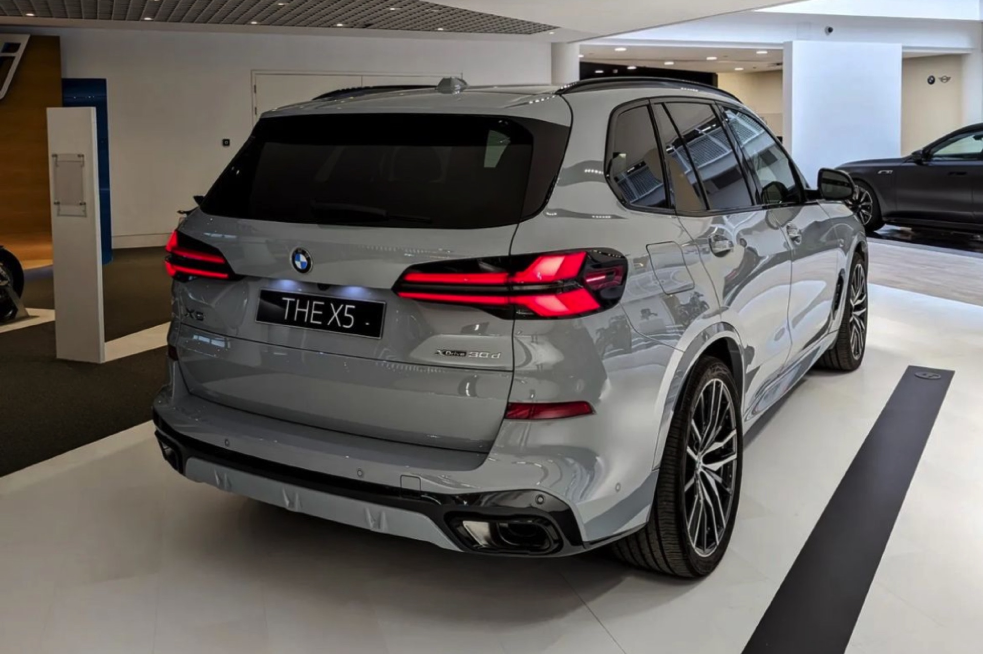 Wie gut der neue BMW X5 xDrive30d 2023 aussehen kann, zeigen uns ein paar erste Fotos und ein kurzes Video von Tim King. In der Zentrale von BMW UK steht der Diesel-X5 mit M Sport-Paket und Lackierung in trendigem Brooklyn Grey, außerdem trägt er die Shadow Line mit erweiterten Umfängen. Das Ergebnis ist ein hochmoderner Auftritt in Grau und Schwarz, wobei vor allem die schwarzen Nieren und die zum Teil schwarz lackierte Frontschürze zu einem sportlichen Look beitragen. Während die Nierenstreben in glänzendem Schwarz ausgeführt sind, setzt das matte Finish der schwarzen Nieren-Einfassung einen weiteren interessanten Akzent.