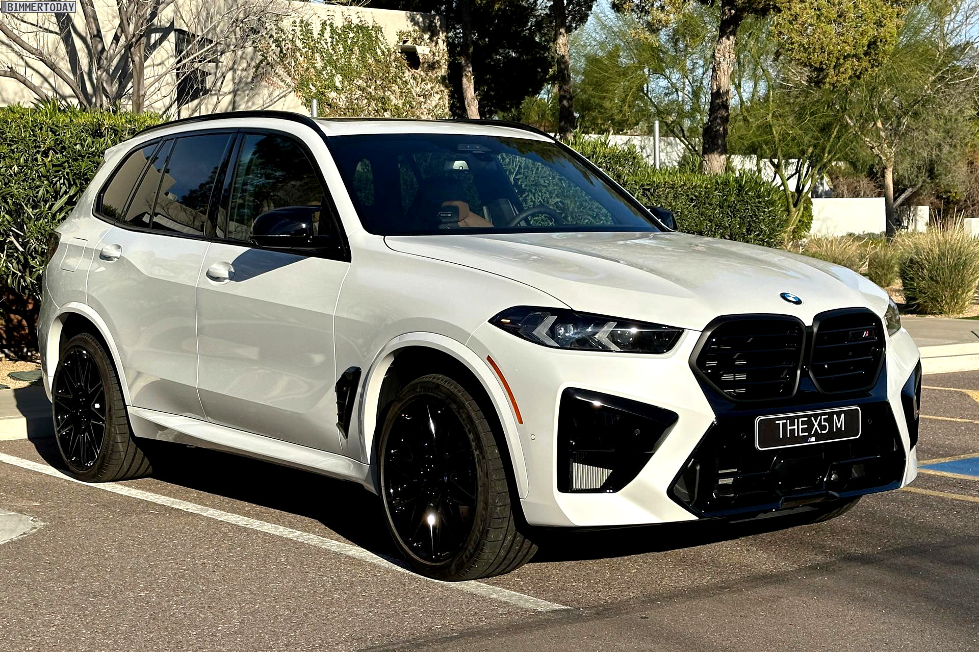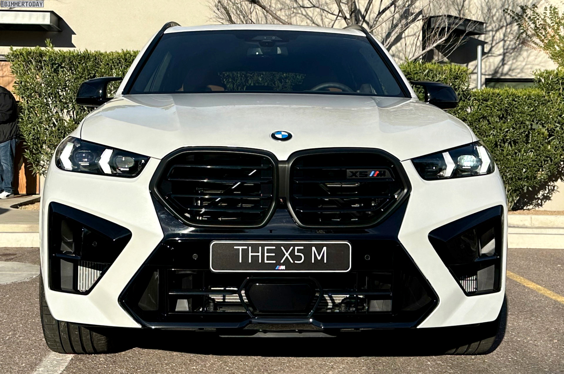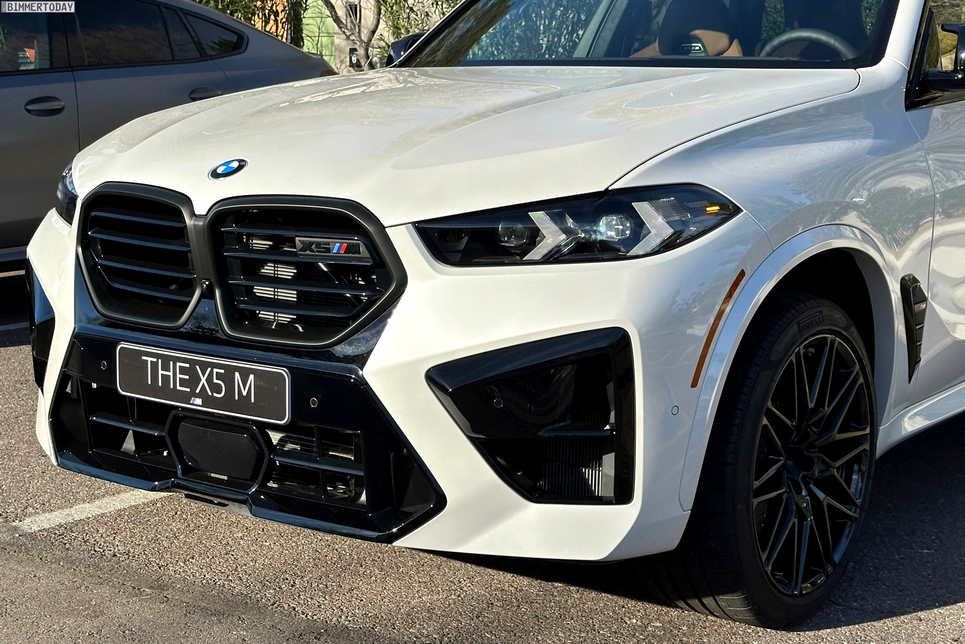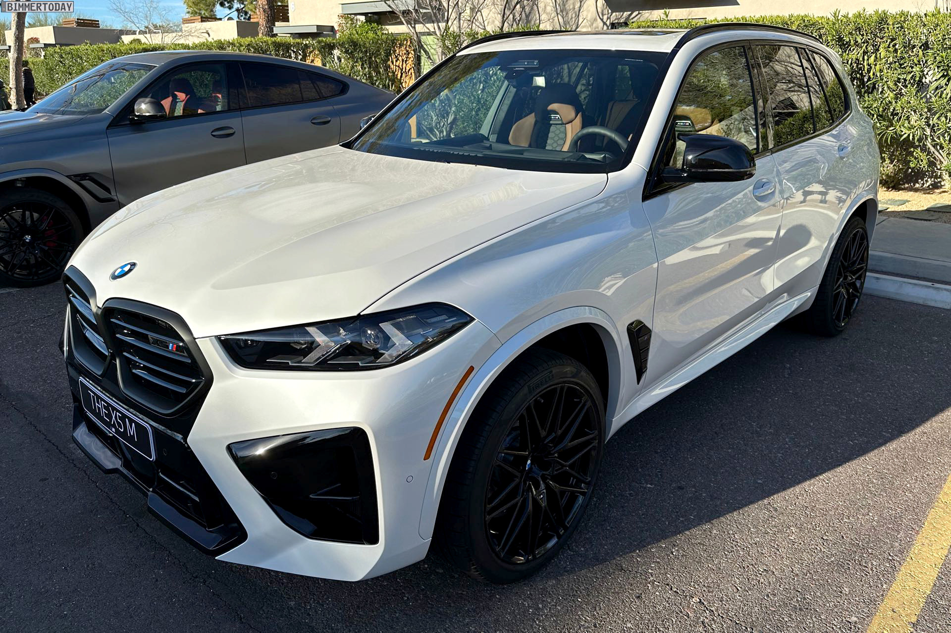 Mit maximalem Kontrast zwischen schwarzen Details und Hauptfarbe glänzt das BMW X5 M Facelift (F95 LCI) in Mineralweiß Metallic. Das Power-SUV trägt seit der Modellpflege eine völlig neue Front, die es fast wie ein ganz neues Fahrzeug wirken lässt: Scheinwerfer, Nieren und Frontschürze wurden grundlegend überarbeitet und lassen den X5 M noch brachialer auftreten. Unsere Fotos zeigen den Top-X5 mit weißer Lackierung und den serienmäßig schwarzen Details, wobei die neue M-Niere mit ihren horizontalen Streben und der schwarz lackierte Bereich zwischen den Nieren und dem zentralen Lufteinlass darunter den wichtigsten Beitrag zum neuen Look leisten.