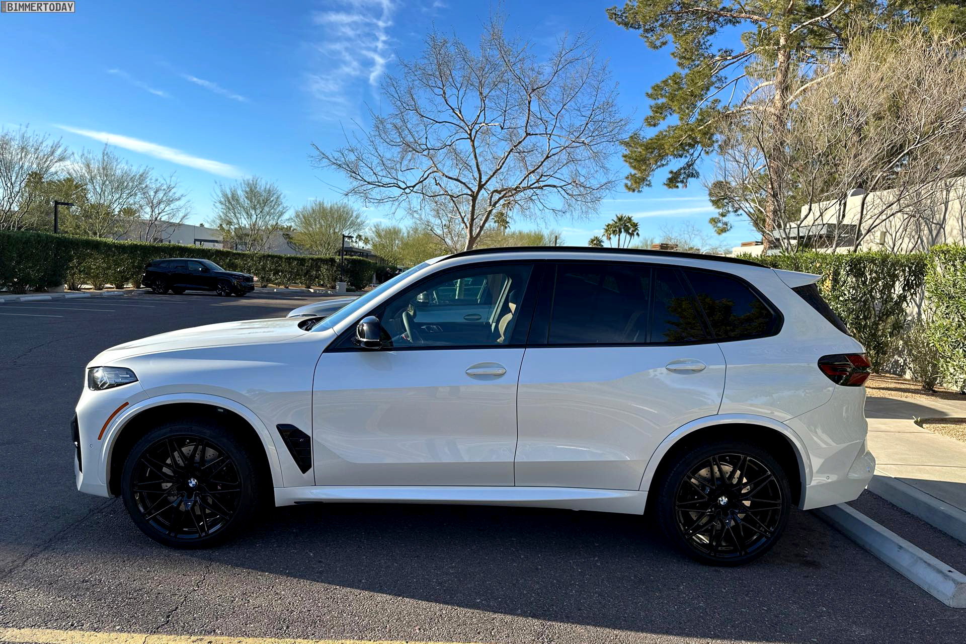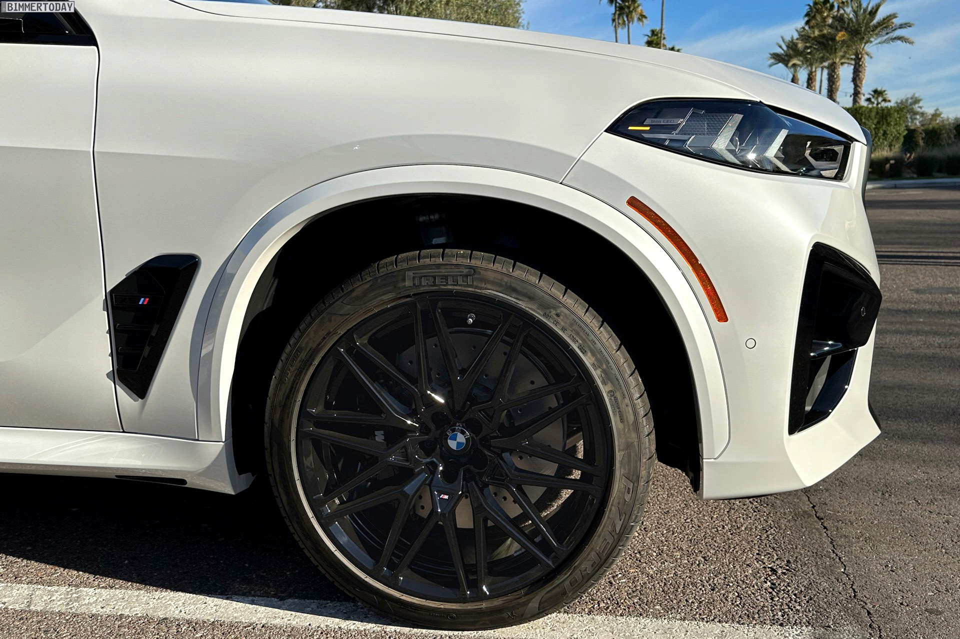 Wie die Fotos aus Arizona nochmals deutlich zeigen, trägt die M-Niere bei genauerem Hinsehen zwei unterschiedliche Finishs: Während die seit dem Facelift horizontal ausgerichteten Streben in Hochglanz-Schwarz lackiert sind, sorgt die Einfassung in Frozen Black für einen matten Akzent. Ebenfalls in Hochglanz-Schwarz lackiert sind die Blenden im Bereich der äußeren Lufteinlässe. Die zweite wesentliche Neuerung sind die Frontscheinwerfer, die nicht nur ein neues Tagfahrlicht-Design erhalten haben, sondern auch sichtbar flacher als bisher ausgeführt sind.