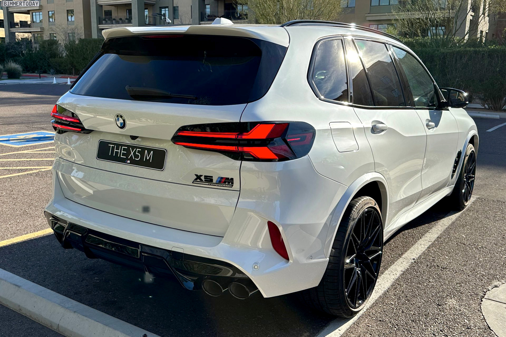 Deutlich moderner präsentiert sich auch das Heck, wobei der X5 M in erster Linie von den neuen Rückleuchten des BMW X5 Facelift (G05 LCI) profitiert: Da die wesentlichen Leuchtelemente nun innen und nicht länger am oberen und unteren Rand der Heckleuchten platziert sind, ergibt sich gerade bei Nacht oder in Verbindung mit dunklen Außenfarben der Hightech-Eindruck von sehr schmalen Lichtquellen. Wie bisher sind die Leuchten sehr dreidimensional ausgeführt, sodass sich auch aus der Nähe ein cooler Look ergibt.