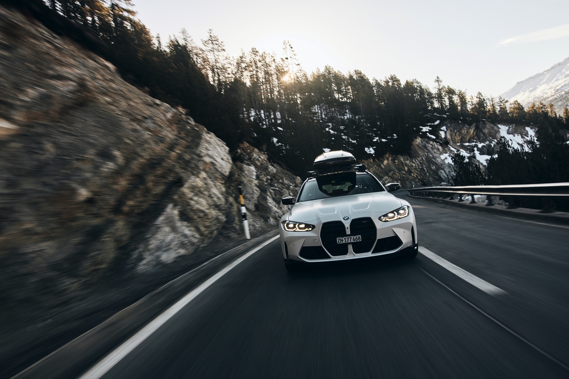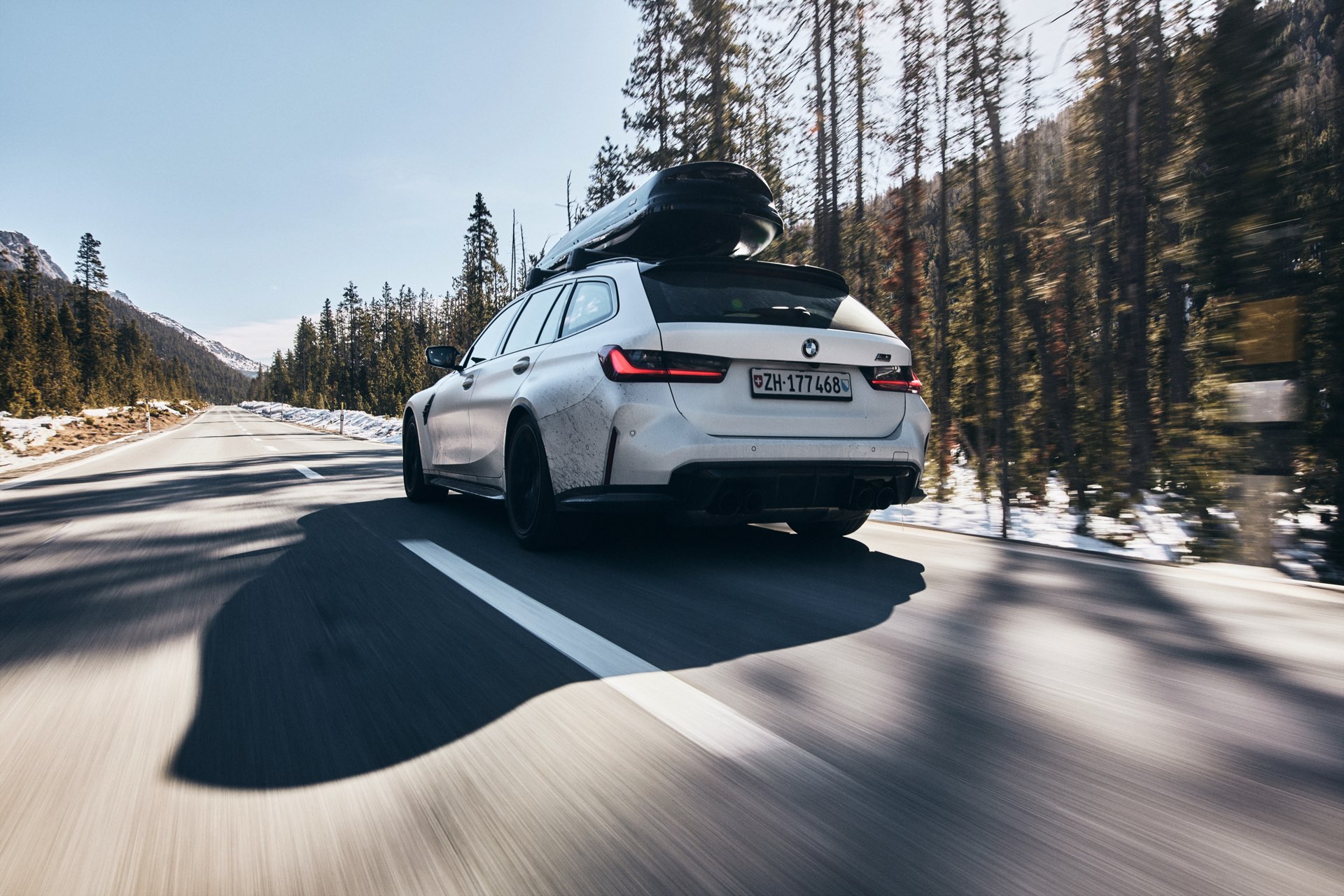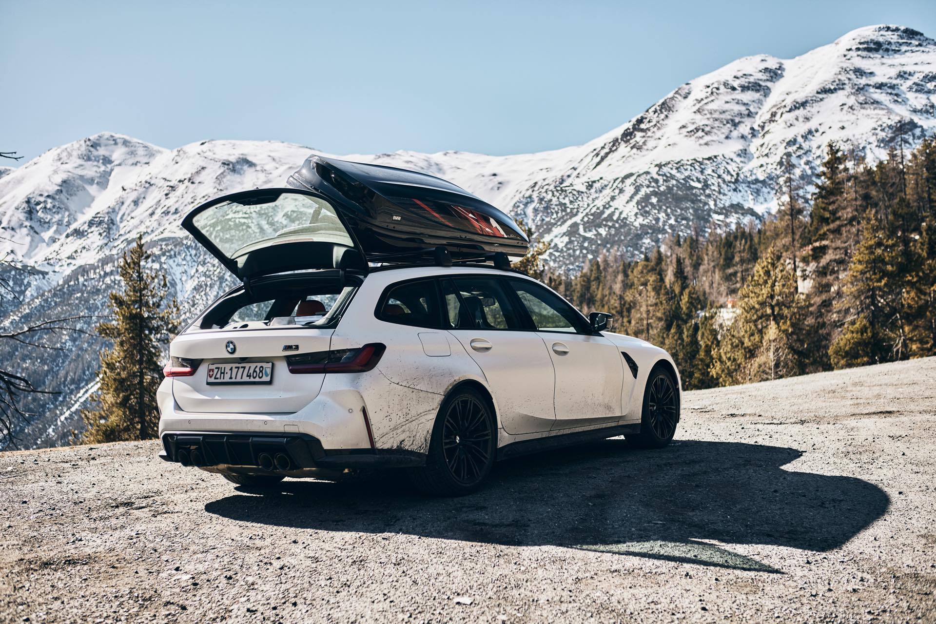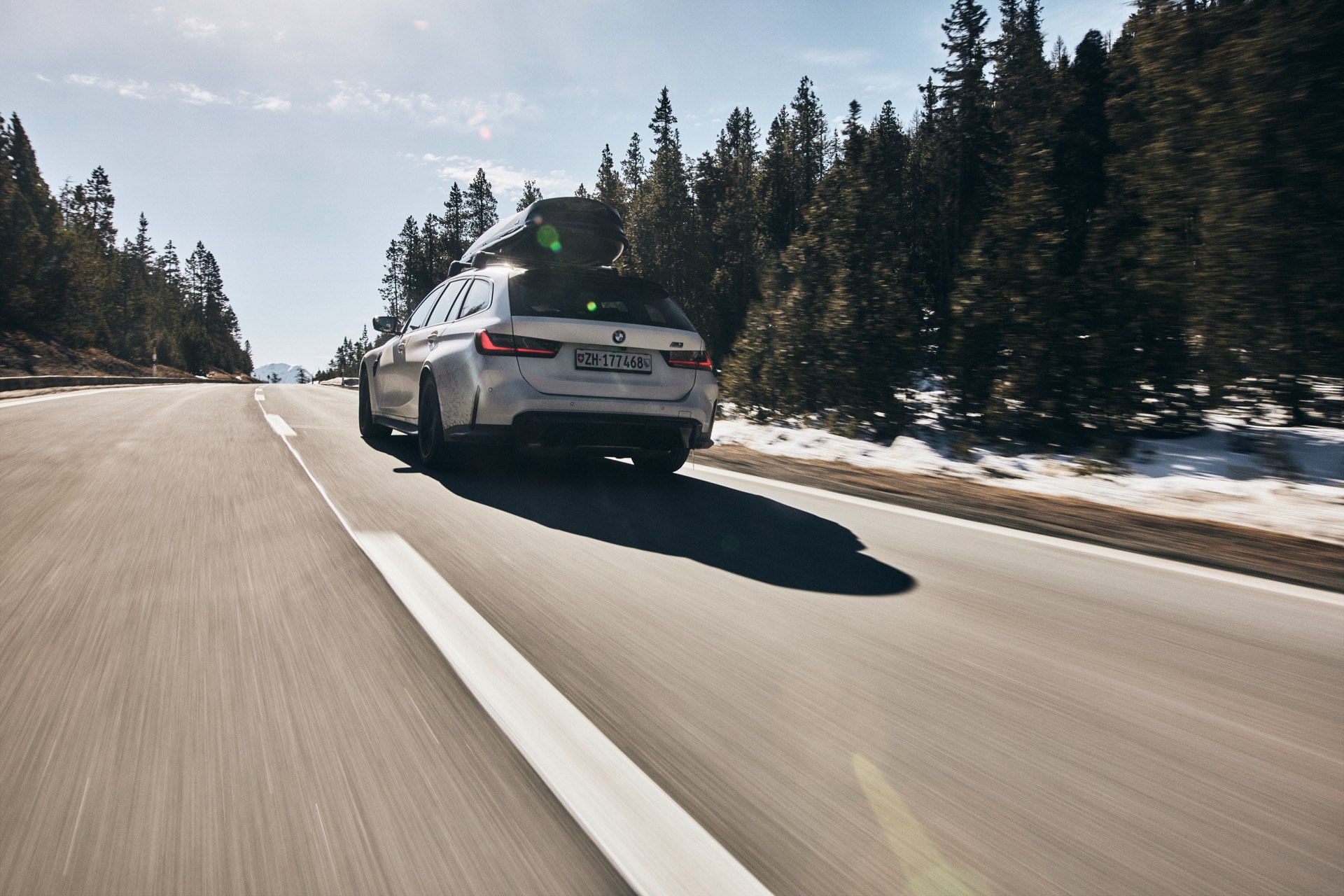 Für Transport-Aufgaben der besonders eiligen Art eignet sich kaum ein Fahrzeug so gut wie der schnellste Kombi auf der Nürburgring Nordschleife, aber auch der Kofferraum eines BMW M3 Touring (G81) kommt bei einer Fahrt in den Winterurlaub schnell an seine Grenzen. Etwas Erleichterung beim Gepäckstück-Tetris kann eine Dachbox schaffen, wie eine neue Foto-Serie aus der Schweiz zeigt: Wer den Laderaum nach oben erweitert, schafft Platz für eine komplette Wintersport-Ausrüstung für mehrere Personen – und kann dennoch weiterhin ein extrem hohes Fahrdynamik-Niveau genießen.