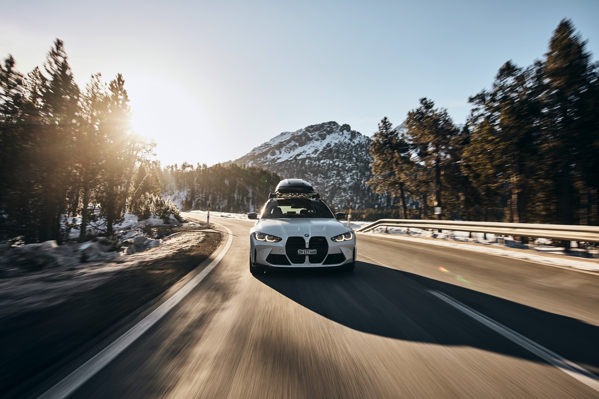 Dass der 510 PS starke Power-Kombi dank Allradantrieb M xDrive auch auf komplett verschneiten Straßen eine extrem gute Figur abgibt, versteht sich von selbst. Neben reiner Traktion kommt dabei auch die Freude am Fahren nicht zu kurz, denn gerade mit entsprechend sportlichen Einstellungen wird die Kraftverteilung extrem hecklastig – auf Wunsch auch zu vollen 100 Prozent im 2WD-Modus – und macht kontrollierte Drifts für geübte Fahrer zum Kinderspiel. Wie gut ein weißer BMW M3 Touring bei Fahrmanövern dieser Art aussehen kann, zeigen die Fotos aus der verschneiten Schweiz eindrucksvoll.