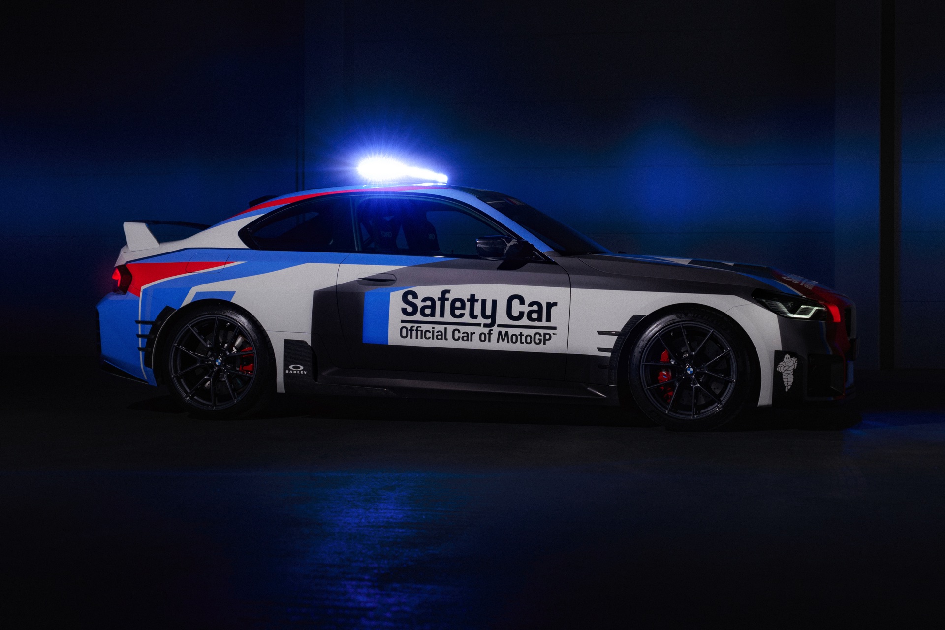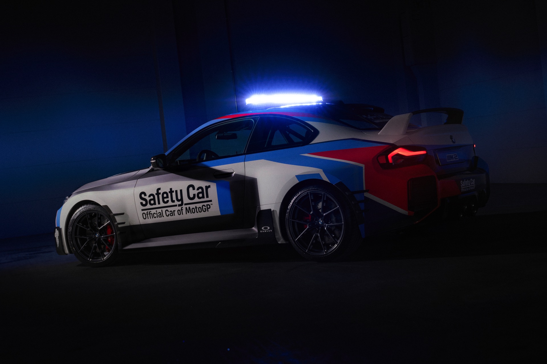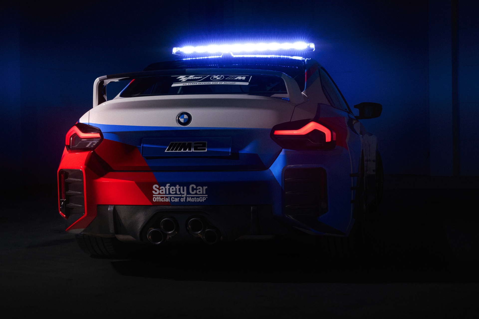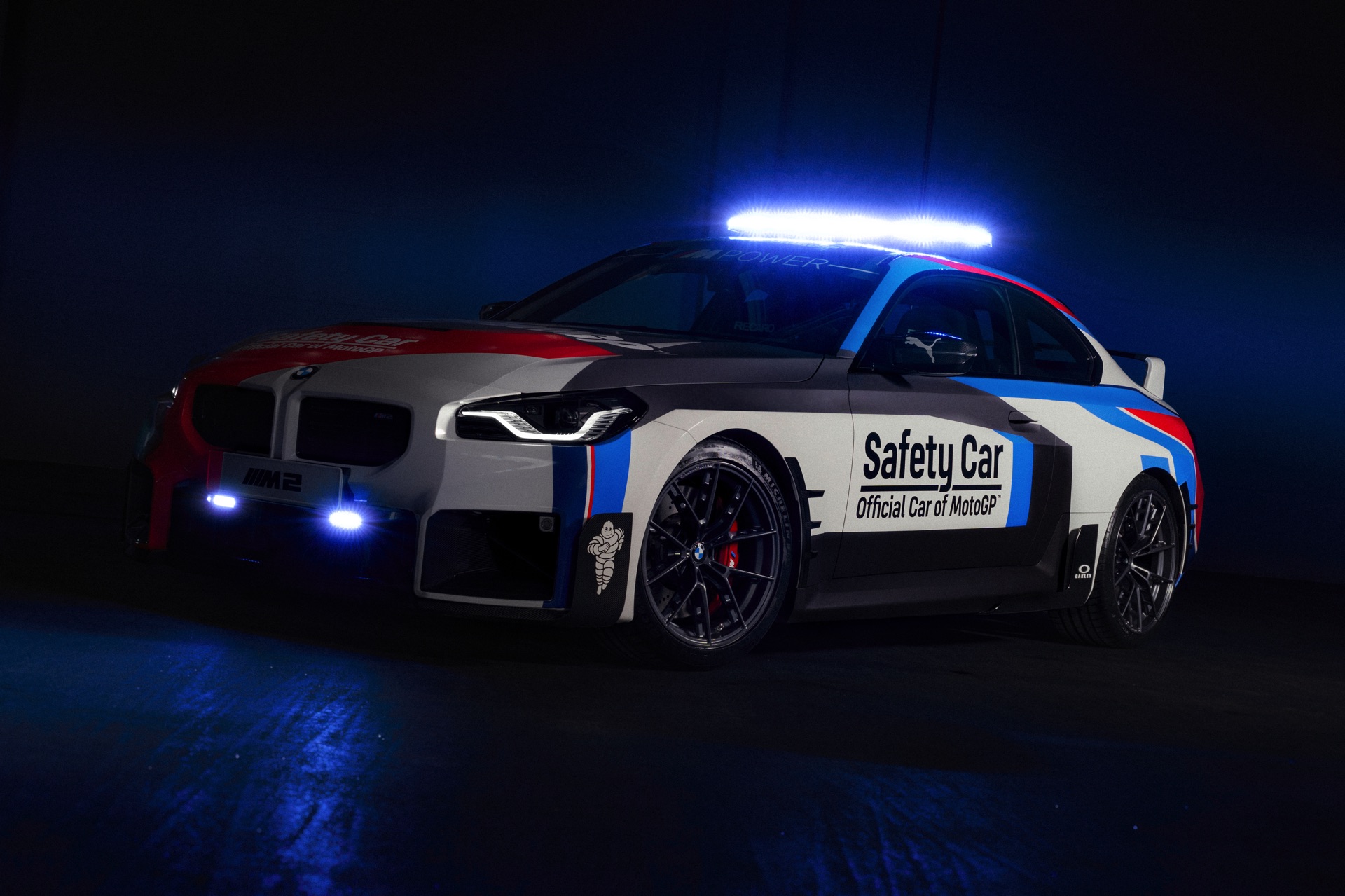 Speziell für den Einsatz als Safety Car tritt der neue BMW M2 (G87) mit Überrollbügel, Schalensitzen von Recaro samt 6-Punkt-Rennsportgurten und Feuerlöscher an, weitere Modifikationen stammen aus dem Tuning-Programm von BMW M Performance. Die kontrovers diskutierte Abgasanlage mit ihren trapezförmig angeordneten Endrohren samt passendem Diffusor, das Fahrwerk, die Carbon-Spiegelklappen und der große Heckflügel sind auch für alle M2 mit Straßenzulassung erhältlich und sollen den MotoGP-Fans in aller Welt zeigen, dass auch ein Automobil ganz besonders reizvoll sein kann. "