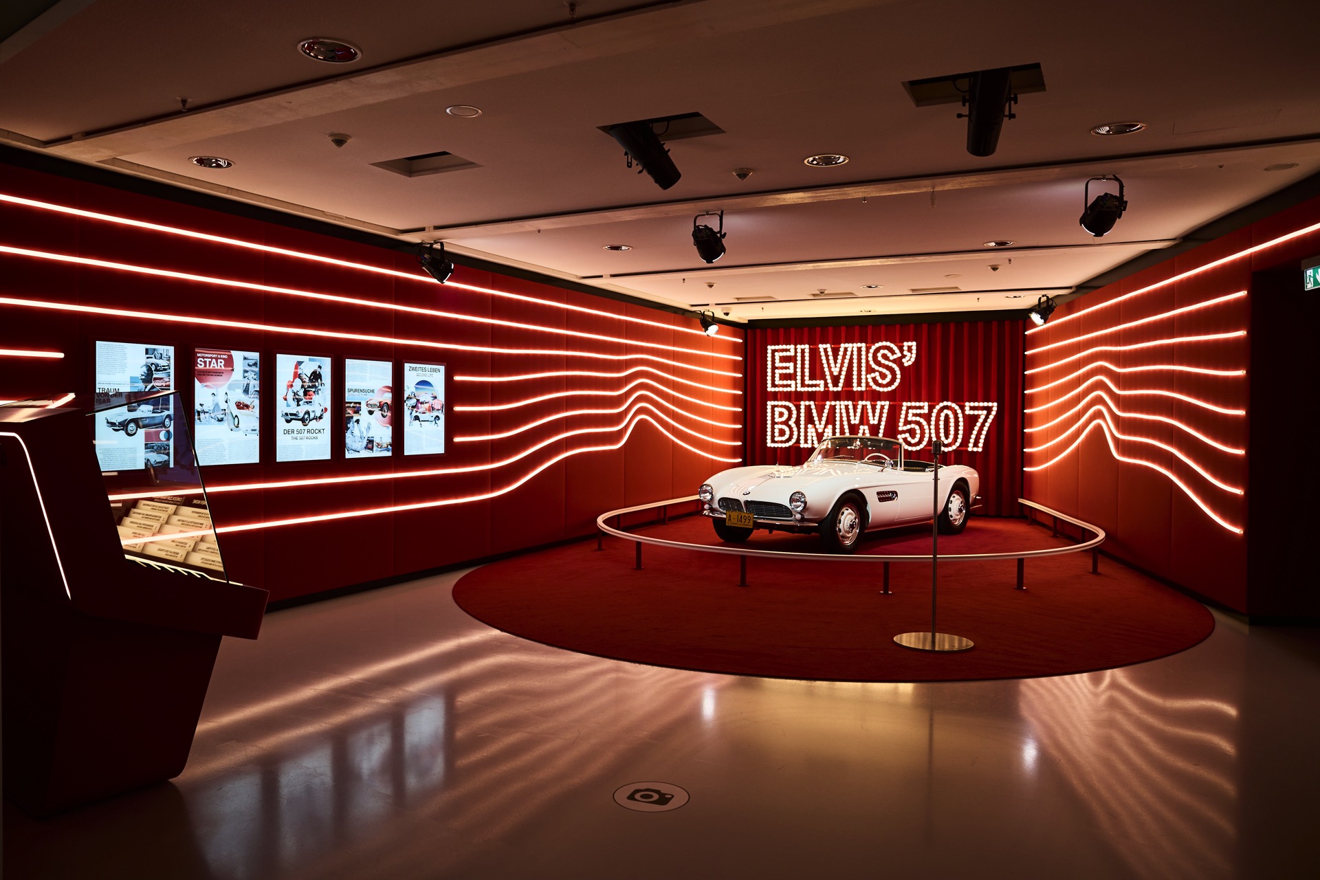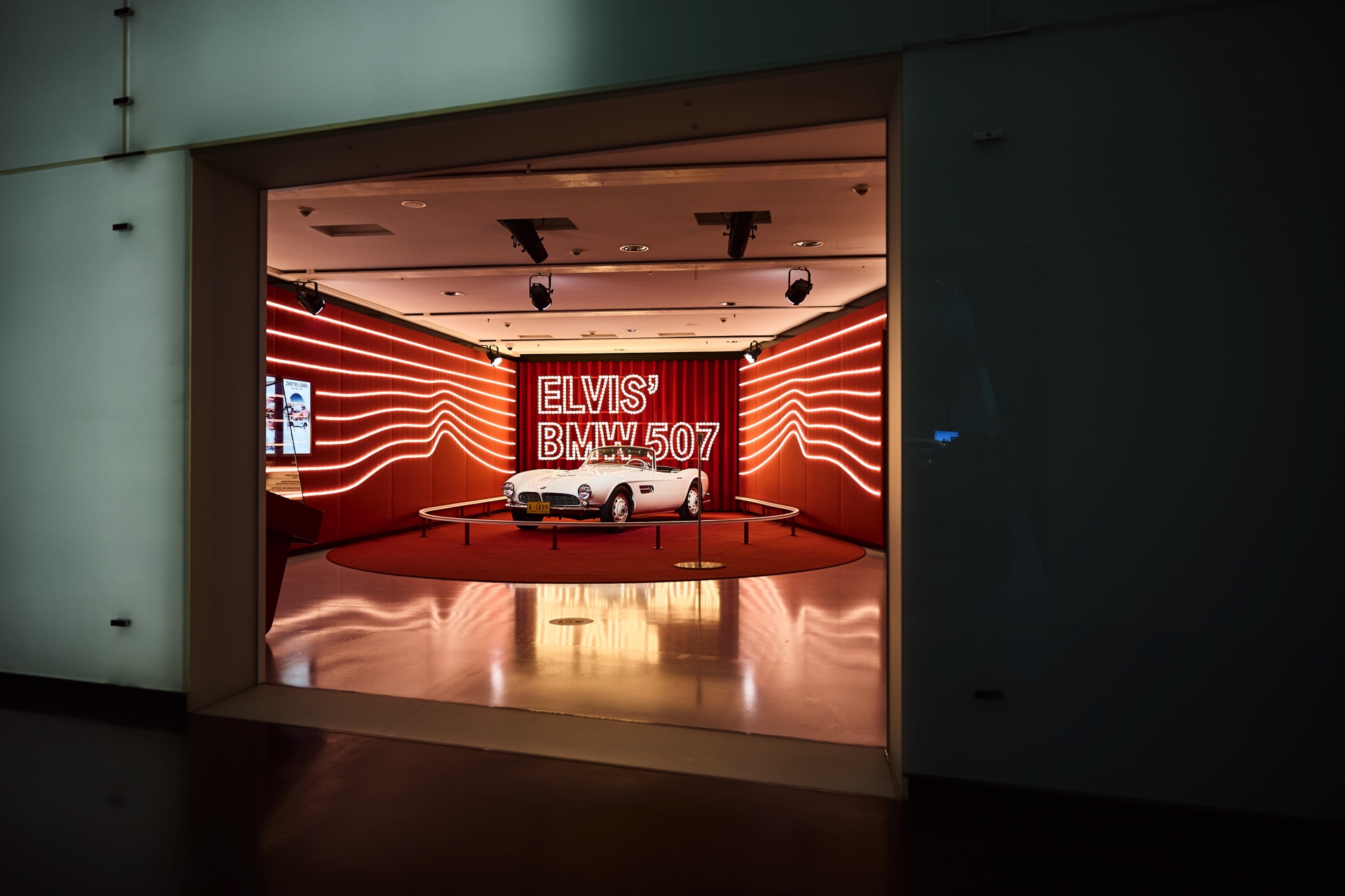 Im BMW Museum ist der von Elvis Presley im Dezember 1958 als Gebrauchtwagen erworbene BMW 507 ab sofort in einem eigenen Raum ausgestellt, der mit Jukebox und verschiedenen Erinnerungsstücken an die bewegte Geschichte des Fahrzeugs erinnert. Mit rotem Stoff an den Wänden, roten Teppichen und nostalgischen Lichtern wird der Roadster stimmungsvoll in Szene gesetzt, außerdem steht ein Retro-Mikrofon bereit und lädt zum Singen des Elvis-Hits “Return to Sender” ein.