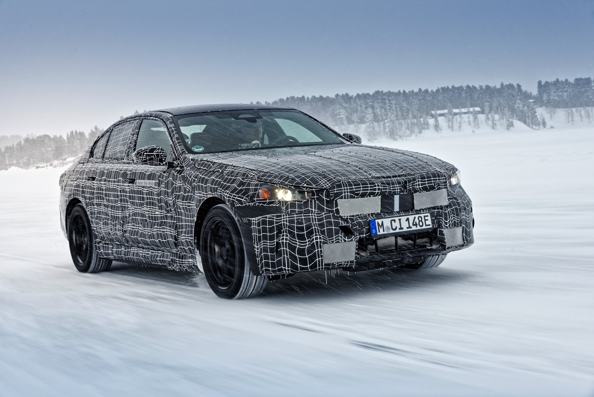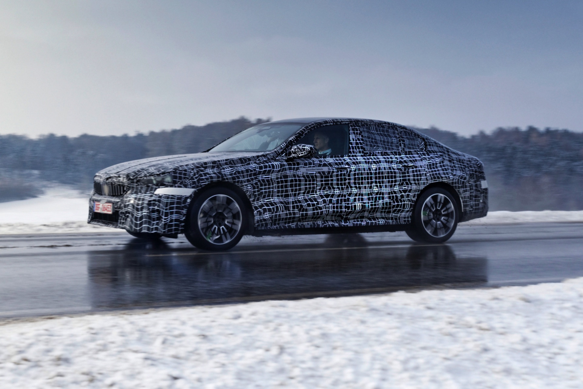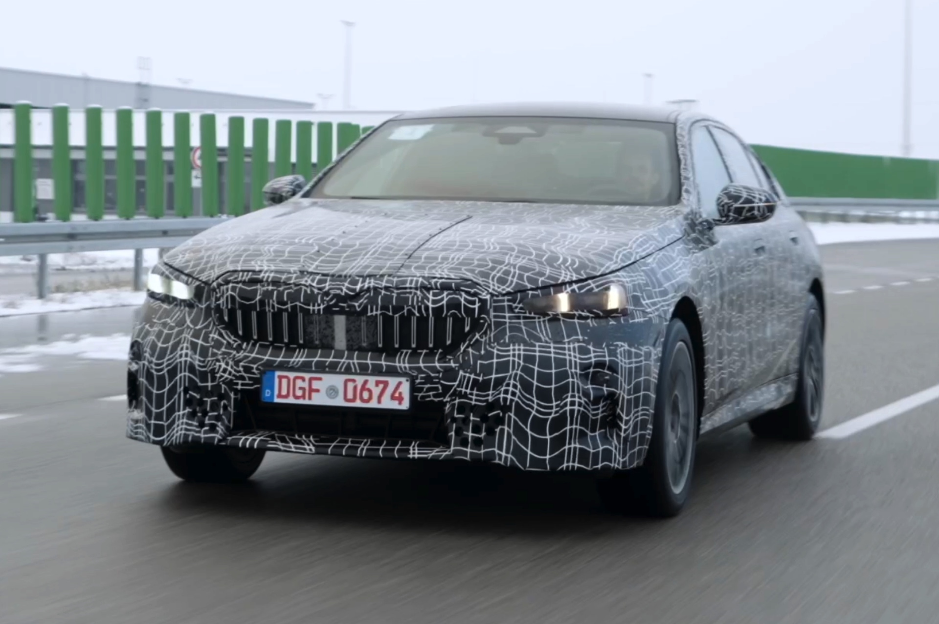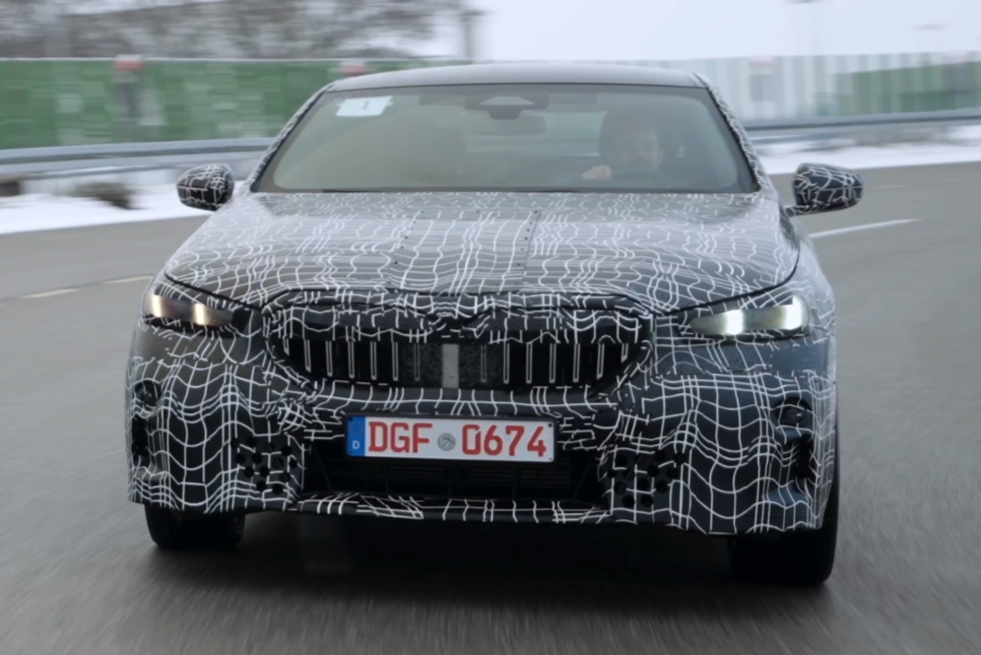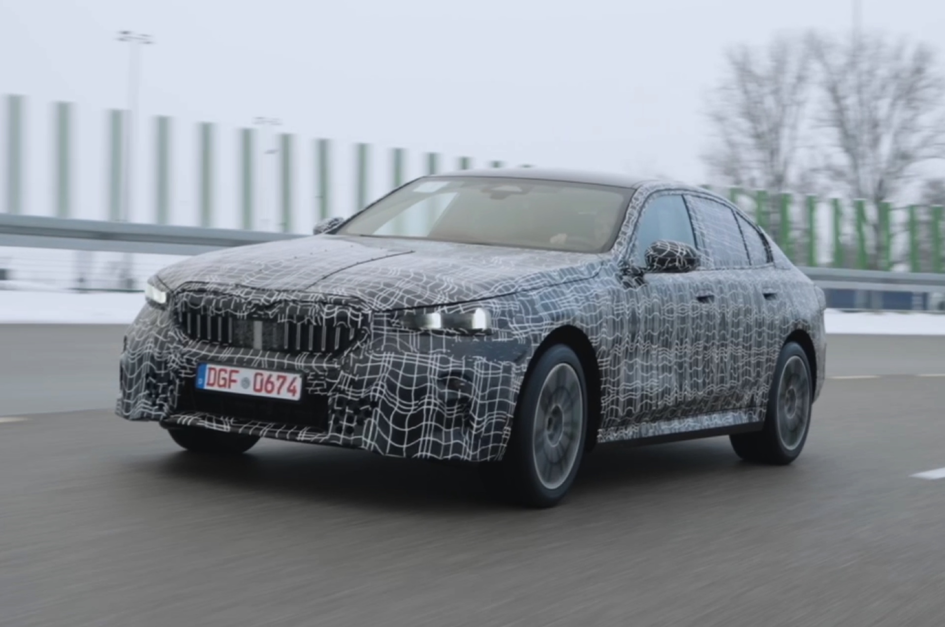 Den bisher klarsten Blick auf die Nieren des neuen BMW i5 (G60) liefert eine Serie offizieller Erlkönig-Fotos, die uns den Elektro-5er bei Winter-Testfahrten in Deutschland und Schweden zeigen. Während einige der nun veröffentlichten Aufnahmen bereits im vergangenen Jahr und mit entsprechend starker Tarnung entstanden sind, sind andere Fotos deutlich jüngeren Datums und mit zum Teil bereits enthüllten Details: Sowohl Scheinwerfer- und Rückleuchten-Design, vor allem aber auch die Nieren samt Streben und zentralem Sensor sind bereits ziemlich klar erkennbar.