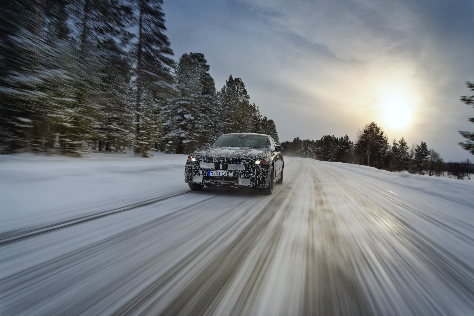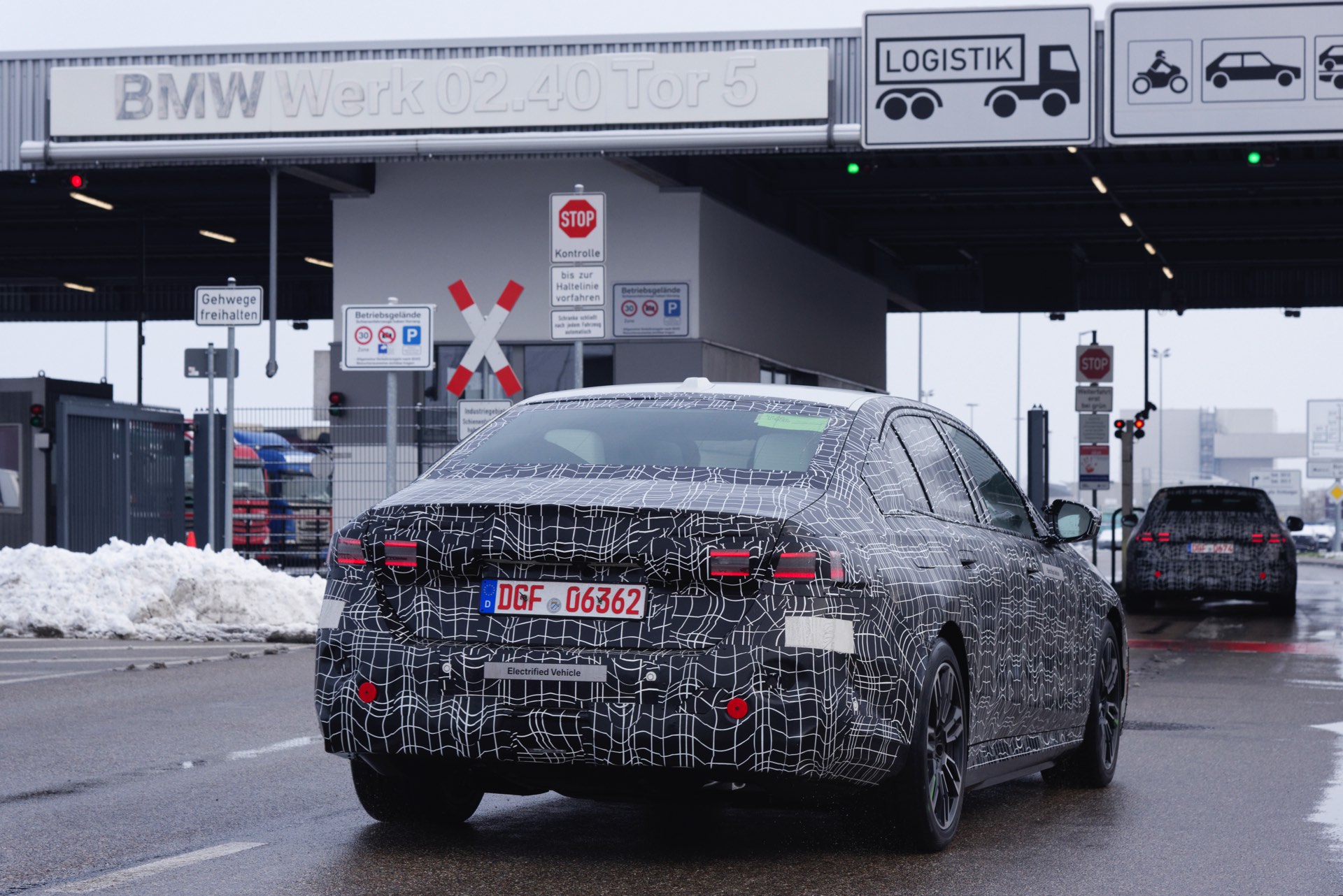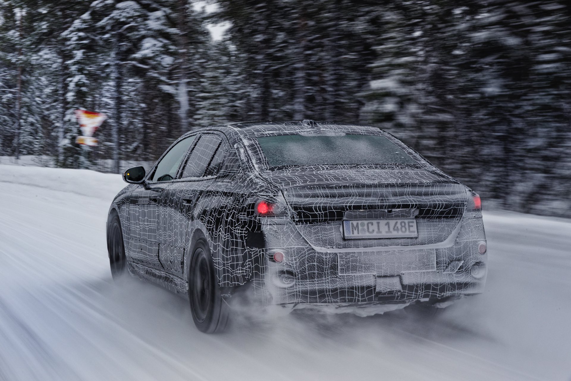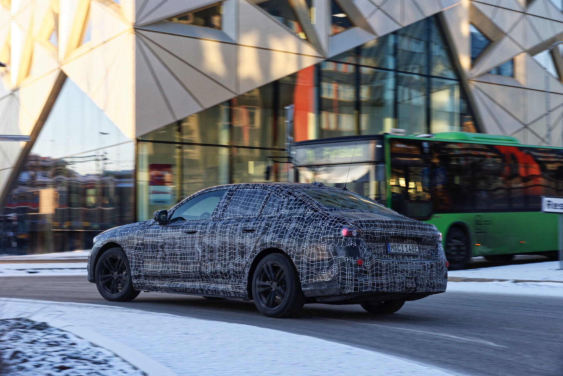 Den bisher klarsten Blick auf die Nieren des neuen BMW i5 (G60) liefert eine Serie offizieller Erlkönig-Fotos, die uns den Elektro-5er bei Winter-Testfahrten in Deutschland und Schweden zeigen. Während einige der nun veröffentlichten Aufnahmen bereits im vergangenen Jahr und mit entsprechend starker Tarnung entstanden sind, sind andere Fotos deutlich jüngeren Datums und mit zum Teil bereits enthüllten Details: Sowohl Scheinwerfer- und Rückleuchten-Design, vor allem aber auch die Nieren samt Streben und zentralem Sensor sind bereits ziemlich klar erkennbar.