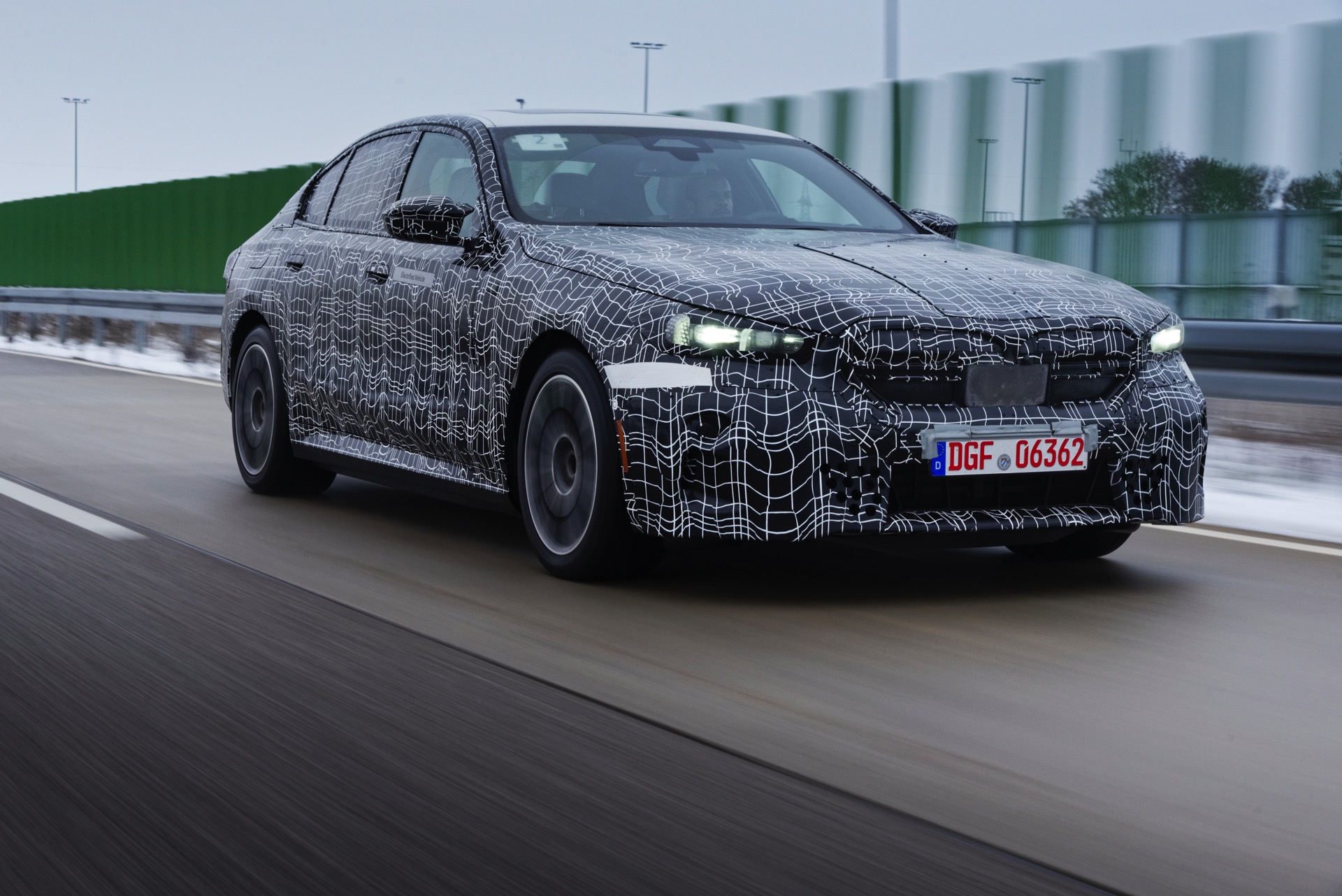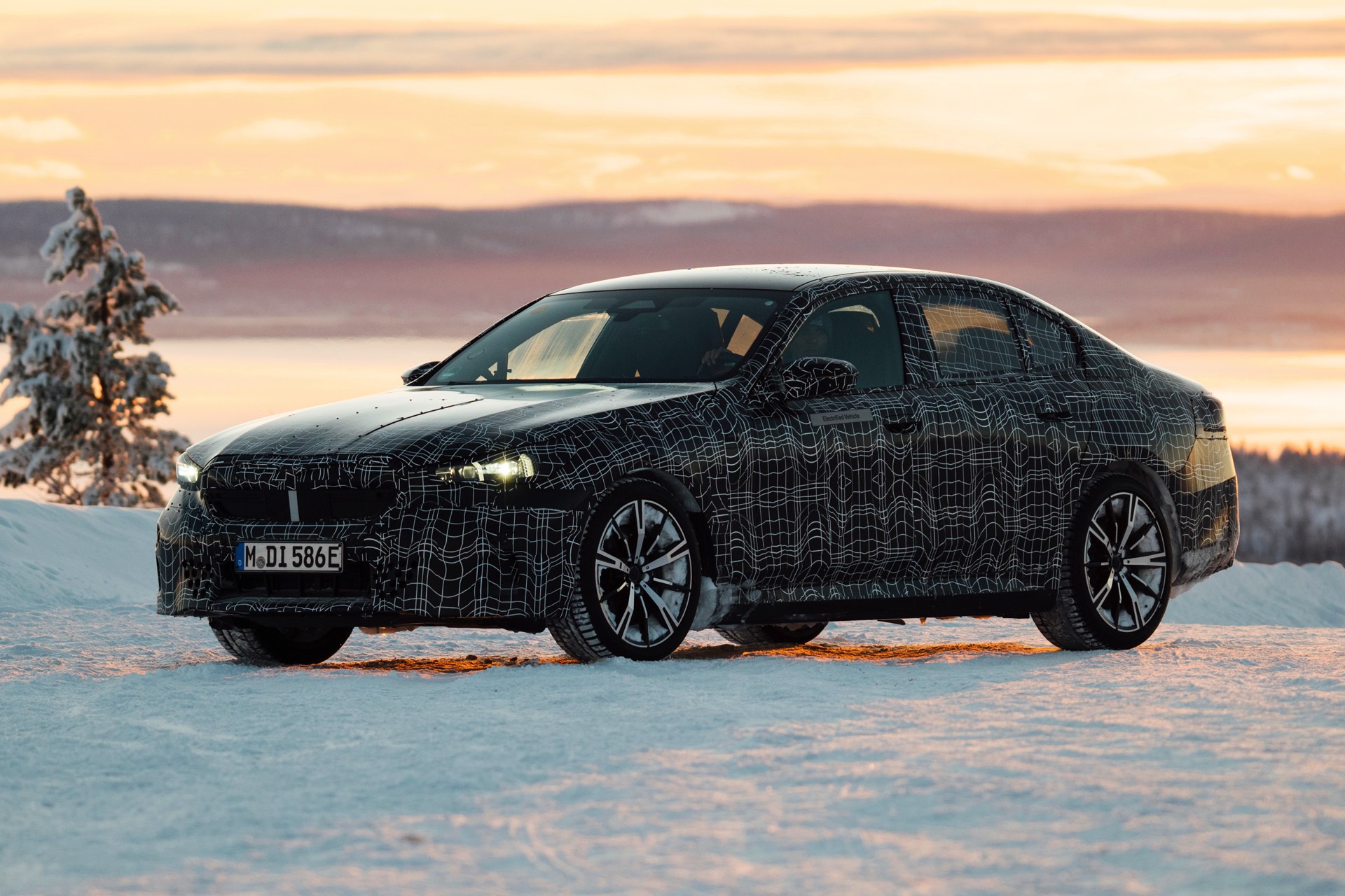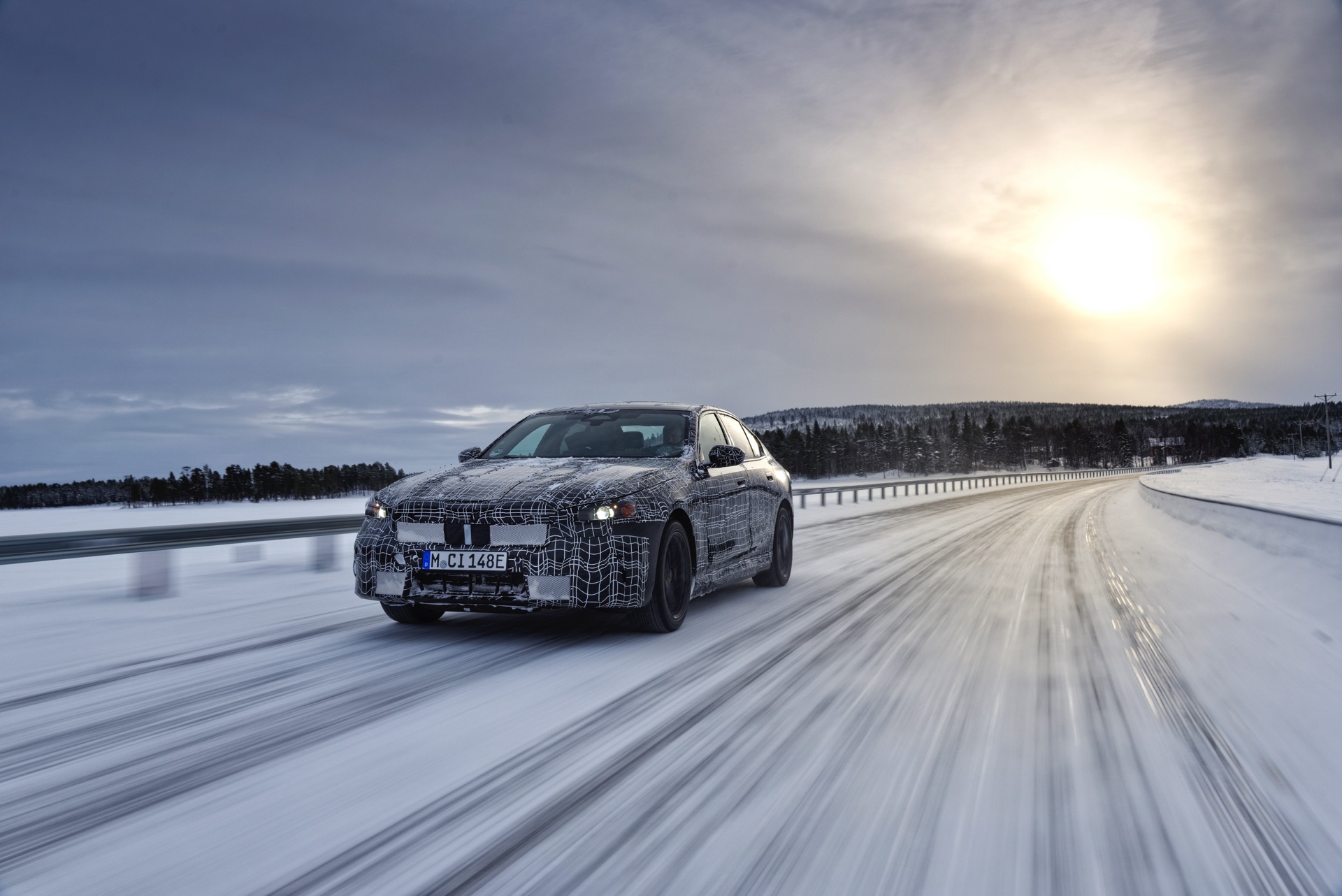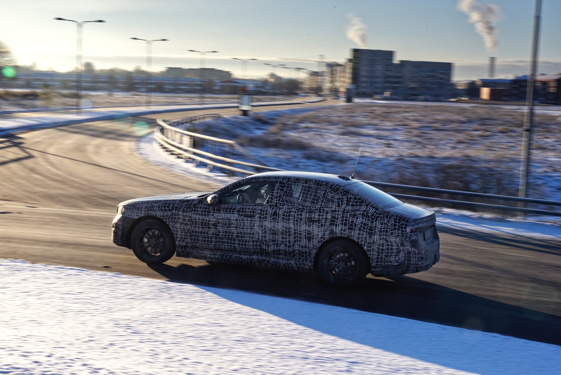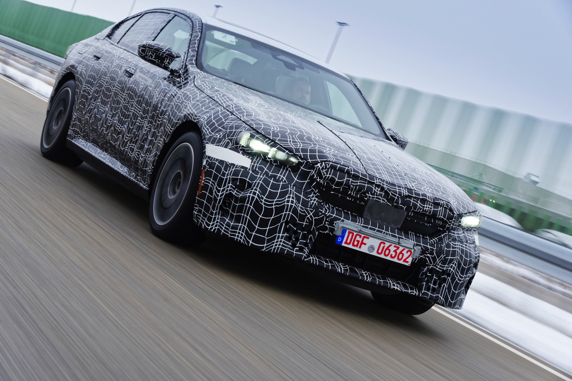 Den bisher klarsten Blick auf die Nieren des neuen BMW i5 (G60) liefert eine Serie offizieller Erlkönig-Fotos, die uns den Elektro-5er bei Winter-Testfahrten in Deutschland und Schweden zeigen. Während einige der nun veröffentlichten Aufnahmen bereits im vergangenen Jahr und mit entsprechend starker Tarnung entstanden sind, sind andere Fotos deutlich jüngeren Datums und mit zum Teil bereits enthüllten Details: Sowohl Scheinwerfer- und Rückleuchten-Design, vor allem aber auch die Nieren samt Streben und zentralem Sensor sind bereits ziemlich klar erkennbar.