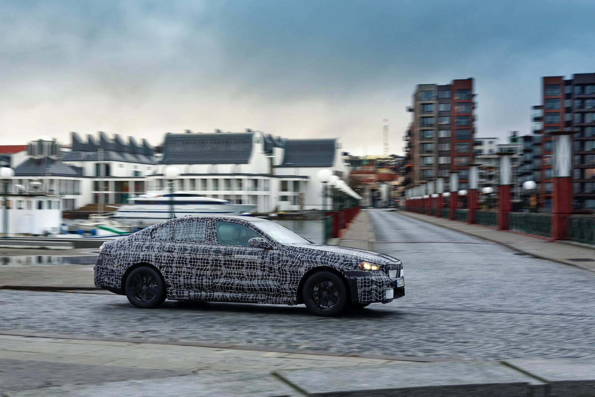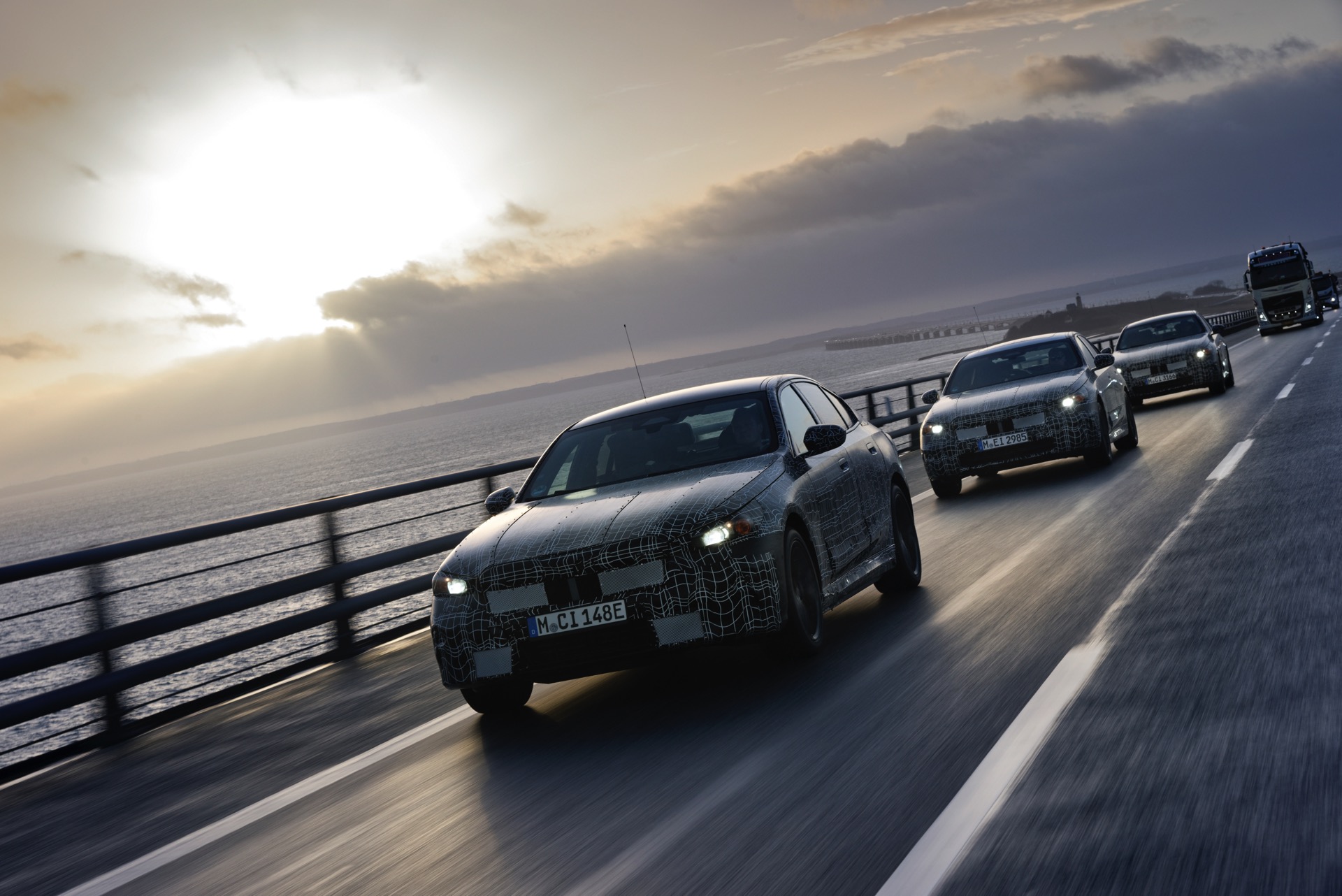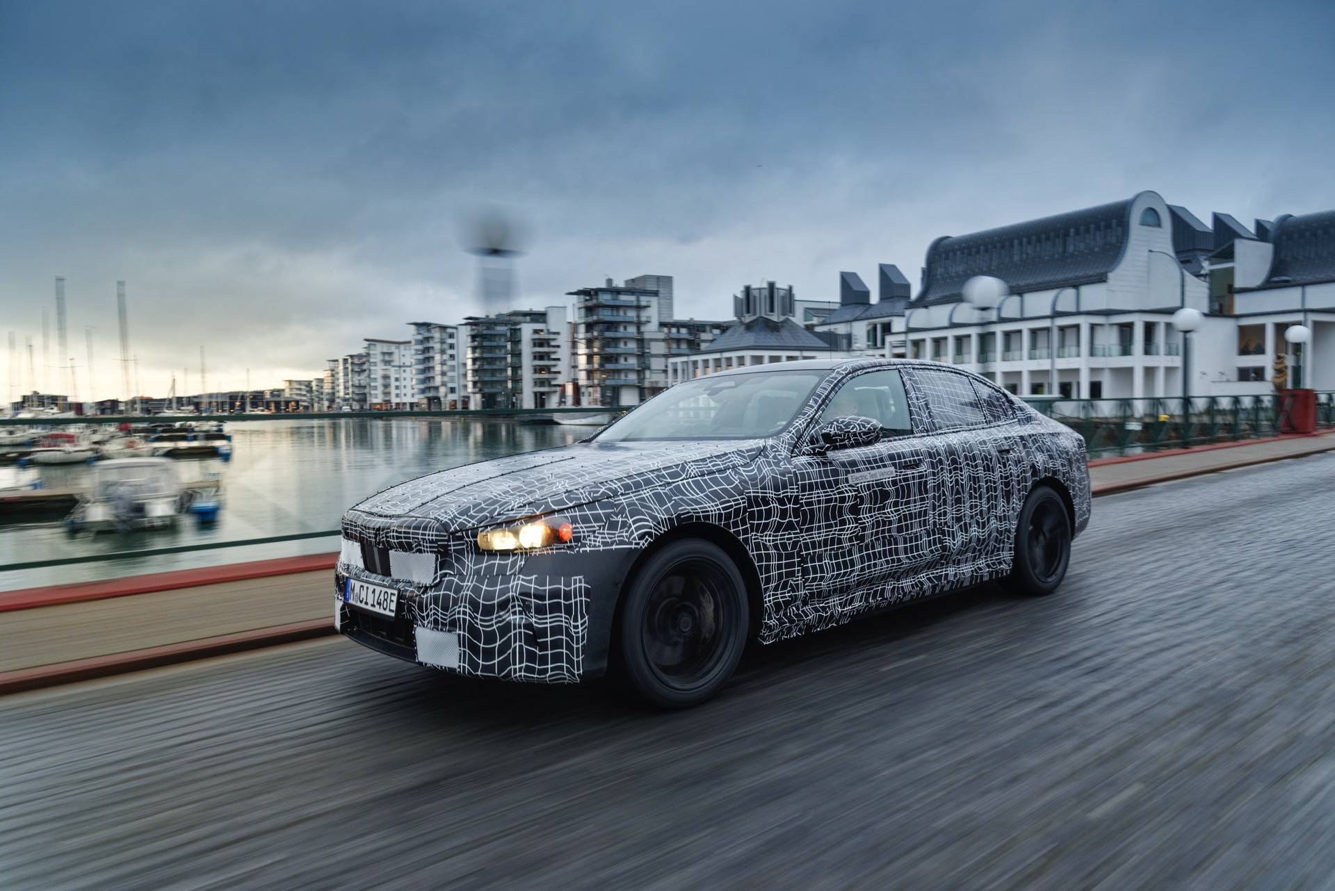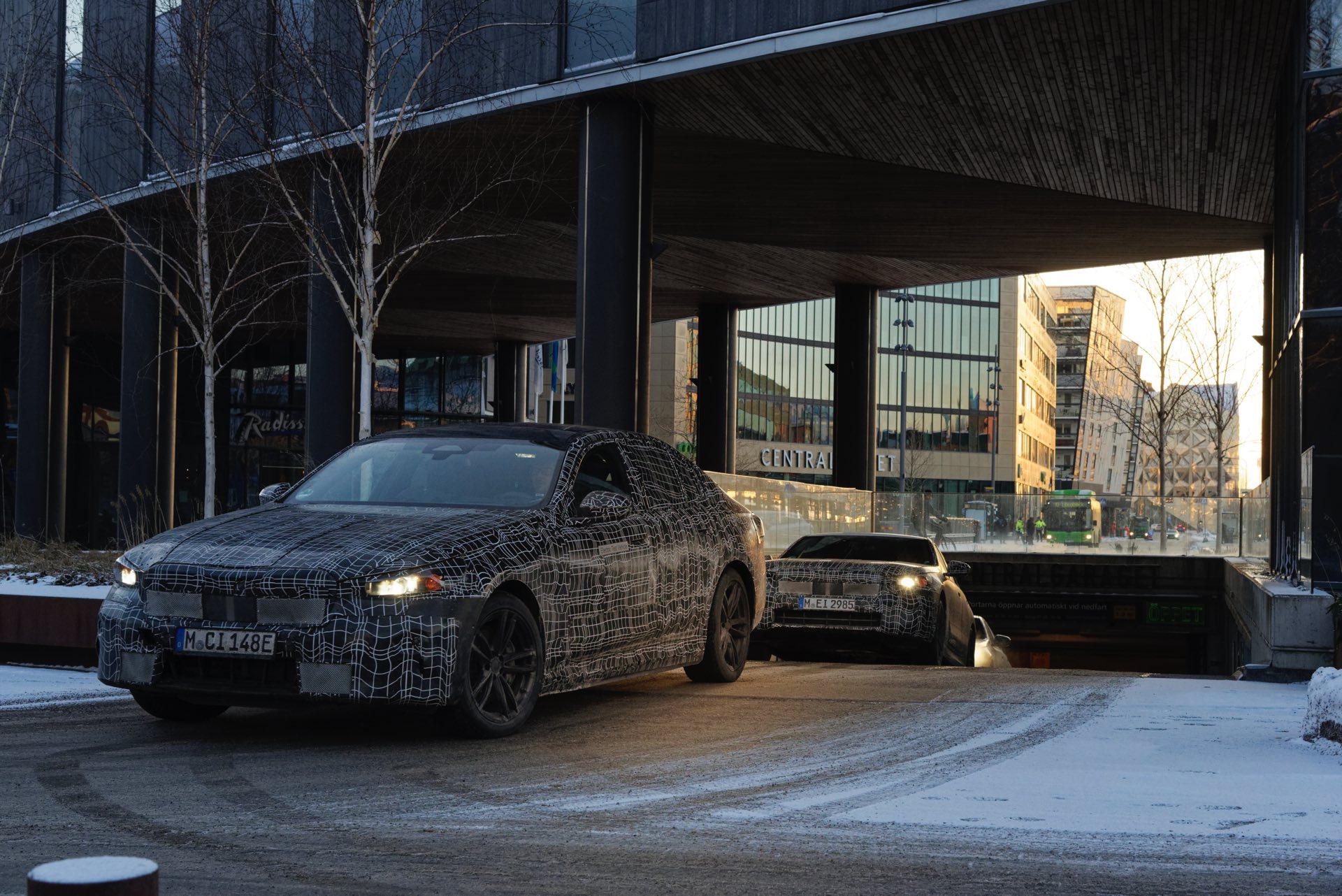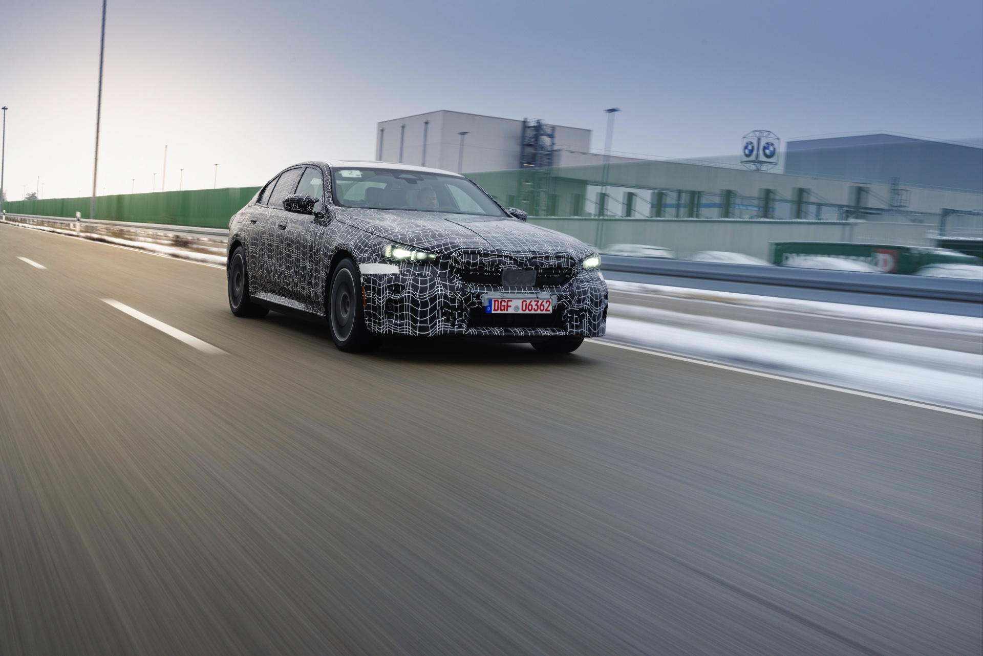 Den bisher klarsten Blick auf die Nieren des neuen BMW i5 (G60) liefert eine Serie offizieller Erlkönig-Fotos, die uns den Elektro-5er bei Winter-Testfahrten in Deutschland und Schweden zeigen. Während einige der nun veröffentlichten Aufnahmen bereits im vergangenen Jahr und mit entsprechend starker Tarnung entstanden sind, sind andere Fotos deutlich jüngeren Datums und mit zum Teil bereits enthüllten Details: Sowohl Scheinwerfer- und Rückleuchten-Design, vor allem aber auch die Nieren samt Streben und zentralem Sensor sind bereits ziemlich klar erkennbar.