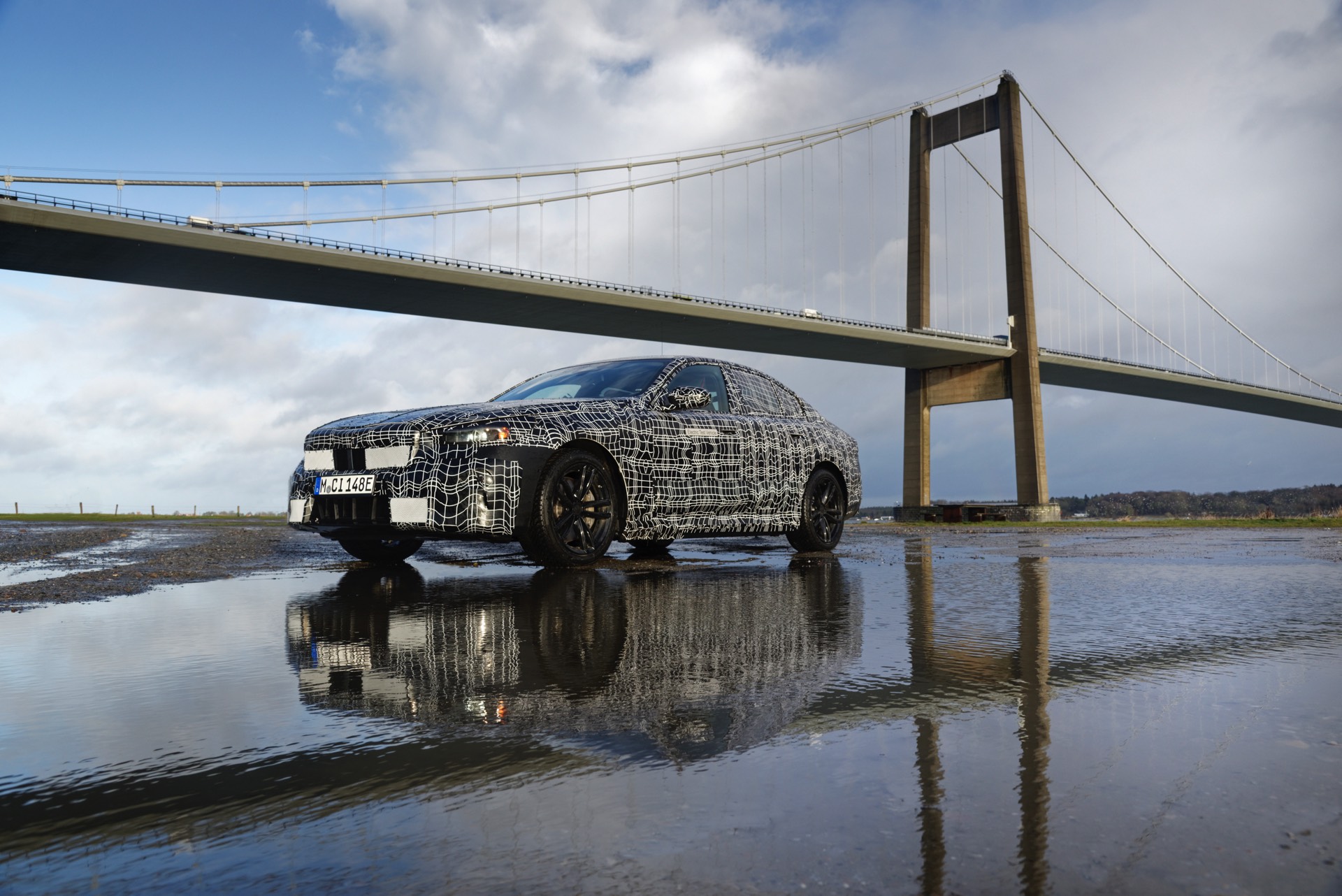 Wie nicht anders zu erwarten war, ist der Sensor in das Nieren-Design integriert und dürfte daher im Serien-Look nicht auf den ersten Blick ins Auge fallen: Erst bei näherem Hinsehen oder bei ungünstigem Lichteinfall dürften die anderen Materialien als beim Rest der Niere wirklich sichtbar werden. Neben Aufnahmen des BMW i5 mit der klassischen Niere samt senkrechten Streben für die schwächeren Varianten gibt es auch einige Fotos, die Prototypen des BMW i5 M60 mit horizontalen Streben und M-Außenspiegeln zeigen.