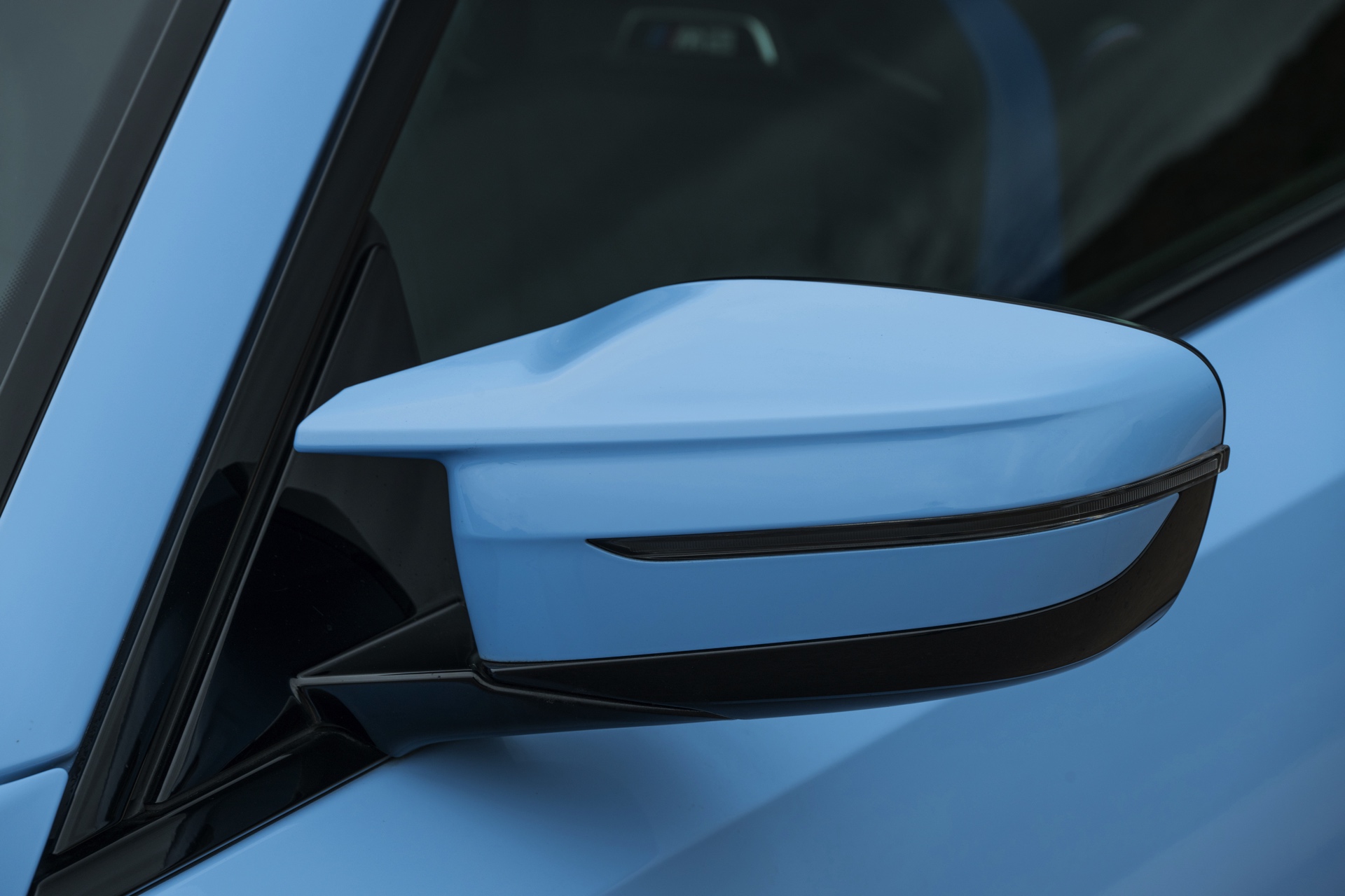 Auch an Front und Heck prägen gerade Linien den Auftritt, der wenig von Understatement und Zurückhaltung hält und stattdessen lautstark um Aufmerksamkeit buhlt. Im scharfen Kontrast zu den brachialen Formen steht die zarte Lackierung in Zandvoort Blau, die freilich Geschmackssache bleibt und zu der es natürlich mehrere Alternativen gibt.