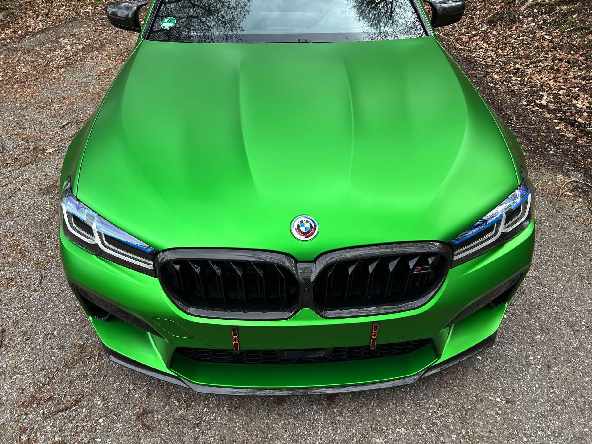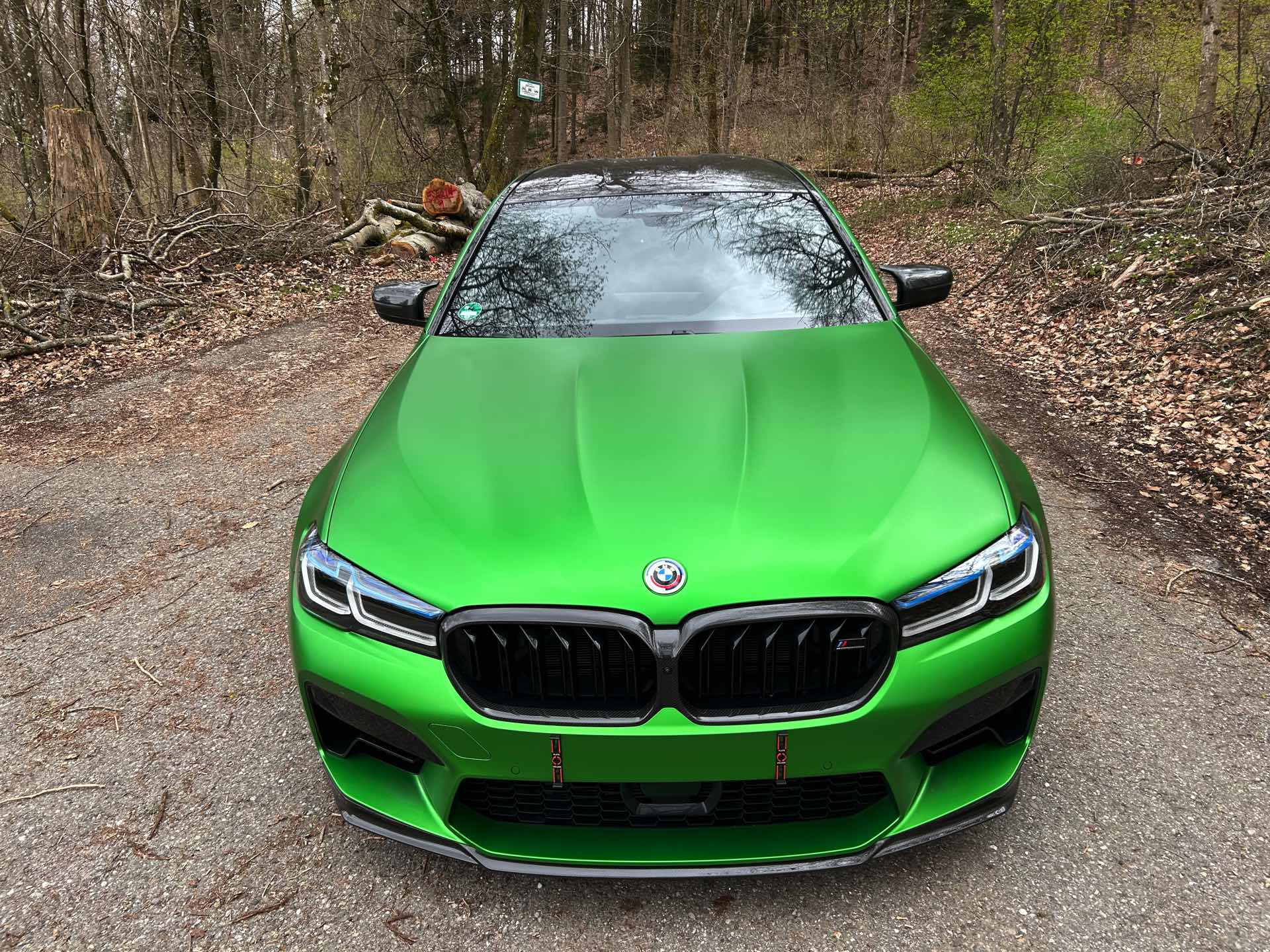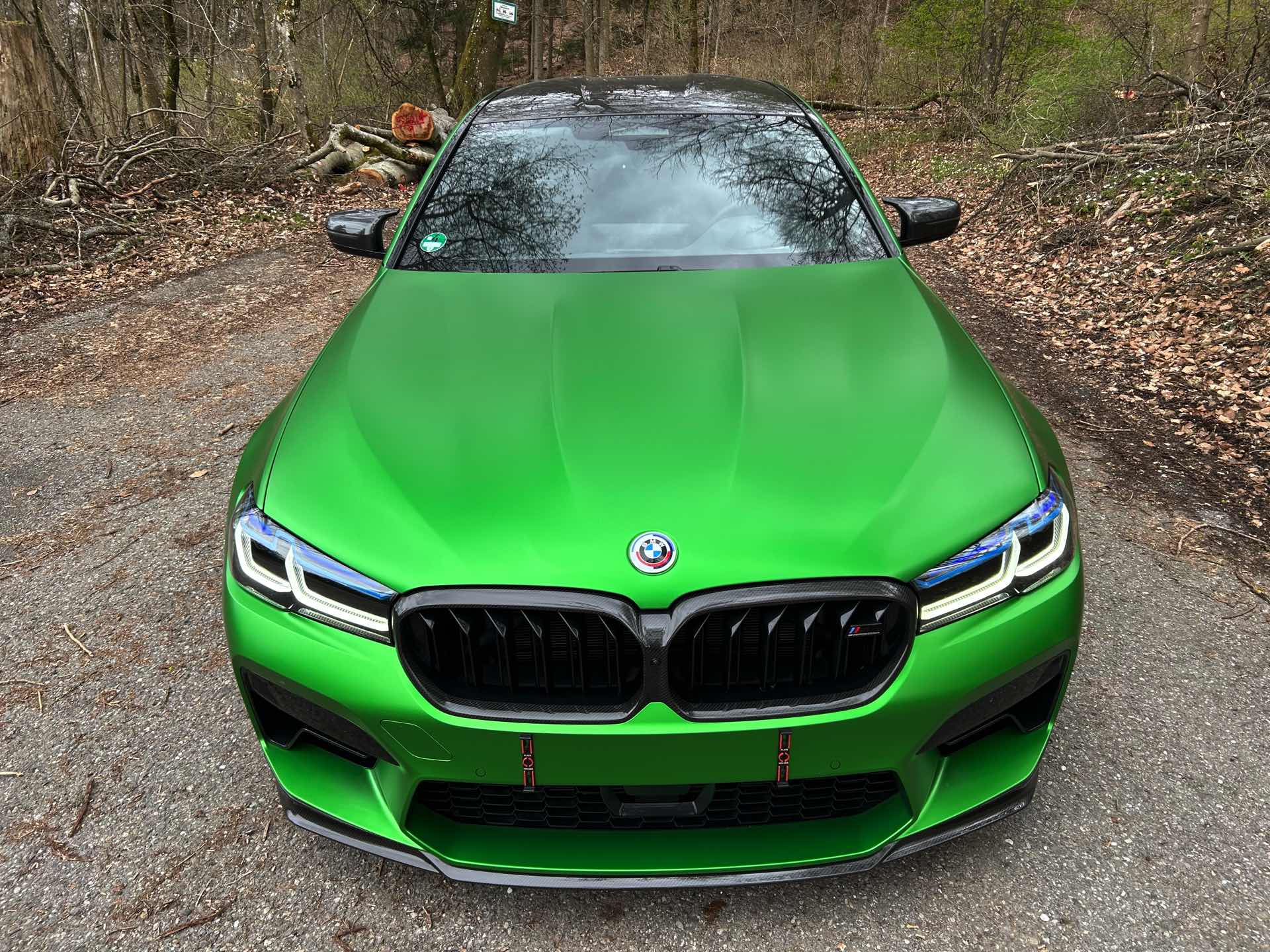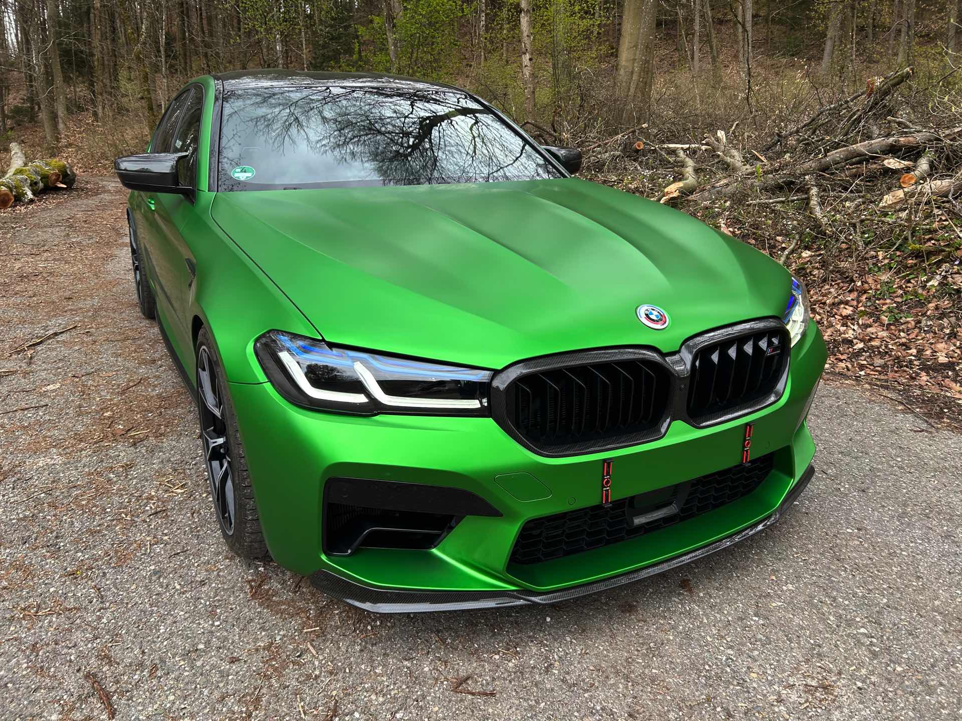 Nicht nur in Sachen Performance, auch optisch muss sich der aktuelle BMW M5 Competition (F90 LCI) kurz vor seinem Produktionsende noch lange nicht verstecken. Was schon für die Serie gilt, wird im Fall von gezielt veredelten Fahrzeugen wie dem M5 unseres Lesers Falk noch klarer: Die Power-Limousine hat auch über drei Jahre nach ihrem Facelift nichts von ihrer Attraktivität verloren. Größter Hingucker des gezeigten BMW M5 ist zweifellos die Folierung in mattem Krypton Green, deren Name nicht zufällig an das magische Mineral aus dem DC-Universum angelehnt ist und mindestens ebenso intensiv leuchtet wie das fiktive Material vom Planeten Krypton.