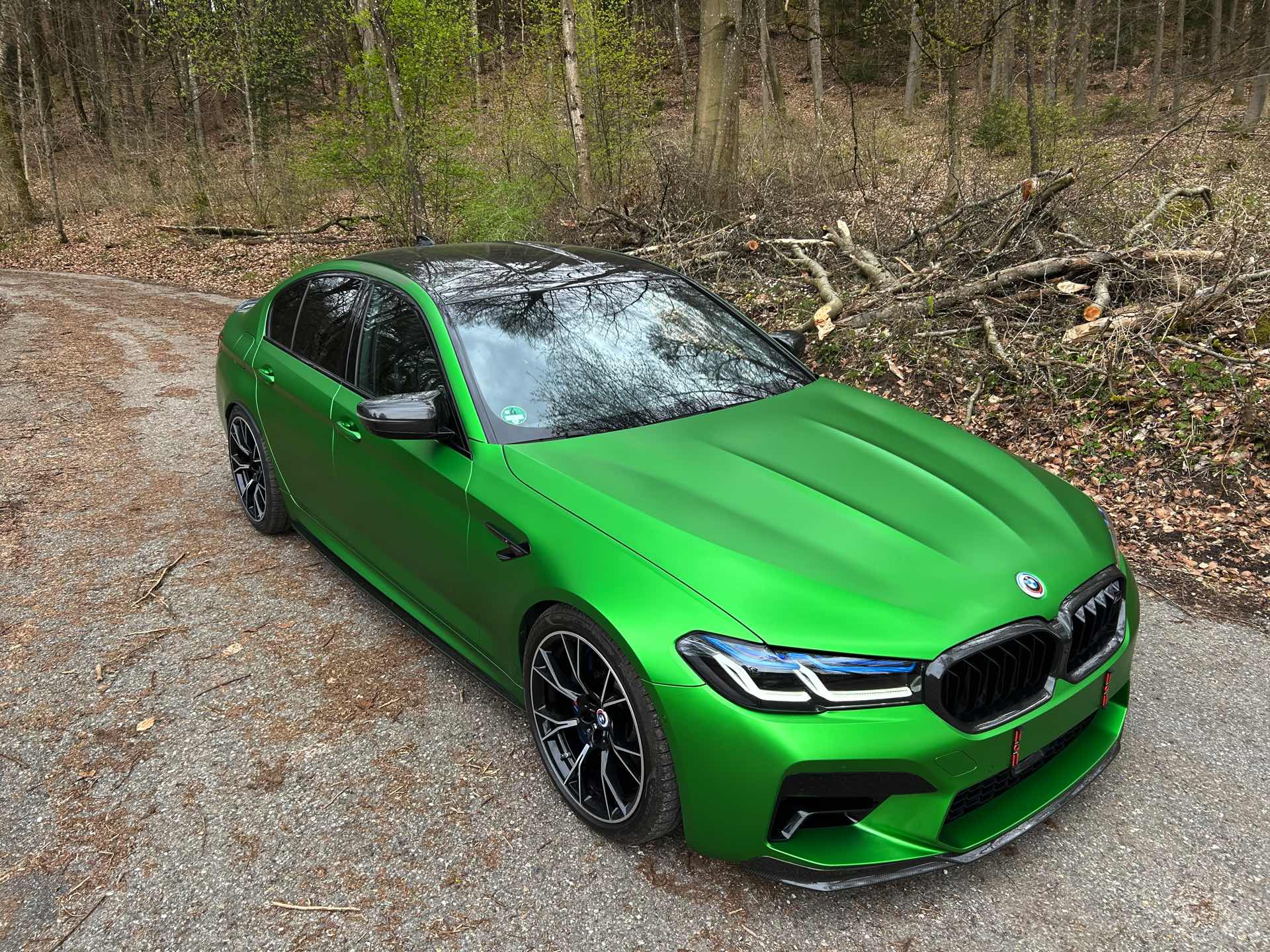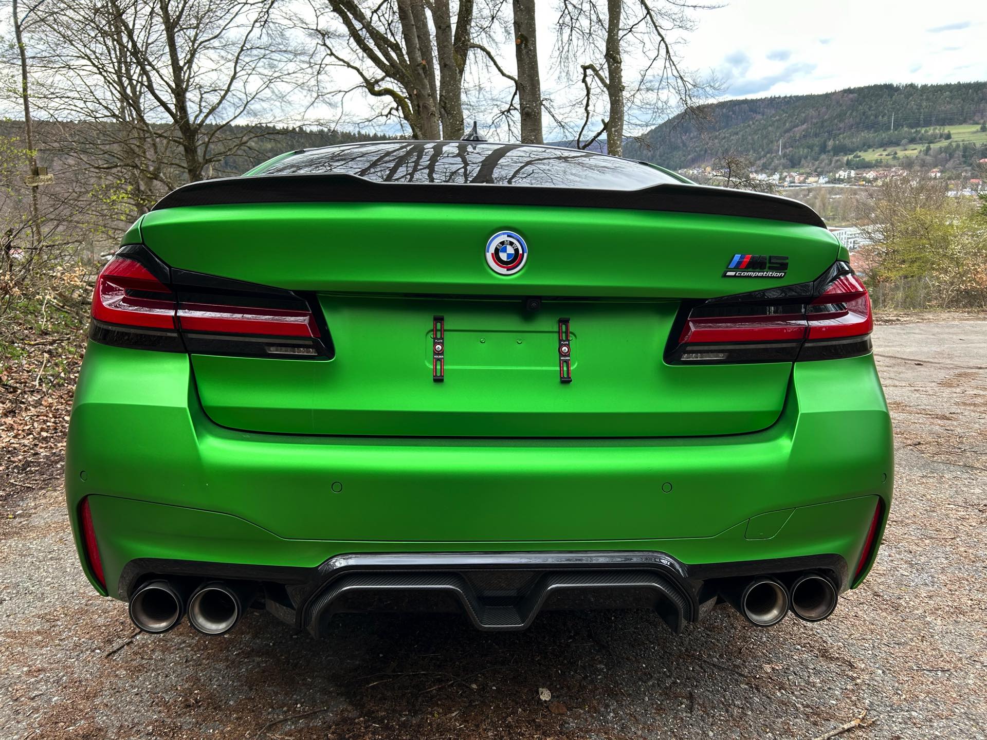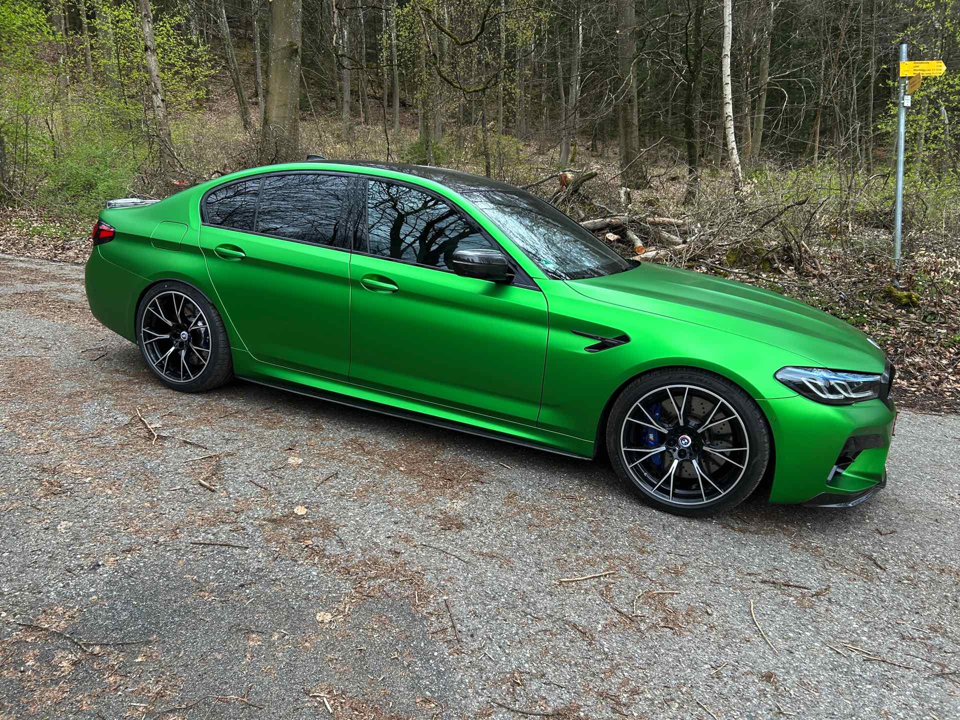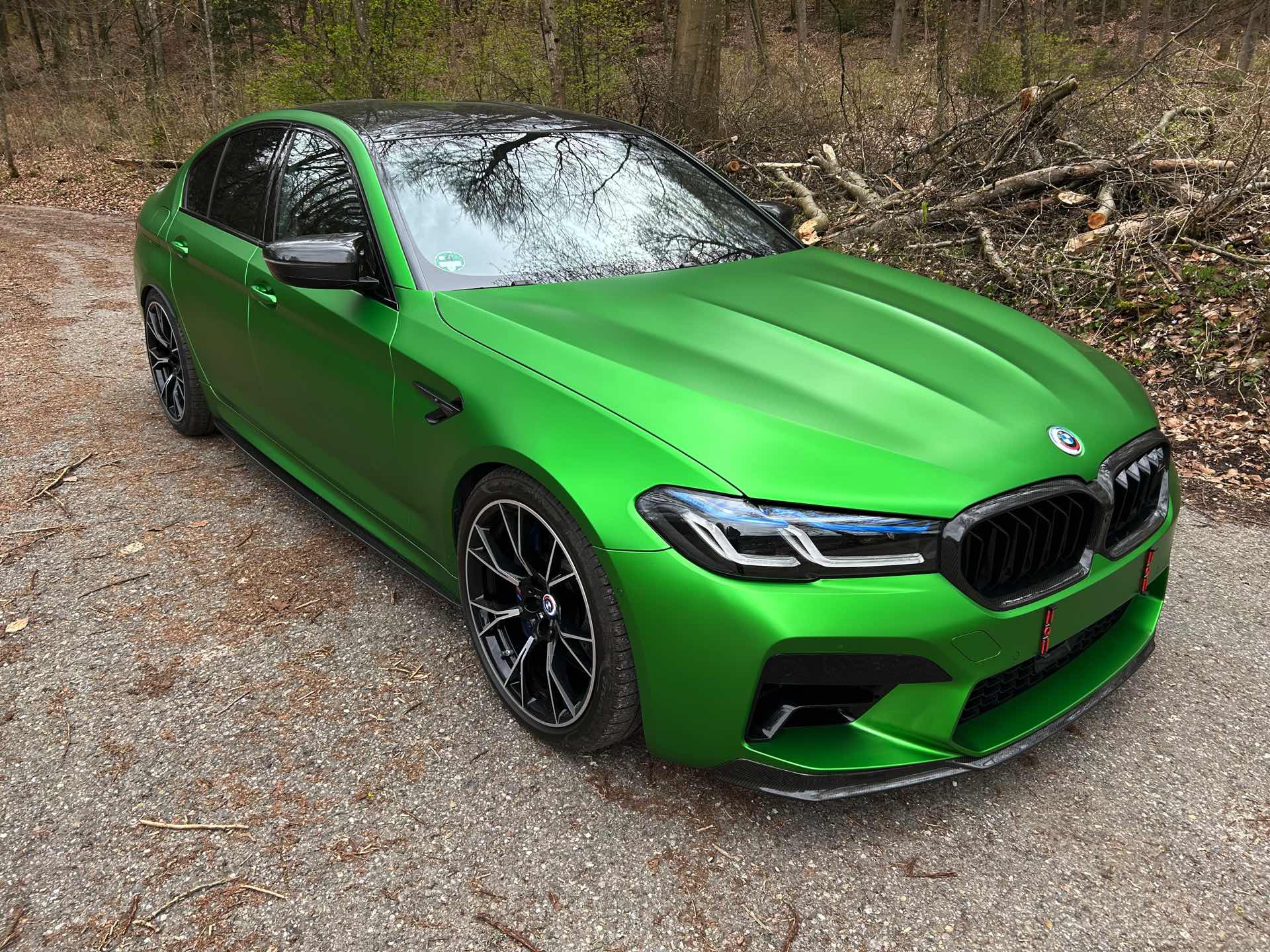 Nicht nur in Sachen Performance, auch optisch muss sich der aktuelle BMW M5 Competition (F90 LCI) kurz vor seinem Produktionsende noch lange nicht verstecken. Was schon für die Serie gilt, wird im Fall von gezielt veredelten Fahrzeugen wie dem M5 unseres Lesers Falk noch klarer: Die Power-Limousine hat auch über drei Jahre nach ihrem Facelift nichts von ihrer Attraktivität verloren. Größter Hingucker des gezeigten BMW M5 ist zweifellos die Folierung in mattem Krypton Green, deren Name nicht zufällig an das magische Mineral aus dem DC-Universum angelehnt ist und mindestens ebenso intensiv leuchtet wie das fiktive Material vom Planeten Krypton.