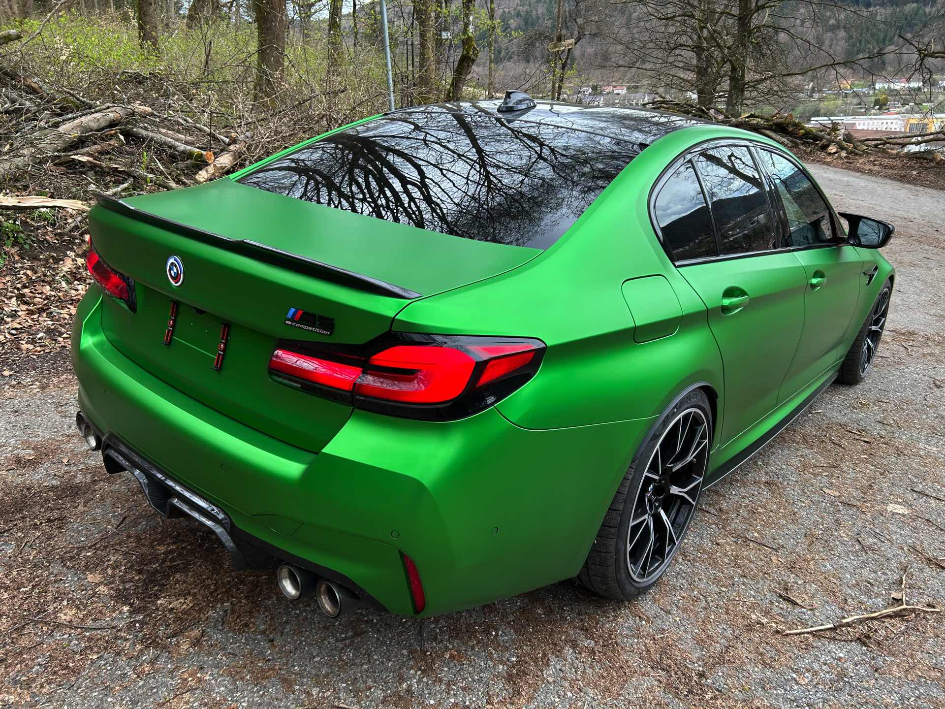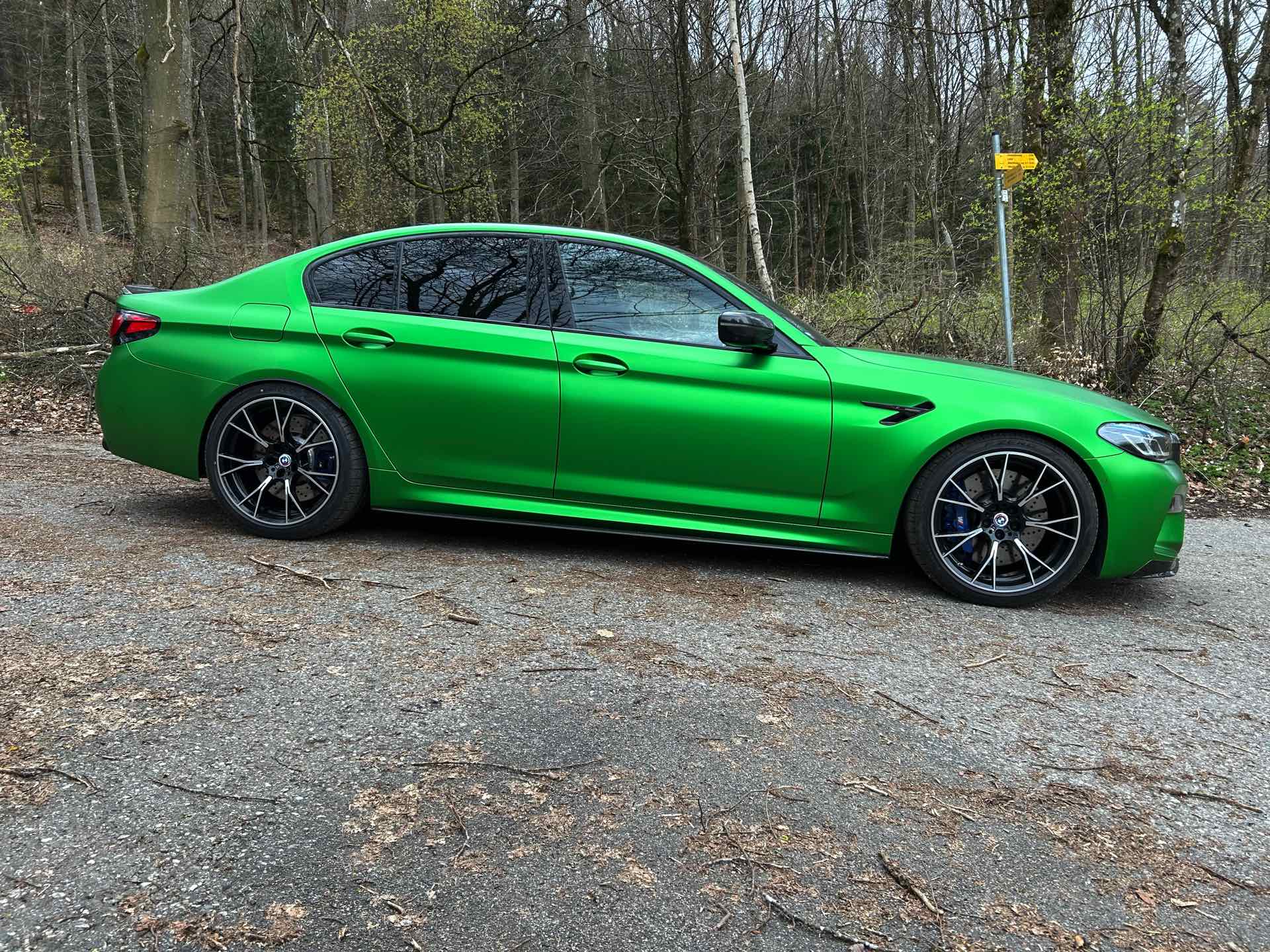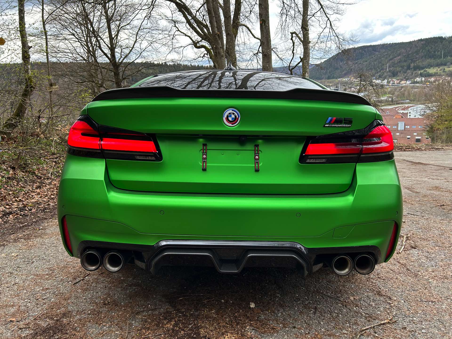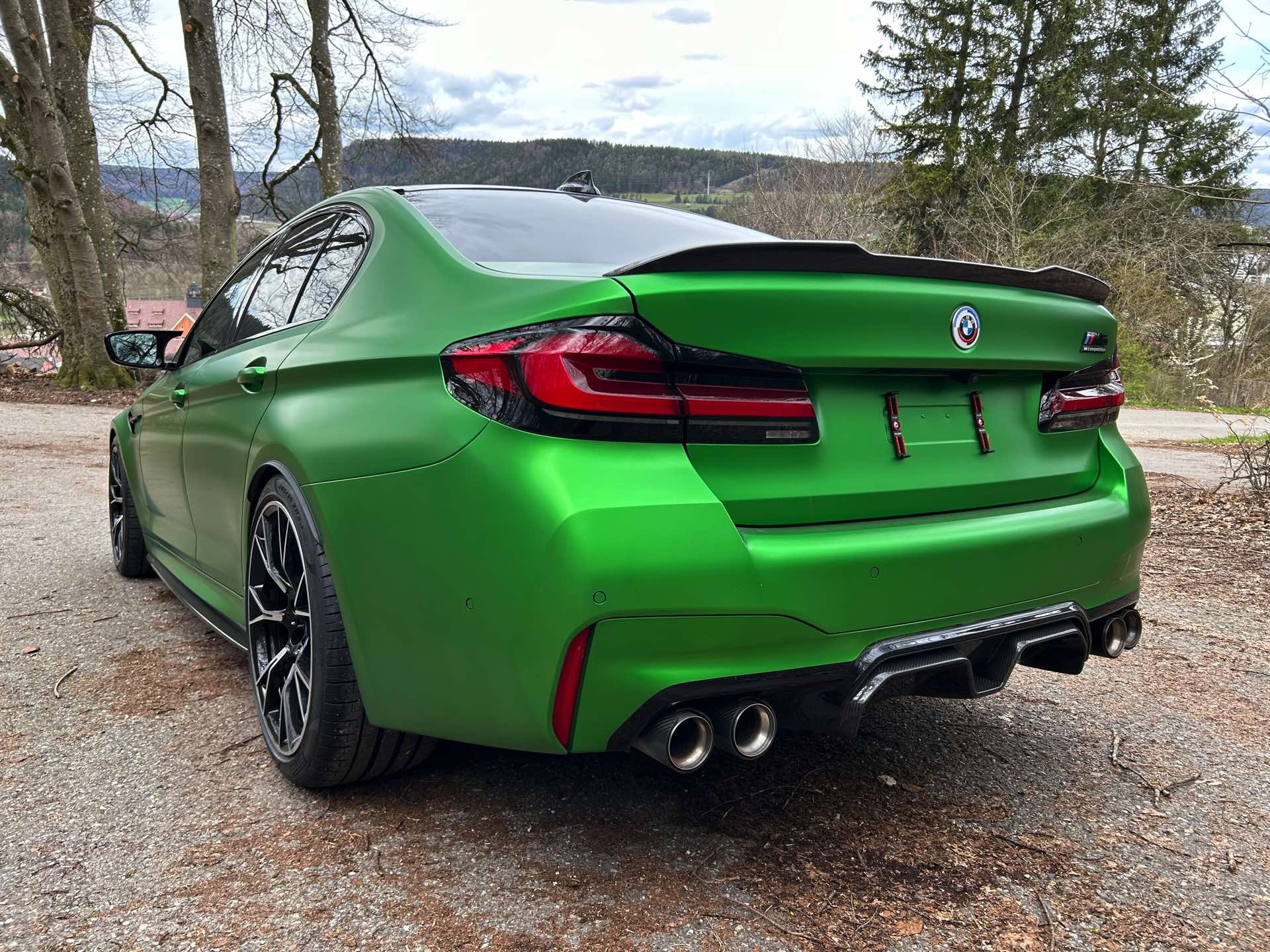 Nicht nur in Sachen Performance, auch optisch muss sich der aktuelle BMW M5 Competition (F90 LCI) kurz vor seinem Produktionsende noch lange nicht verstecken. Was schon für die Serie gilt, wird im Fall von gezielt veredelten Fahrzeugen wie dem M5 unseres Lesers Falk noch klarer: Die Power-Limousine hat auch über drei Jahre nach ihrem Facelift nichts von ihrer Attraktivität verloren. Größter Hingucker des gezeigten BMW M5 ist zweifellos die Folierung in mattem Krypton Green, deren Name nicht zufällig an das magische Mineral aus dem DC-Universum angelehnt ist und mindestens ebenso intensiv leuchtet wie das fiktive Material vom Planeten Krypton.