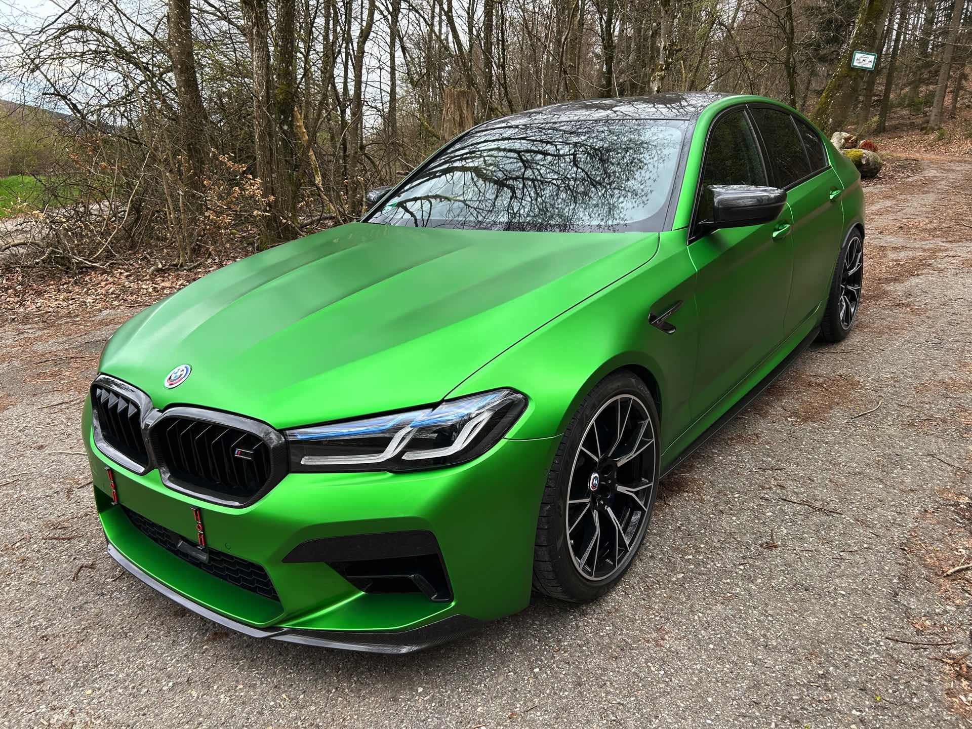 Neben der unübersehbaren Folierung trägt der ursprünglich in Saphirschwarz lackierte BMW M5 Competition aber noch einige weitere Tuning-Komponenten: Frontsplitter-Aufsatz, Heckspoiler-Lippe und Heckdiffusor stammen vom BMW M5 CS, der mit 635 PS wohl für immer der stärkste Serien-BMW ohne elektrifizierten Antrieb bleiben wird. Außerdem trägt Falks M5 Carbon-Nieren und -Außenspiegel sowie dazu passende Seitenschweller und Kiemen-Verkleidungen aus dem Programm von BMW M Performance sowie die Motorsport-Embleme, die im vergangenen Jahr zum 50. Geburtstag der M GmbH aufgelegt wurden. "