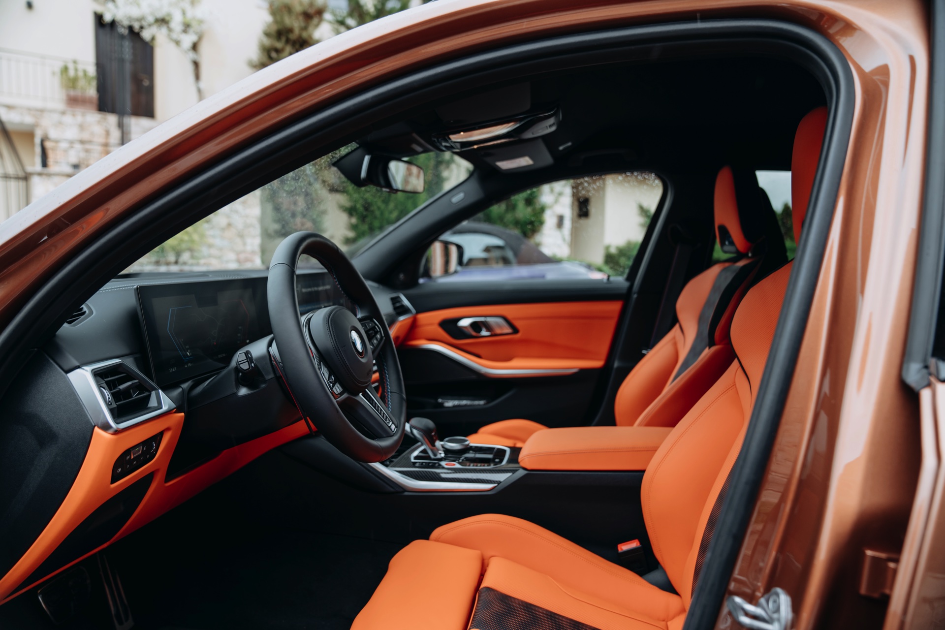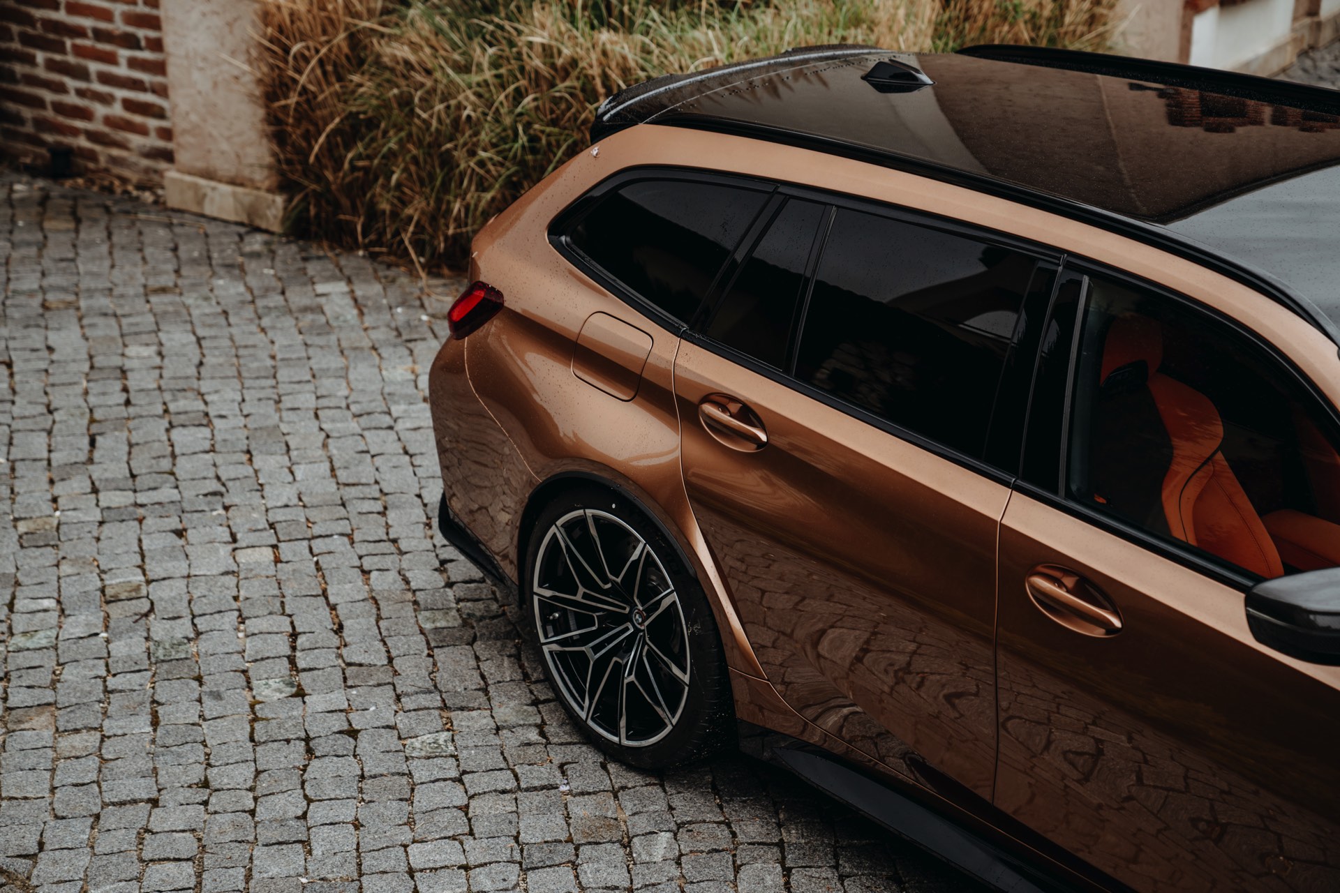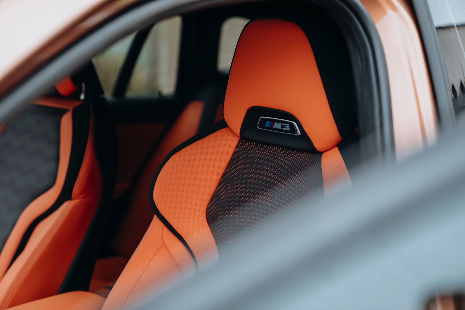 Auf den leider nur drei Innenraum-Fotos erhalten wir einen Eindruck von der Volllederausstattung Merino in Kyalami Orange und Schwarz, die beinahe ebenso speziell ist wie die Individual-Lackierung des Exterieurs. Carbon-Interieurleisten und die roten Knöpfe der M High Performance-Modelle runden das sportliche Interieur des 510 PS starken und bis zu 280 km/h schnellen Über-Kombis ab.