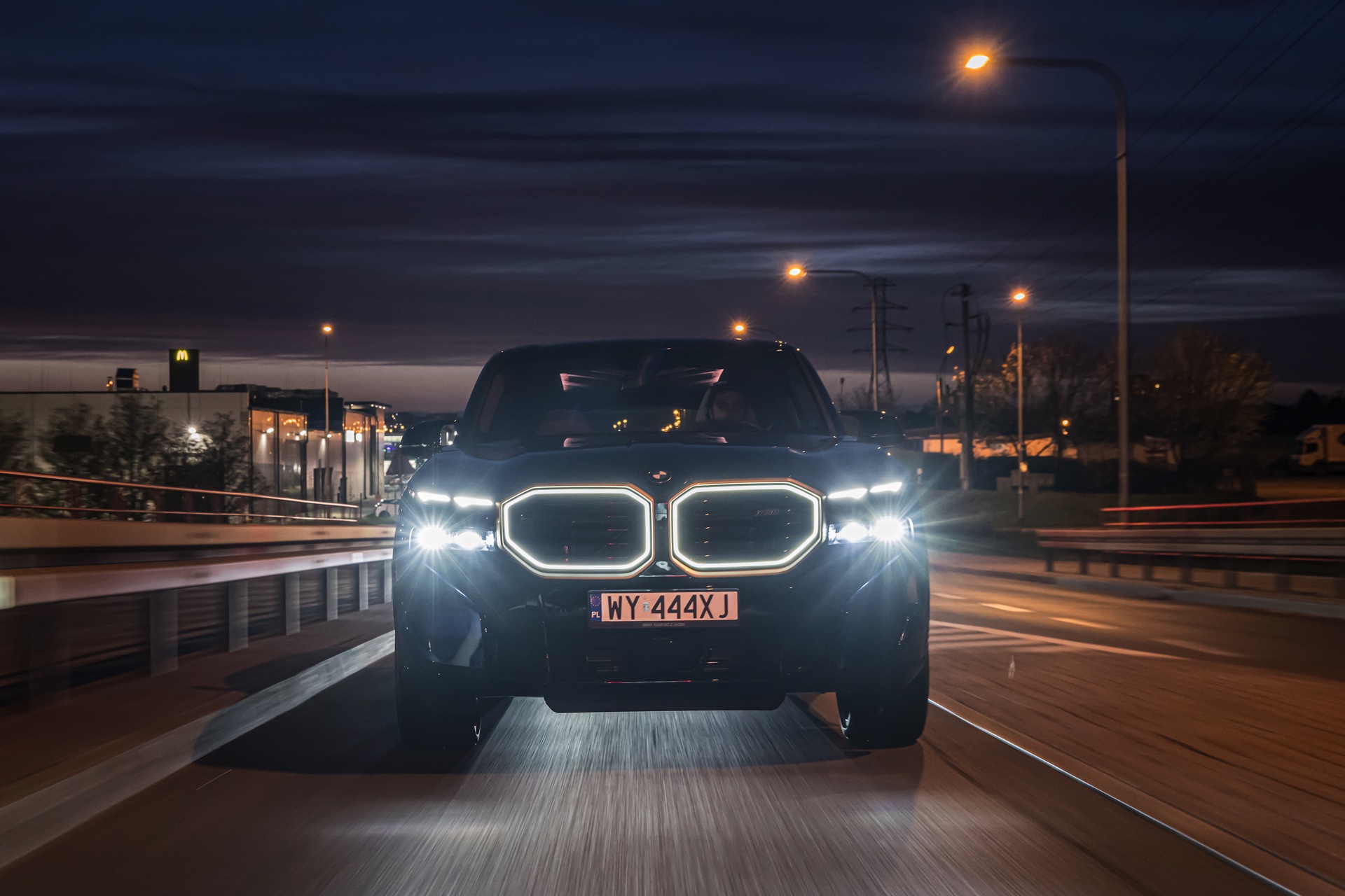 Das unverwechselbare Nacht-Design des BMW XM (G09) steht im Mittelpunkt einer neuen Foto-Serie aus Polen. Neben den serienmäßigen Split Headlights drängt sich dabei vor allem die ebenfalls im Grundpreis enthaltene Iconic Glow-Niere in den Vordergrund, denn die beleuchtete Nieren-Kontur sorgt in der Dunkelheit für einen ganz besonderen Look. Wie die aktuellen Fotos aus Polen deutlich zeigen, sorgen die Licht-Elemente gemeinsam für einen einzigartigen Auftritt bei Nacht. Dabei spielt es für die Exklusivität eine untergeordnete Rolle, ob die Hauptscheinwerfer im unteren Teil der Split Headlights aktiv sind oder nicht – auch wenn die Optik in der Tagfahrlicht-Einstellung naturgemäß noch aggressiver ist.