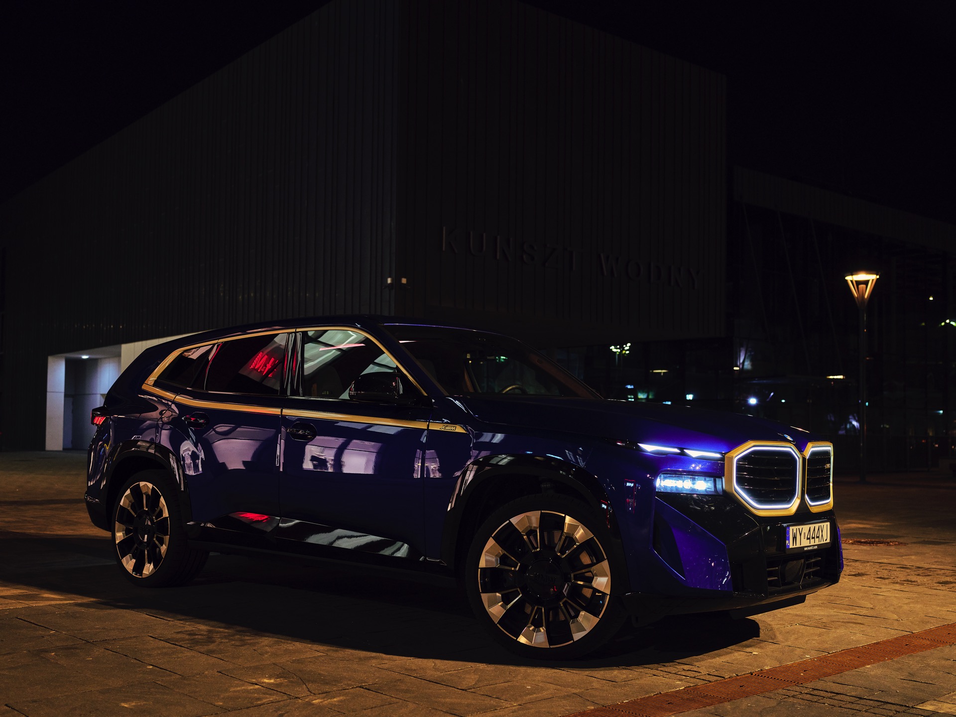 Eher eine untergeordnete Rolle spielen die Farben auf den aktuellen Fotos, schließlich rücken bei Nacht auch auffällige Lackierungen wie Marina Bay Blau und Toronto Rot in den Hintergrund. Zumindest auf manchen Fotos wird aber auch die unterschiedliche Wirkung mit verschiedenen Konfigurationen deutlich, beispielsweise durch die Wahl der goldenen Akzente oder der Shadow Line mit erweiterten Umfängen und vielen schwarzen Details. In den Radhäusern der polnischen XM-Flotte sehen wir unter anderem die 23 Zoll großen Leichtmetallräder Sternspeiche 923 M Bicolor, die auf Wunsch ebenfalls mit goldenen Akzenten erhältlich sind.