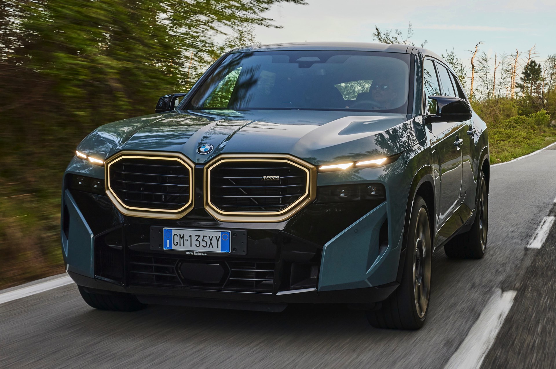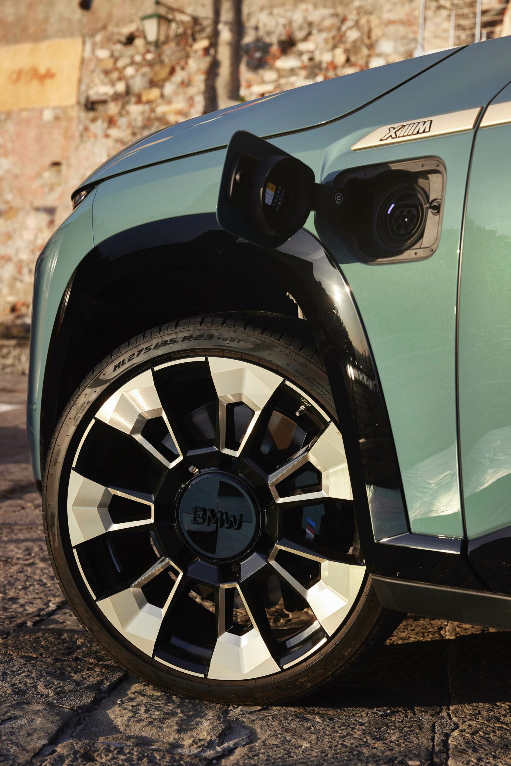 Auf den aktuellen Fotos aus Italien trägt der BMW XM die 23 Zoll-Felgen Sternspeiche 923 M Bicolor mit Akzenten in Nightgold, die hervorragend zu den goldenen Nieren, dem ebenfalls goldenen Akzentband im Bereich der Seitenscheiben und den goldenen Details am Diffusor passen. Die exklusiven 23-Zöller sind allerdings nicht nur zwei Zoll größer als die Serien-Felgen, die kosten auch stattliche 3.060 Euro Aufpreis. Für 100 Euro weniger sind die gleichen Räder auch mit silbernen statt goldenen Flächen erhältlich, was für einen deutlich dezenteren – aber eben auch weniger speziellen – Look sorgt.