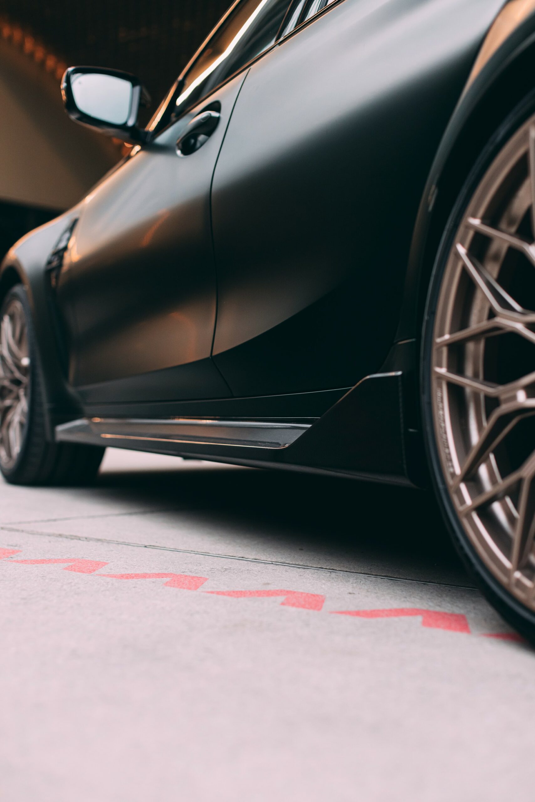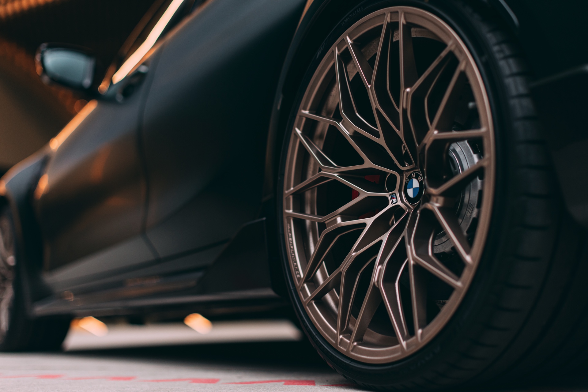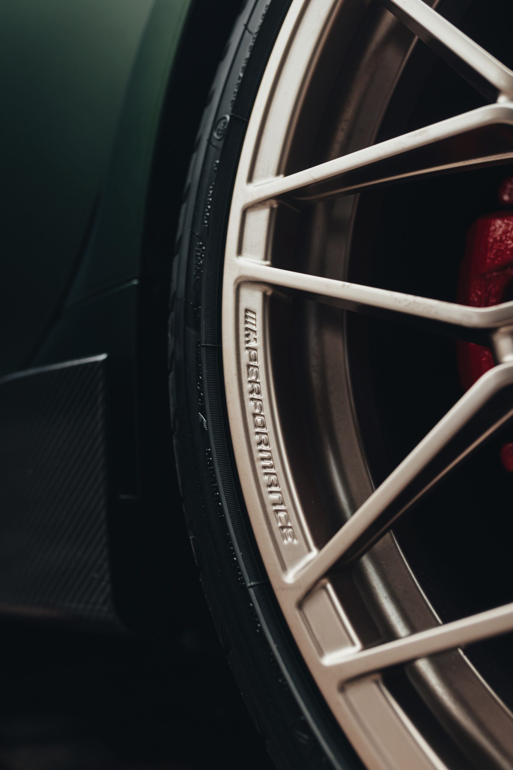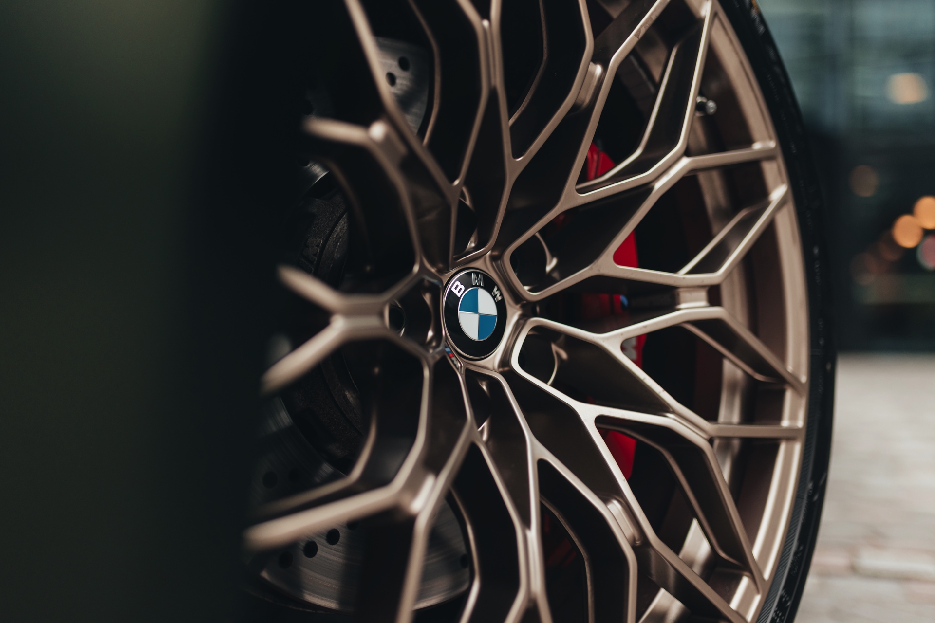 Die aktuellen Fotos zeigen den Power-Kombi nicht nur mit der exklusiven Matt-Lackierung in tiefem Dunkelgrün, sondern auch mit sehr speziellen Design-Akzenten. Besonders markant sind dabei die M Performance-Felgen im Design Kreuzspeiche 1000, die die Seitenansicht mit ihrem Finish in Goldbronze matt noch spezieller machen. An der Vorderachse kommt dabei das 20-Zoll-Format zum Einsatz, an der Hinterachse sehen wir sogar 21-Zöller. Für weitere sportliche Akzente sorgen diverse Carbon-Bauteile aus dem M Performance-Programm, angefangen von Frontsplitter über Aero-Flaps vor den Vorderrädern, Kiemen und passende Seitenschweller-Aufsätze bis hin zum Diffusor-Einsatz für die Heckschürze. "
