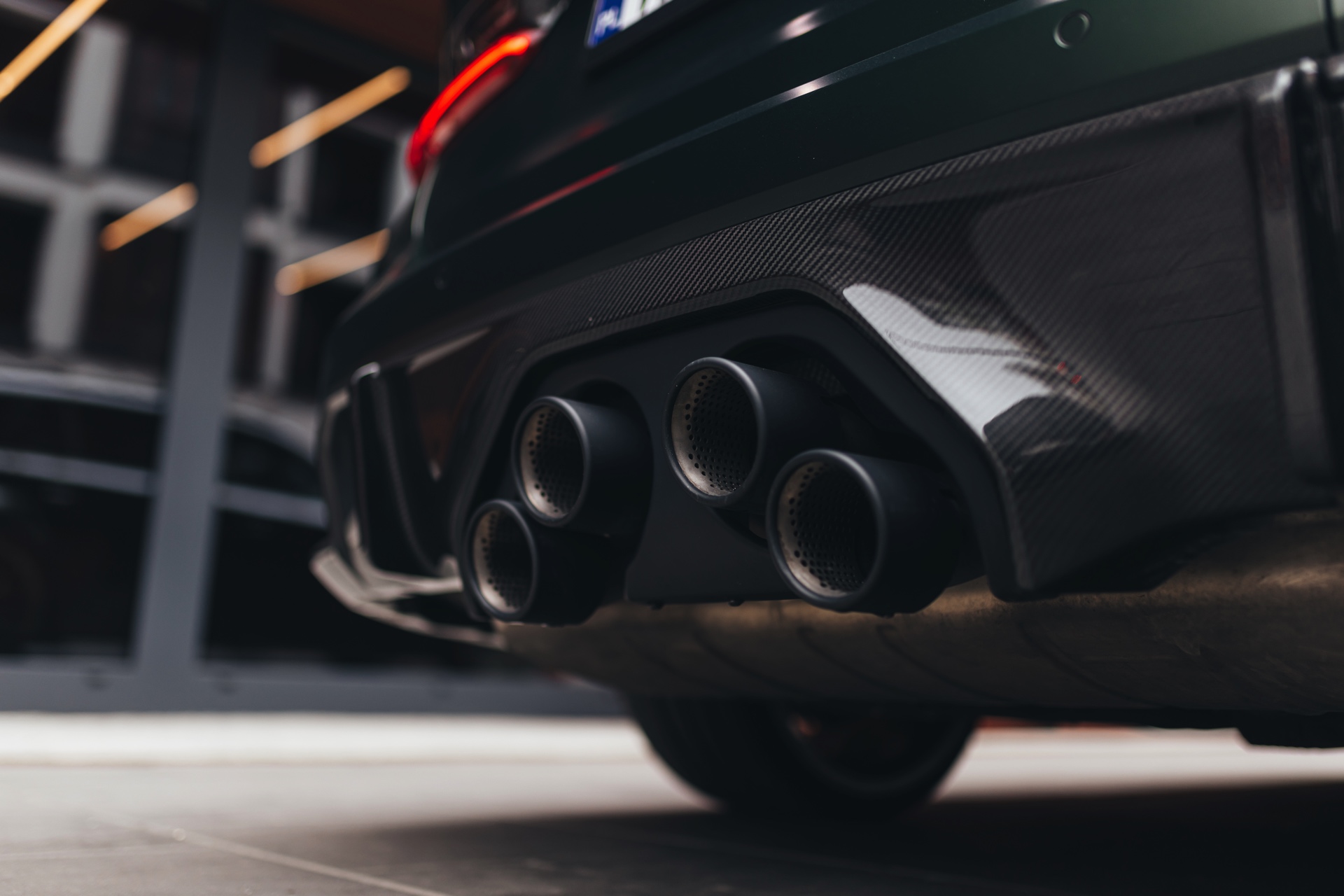 Am Heck ist die kontroverse M Performance Abgasanlage dennoch unumstrittener Hingucker Nummer 1, schließlich grenzt sie sich mit ihrer trapezförmigen Endrohr-Anordnung deutlich von der Serie und praktisch auch jedem anderen Automobil ab. Eher ein Fall für Kenner sind die seitlichen Finnen im Bereich der Heckscheibe, die die aerodynamische Umströmung des Hecks verbessern sollen.