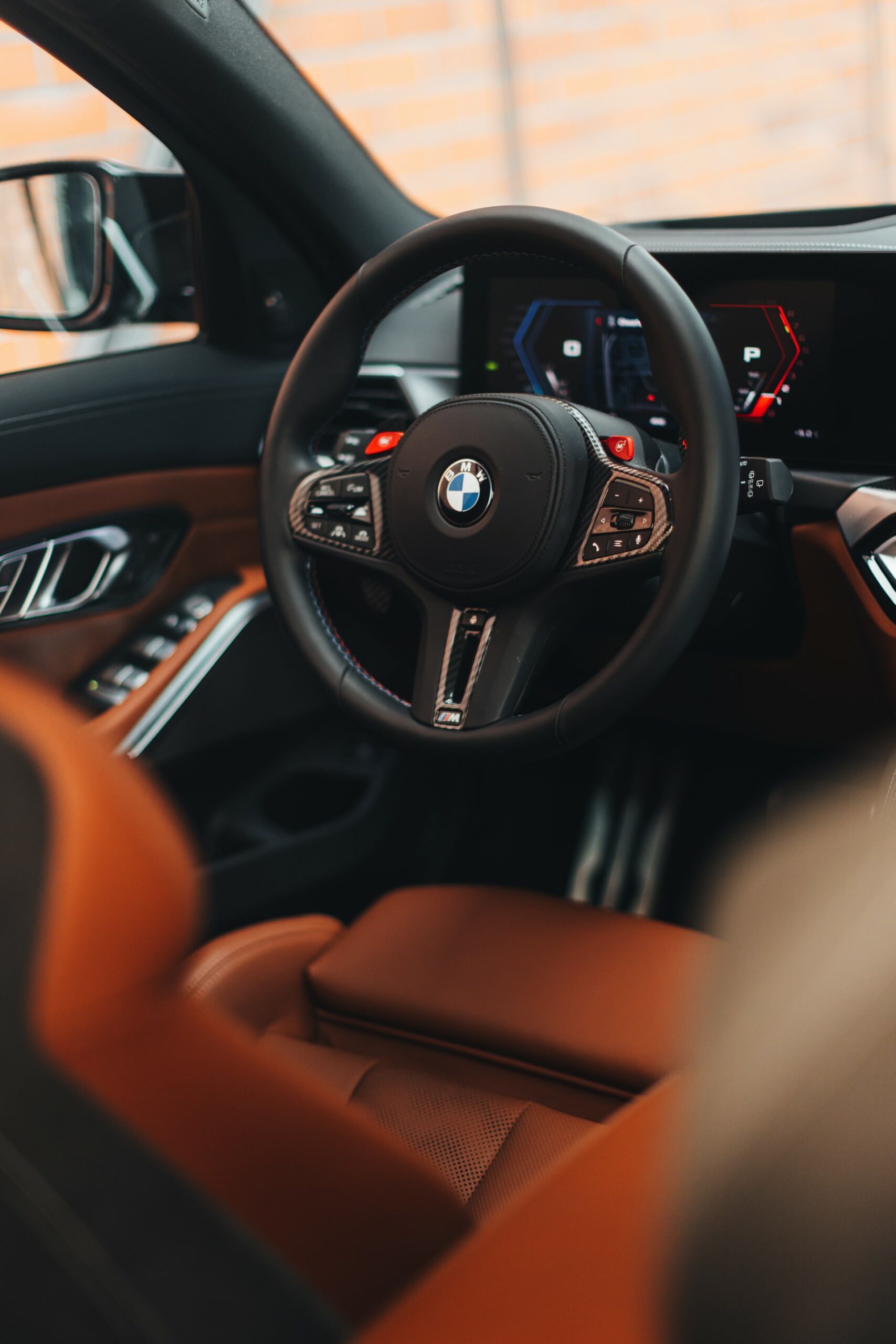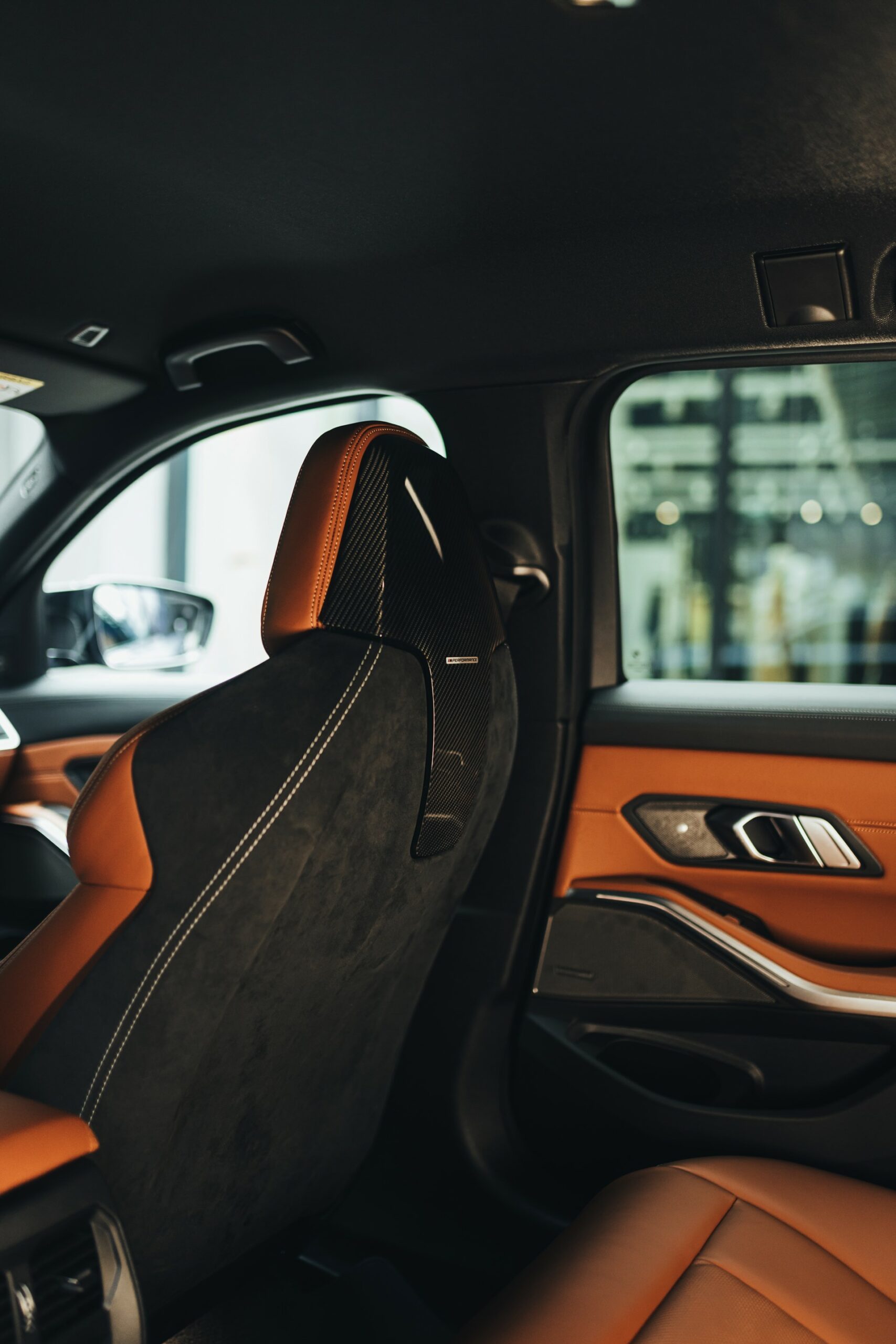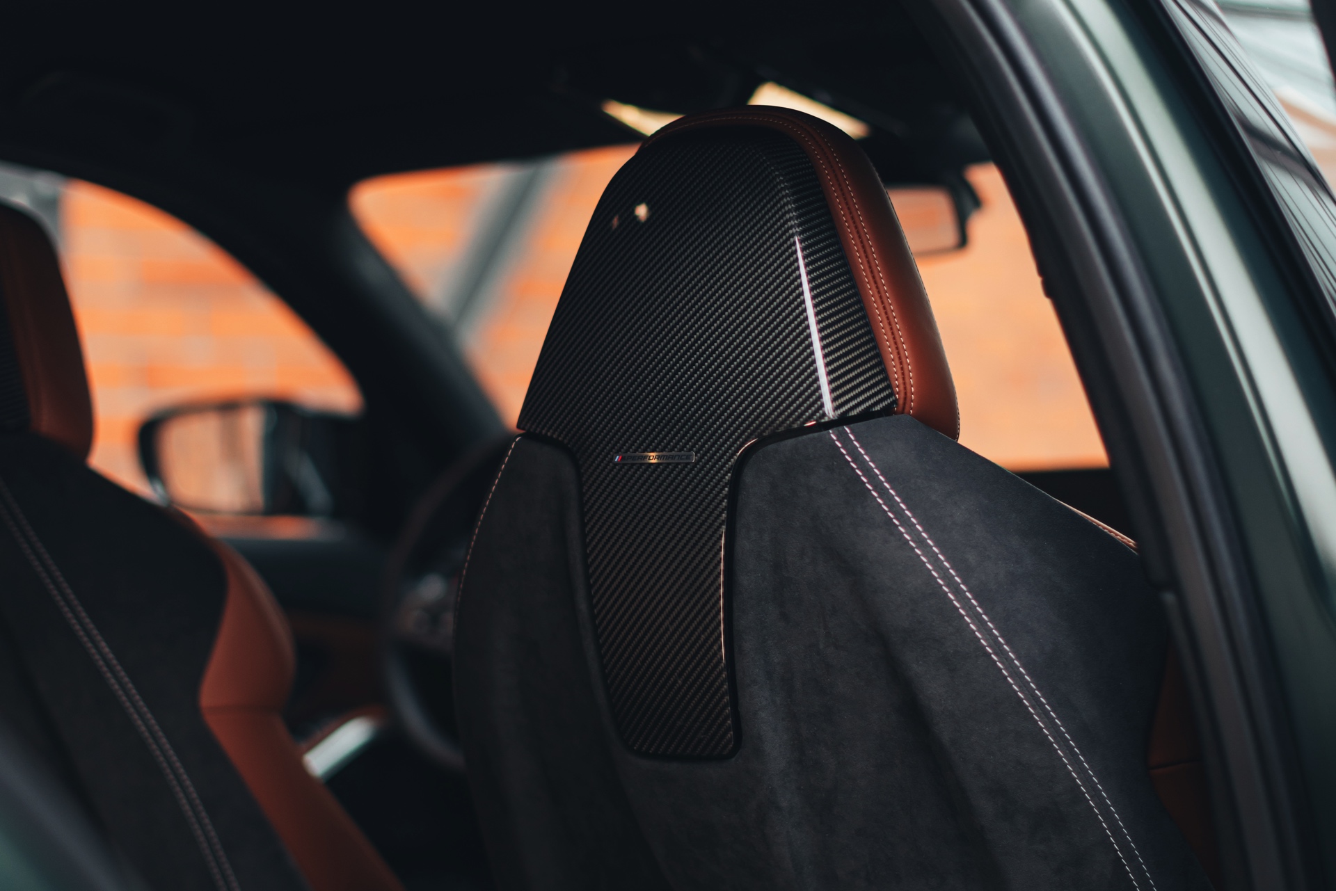 Im Innenraum trägt der edle Kombi in Frozen Deep Green die im Farbton Tartufo gehaltene BMW Individual Volllederausstattung Merino mit erweiterten Umfängen. Zusammen mit den Carbon-Interieurleisten und viel Alcantara sorgt sie für ein sportlich-hochwertiges Flair.