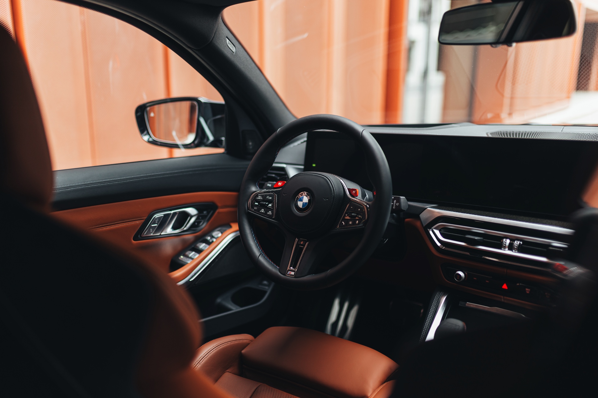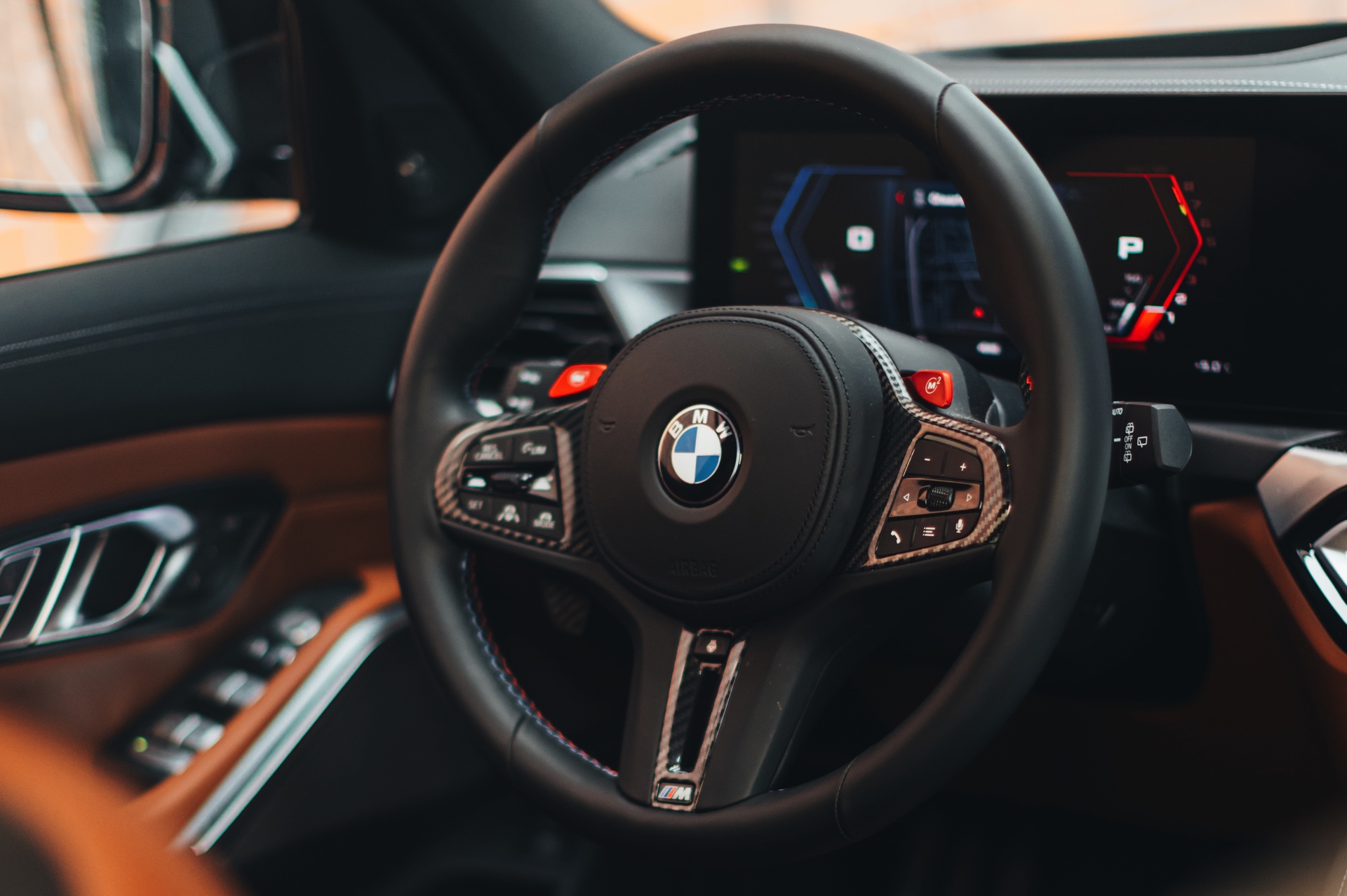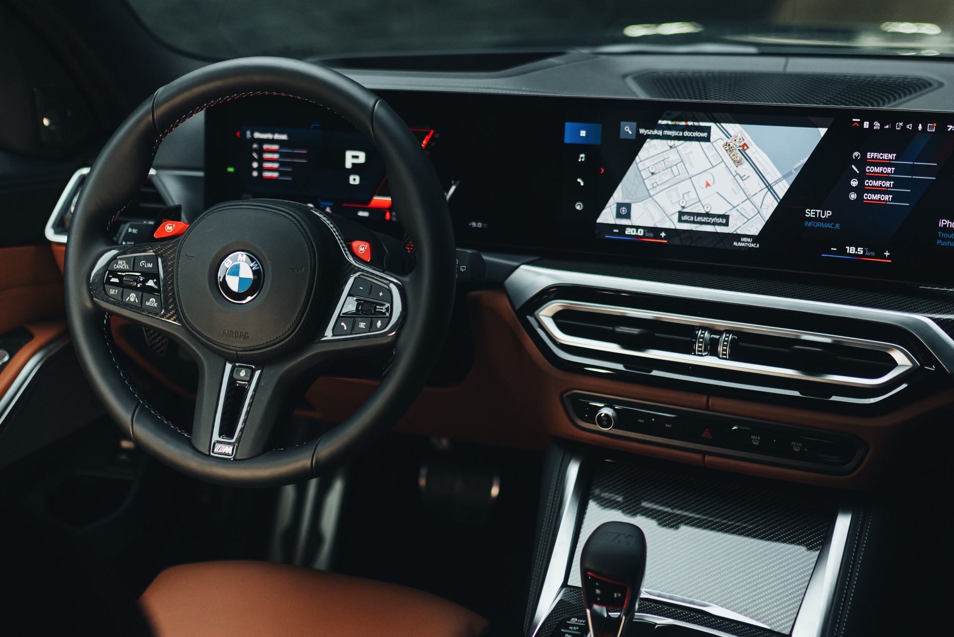 Im Innenraum trägt der edle Kombi in Frozen Deep Green die im Farbton Tartufo gehaltene BMW Individual Volllederausstattung Merino mit erweiterten Umfängen. Zusammen mit den Carbon-Interieurleisten und viel Alcantara sorgt sie für ein sportlich-hochwertiges Flair.