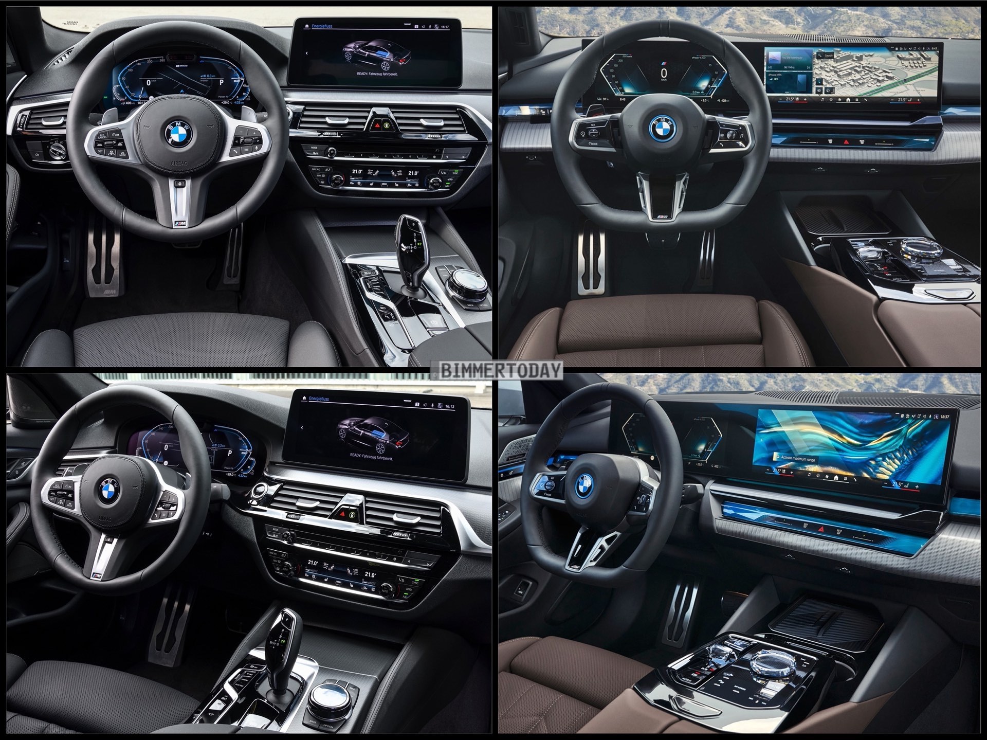 Deutlich weiterentwickelt präsentiert sich auch der Innenraum der 5er-Reihe: Statt zwei auch optisch klar voneinander getrennten Displays gibt es nun ein 12,3 Zoll großes Instrumtenten-Display und einen 14,9 Zoll großen Touchscreen unter einem gemeinsamen Deckglas. Das geschwungene Curved Display unterstreicht dabei die Fahrerorientierung des Cockpits und umschließt den Fahrer. Die beleuchtete Interaction Bar sorgt dafür, dass der Innenraum seinen Look je nach gewähltem Fahrmodus wesentlich deutlicher verändert als bisher.